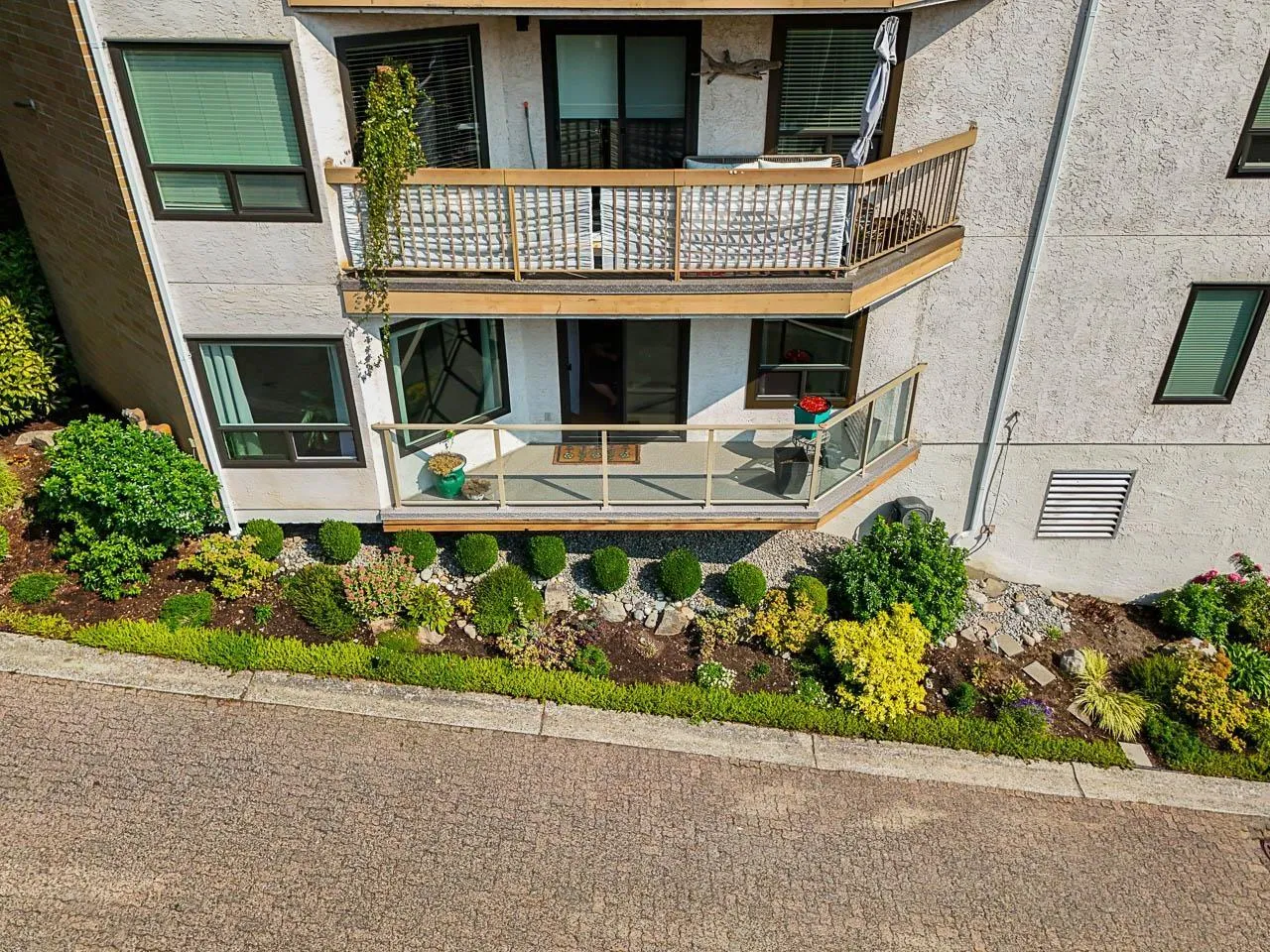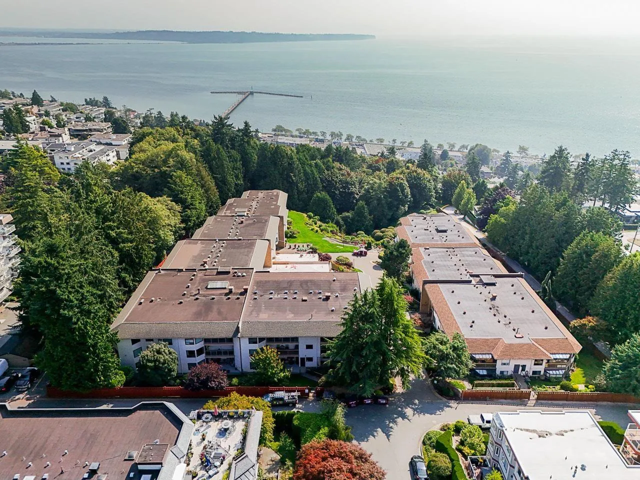 Exceptional value - don't miss out! Welcome to Seapark Manor! This spacious 1244 sq. ft. corner suite in the heart of White Rock offers plenty of natural light and beautiful OCEAN VIEWS. Featuring 2 bedrooms and 2 bathrooms, both with walk-through closets and direct ensuite access. Enjoy hardwood floors, a bright large kitchen, in-suite laundry and 3 ceiling fans. Ground level access provides a large patio with garden views, private storage shed, side balcony with ocean views and easy lane access. Includes 1 secured covered parking stall, storage locker and ample guest parking. Quiet, well maintained community with gym, sauna, games and amenity rooms. Building updates: new windows, patio doors, balconies and new roof. (id:27476)