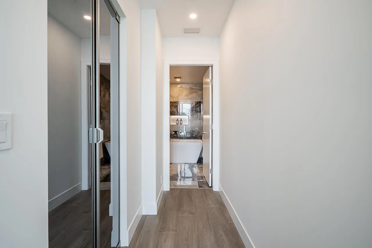 Monaco by Solterra - Elevated living in White Rock. 13 story concrete fully air conditioned, luxury boutique building located just South of Thrift Avenue. Two bedroom plus flex with 2 full bathrooms. Thermador appliances including a 36" fully integrated fridge, wifi enabled convection wall oven, 5 burner gas cooktop, and drawer microwave. Also included is a 24" integrated beverage fridge. Stunning custom kitchen made and designed in Italy and includes a single slab quartz backsplash and hood fan cover. Do you love having a large luxurious ensuite bathroom? This home was made for you! Double vanity, heated tile floors, free standing soaker tub, separate water closet and large stand up shower. (id:27476)