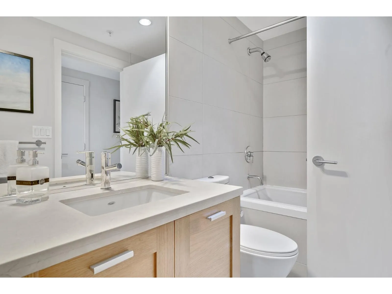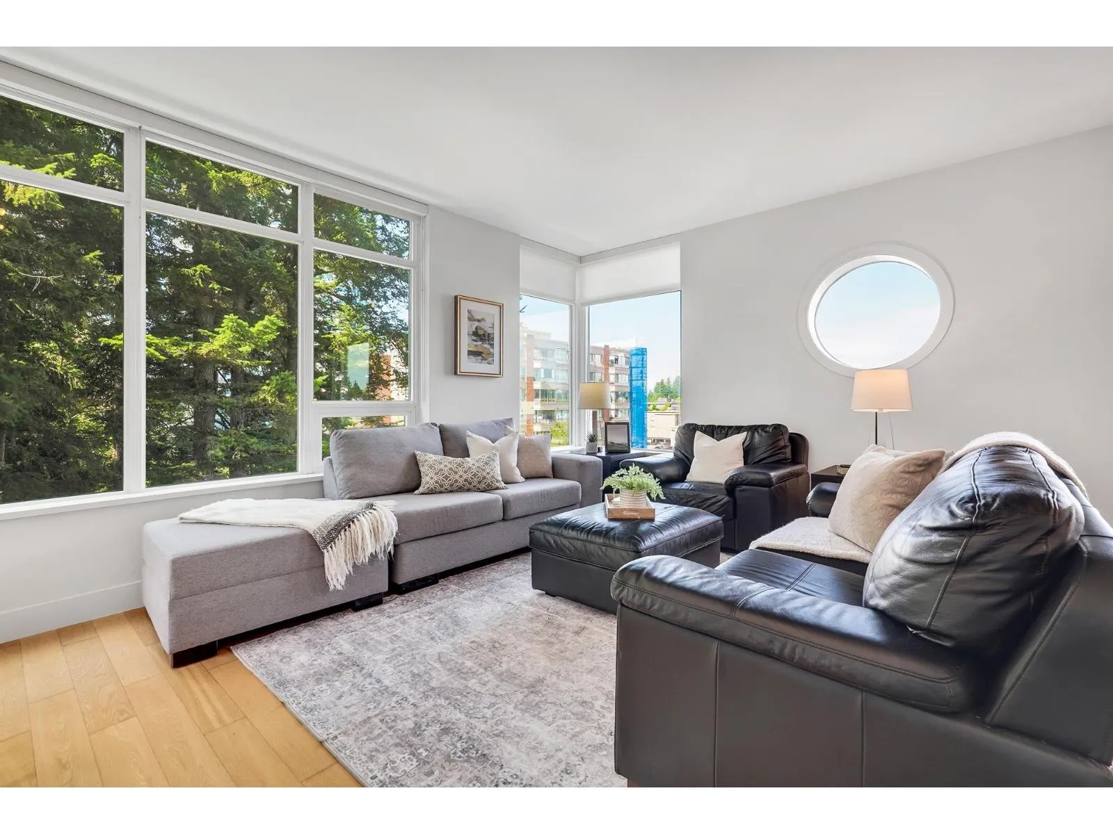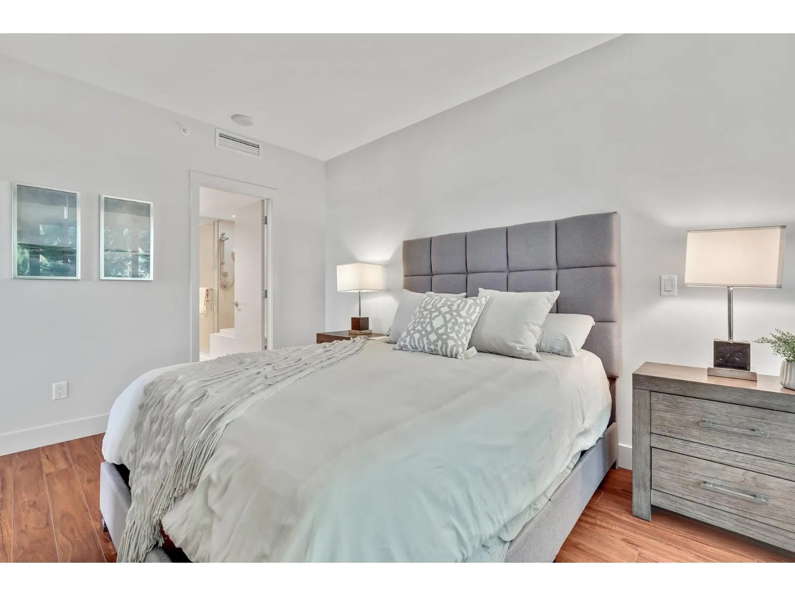 Discover life at Miramar Village, White Rock's signature community where modern design meets coastal charm. This large corner unit offers an expansive open-concept layout with over sized windows that fill the space with natural light. The kitchen blends elegance and function, complete with a premium appliance package. Bedrooms are thoughtfully positioned on opposite ends for privacy and flexibility, whether for guests, family, or a home office. Step outside to a large private patio with serene views of Bryant Park, the perfect backdrop for morning coffee or evening relaxation. Located in a vibrant and walkable community, you're just steps from shops, restaurants, cafés, and transit. This is more than a home - it's a lifestyle in one of White Rock's most sought-after locations. (id:27476)