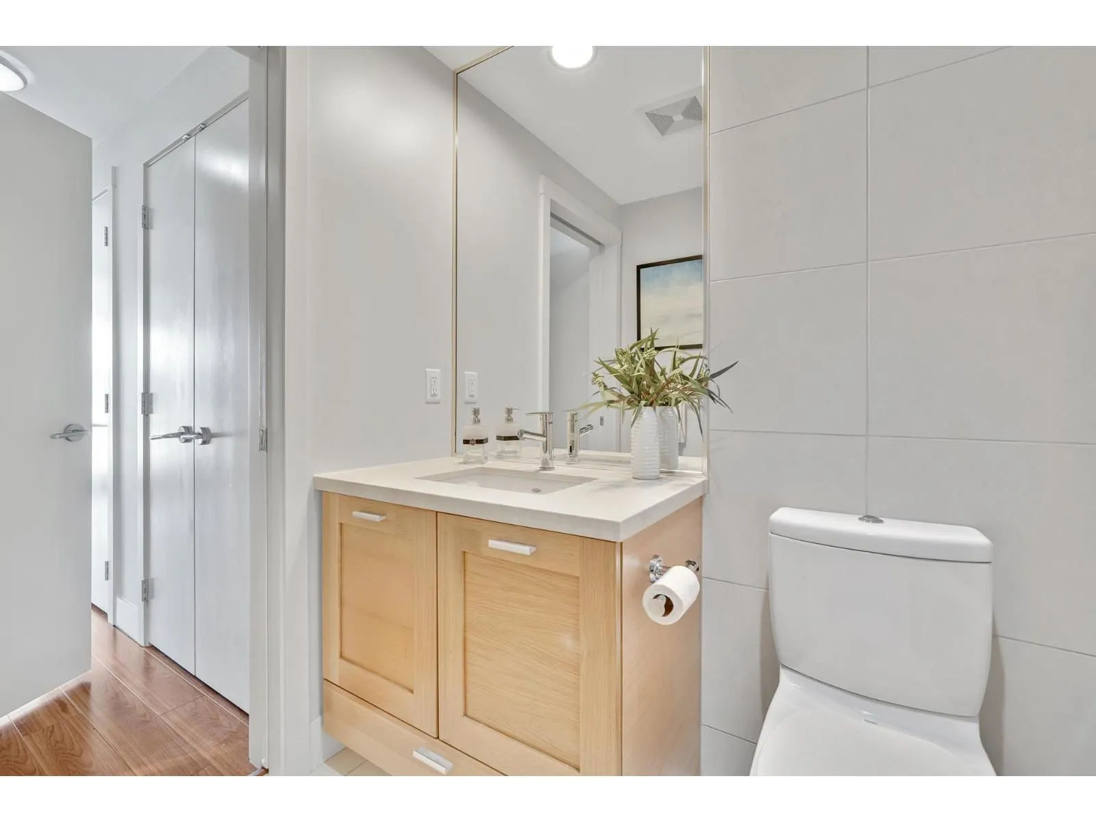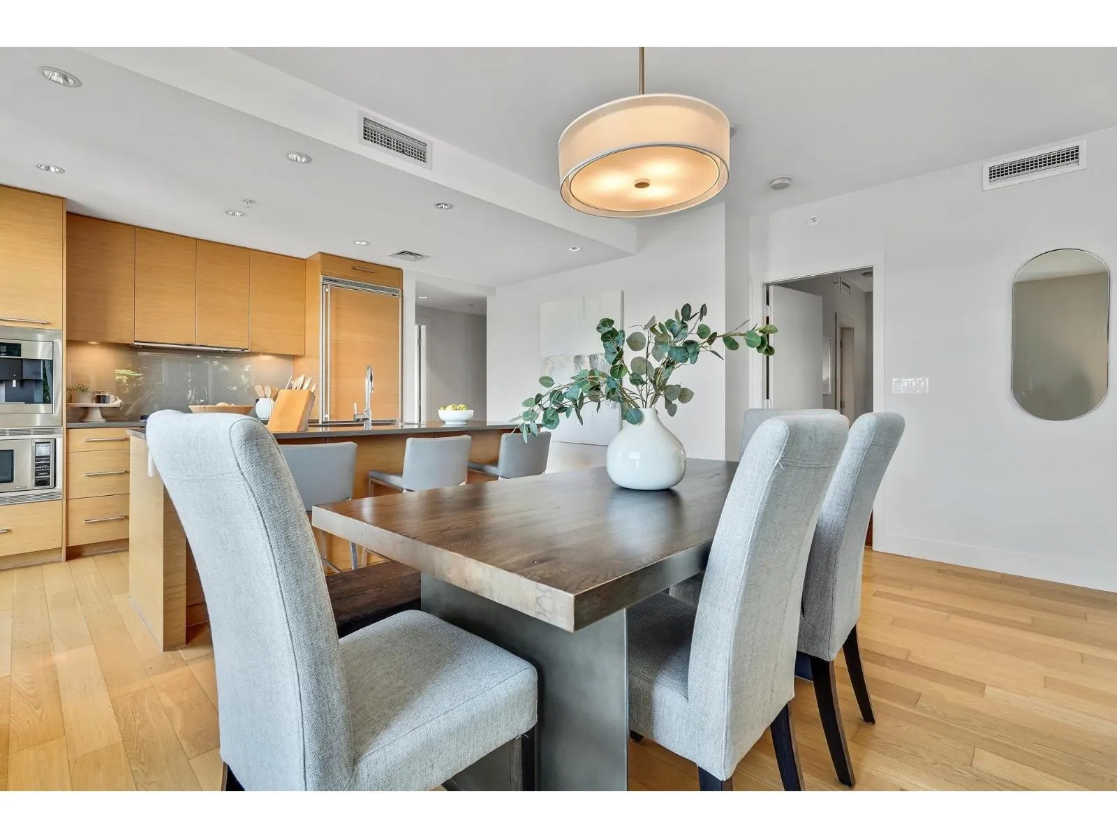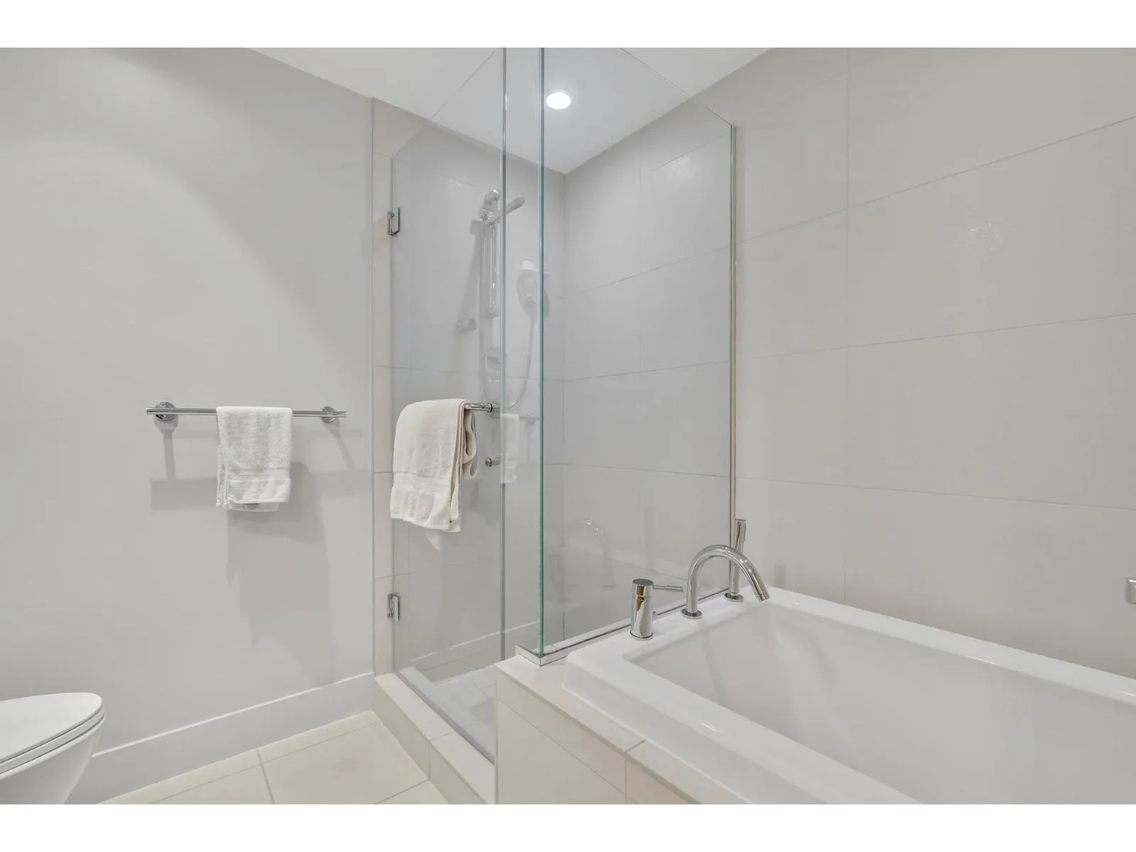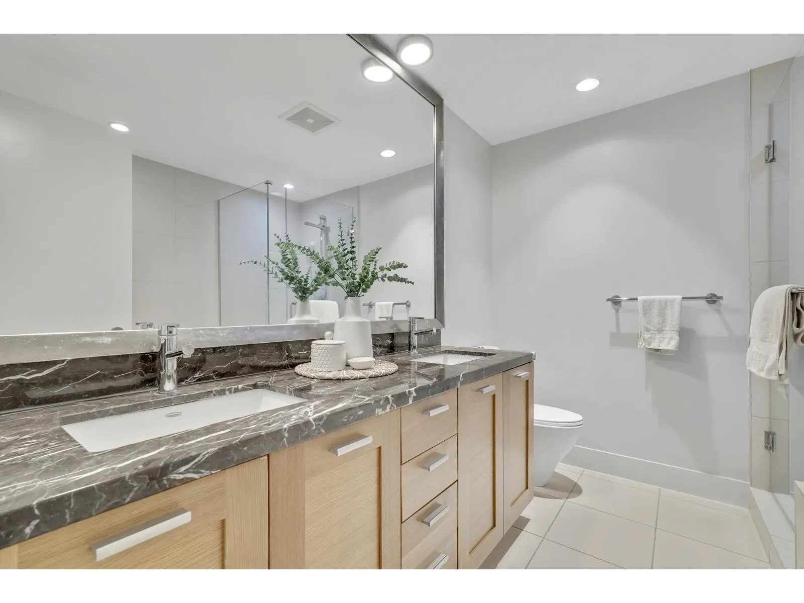 Discover life at Miramar Village, White Rock's signature community where modern design meets coastal charm. This large corner unit offers an expansive open-concept layout with over sized windows that fill the space with natural light. The kitchen blends elegance and function, complete with a premium appliance package. Bedrooms are thoughtfully positioned on opposite ends for privacy and flexibility, whether for guests, family, or a home office. Step outside to a large private patio with serene views of Bryant Park, the perfect backdrop for morning coffee or evening relaxation. Located in a vibrant and walkable community, you're just steps from shops, restaurants, cafés, and transit. This is more than a home - it's a lifestyle in one of White Rock's most sought-after locations. (id:27476)