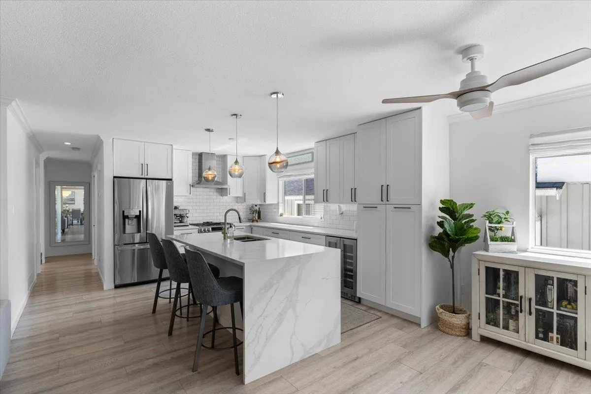 Come and experience White Rock East Beach living at its finest! This completely renovated and well kept 4 bedroom, 3 bathroom home boasts impressive views of Semiahmoo bay and Mount Baker, from its main floor and its spectacular rooftop deck! Walk into a modern open floorplan on the main, the immaculately remodeled kitchen, perfect for entertaining and family gatherings, has brand new appliances, a large island, a wine room, and customizable LED lighting. Other great features include a built in storage room, a backyard made for bbqs, a bright interior and open exterior areas, a flex/gym area, and a 1 bedroom ground floor suite below. And did we mention, you are a 5 minute walk from White Rock Beach! Do not miss out on this hidden gem! Newest additions include Roof (2025), brand new Vinyl membrane and decking (2025), and hot water tank(2025). (id:27476)