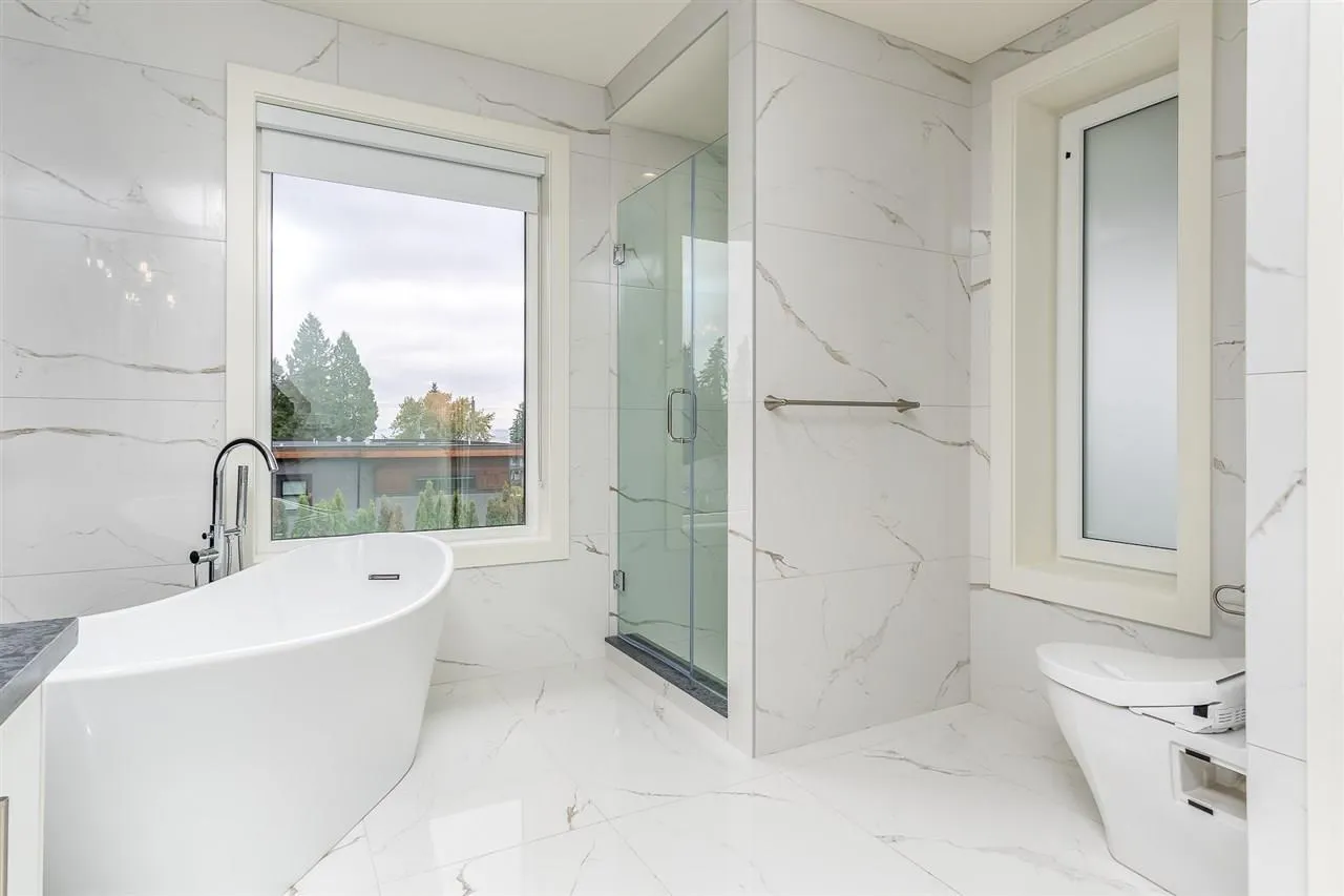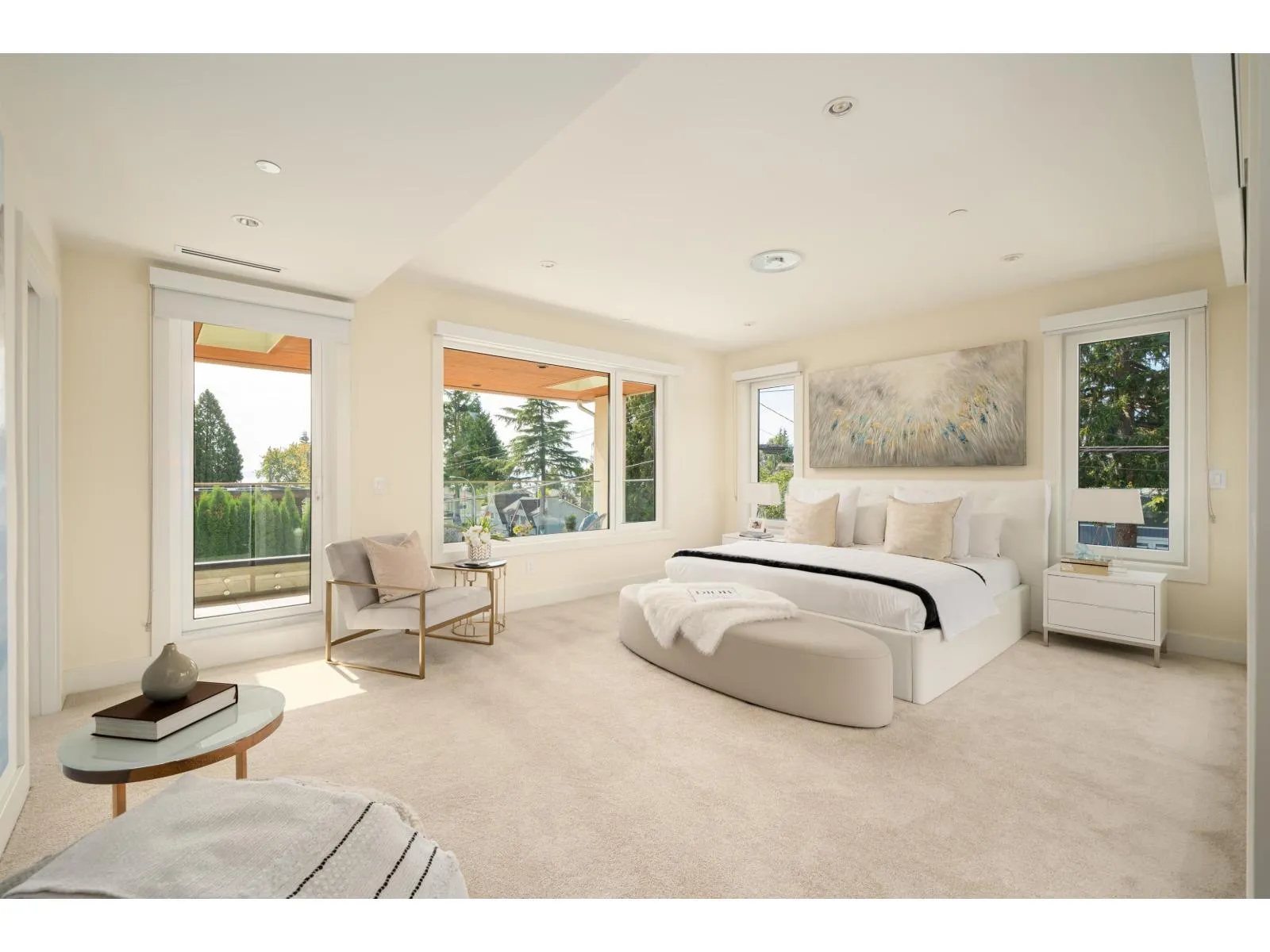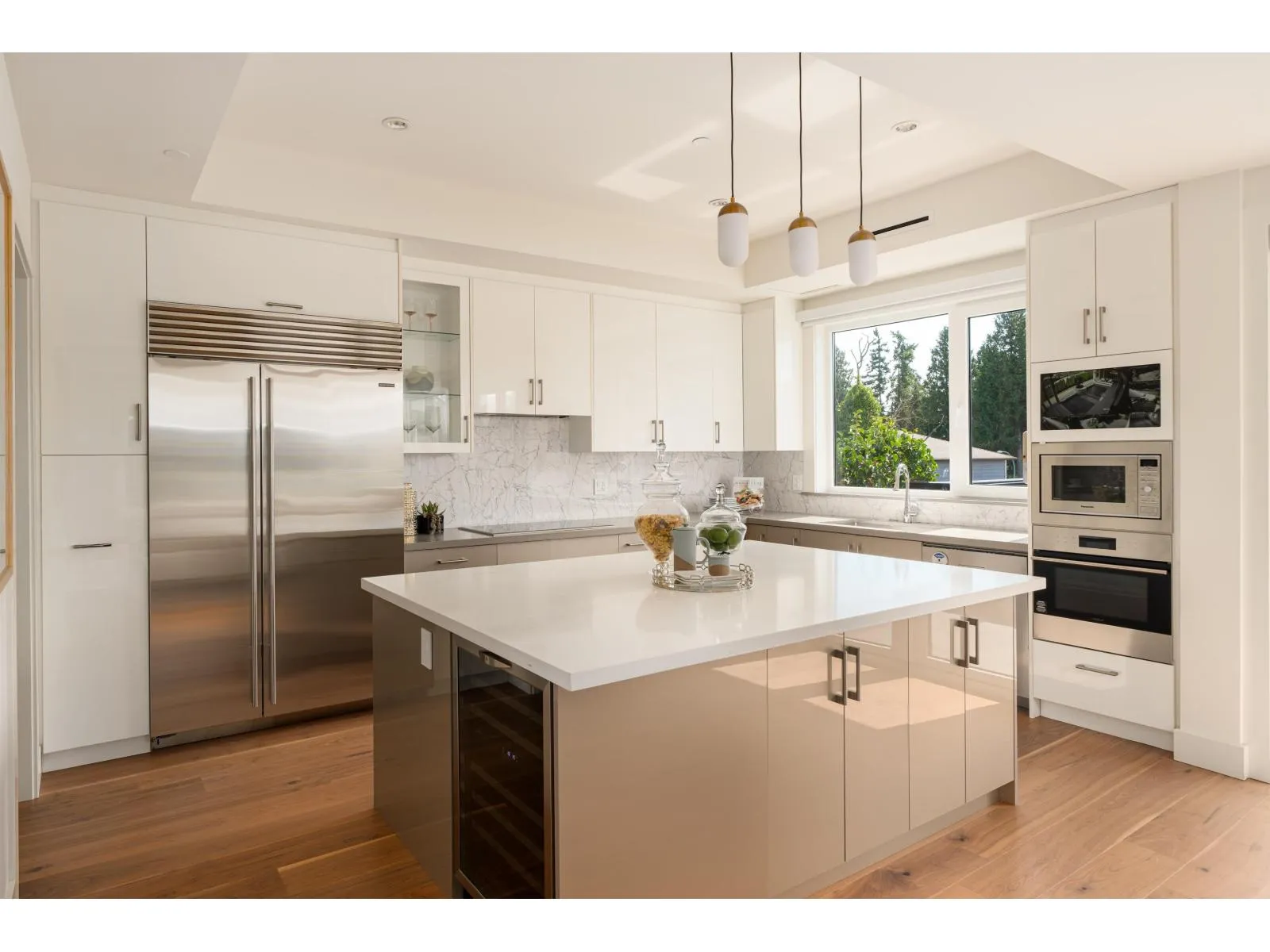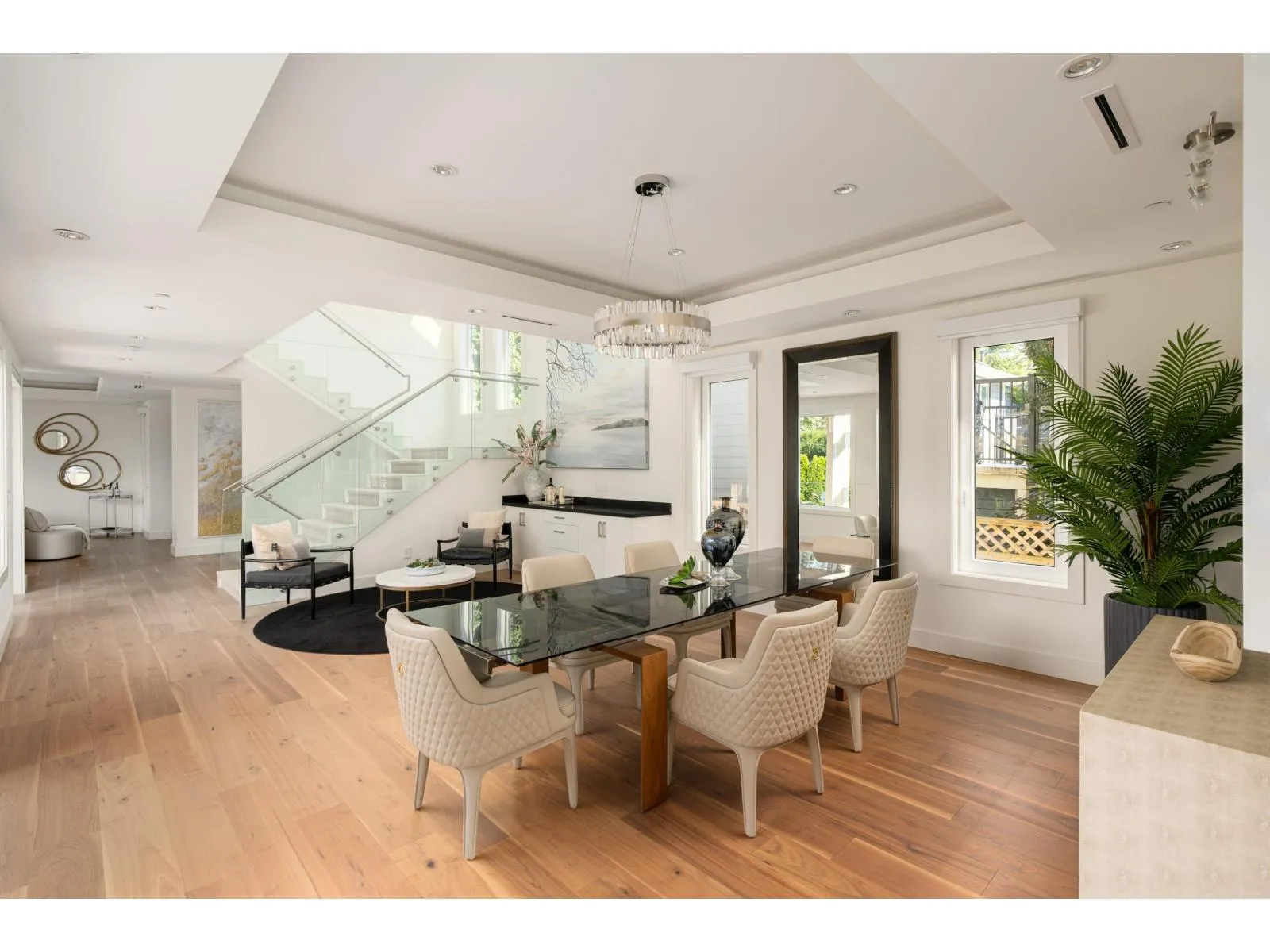 Luxurious ocean-view residence in the heart of White Rock, offering 5,600 sqft of living on a 7,000 sqft corner lot. This custom home features 5 bedrooms & 8 bathrooms with an open layout filled with natural light. Main floor boasts walnut hardwood, gourmet + wok kitchen with Sub-Zero & Wolf appliances. Upstairs has 4 ensuite bedrooms, including a master retreat with spa bath, walk-in closet, and private ocean-view deck. Basement offers media room with bar & wine cellar, recreation room, sauna, and guest suite. Walking distance to schools, beaches, parks & shopping. School Catchment: Ray Shepherd Elementary & Elgin Park Secondary. Open house: Nov 9, Sun, 2-4PM. (id:27476)