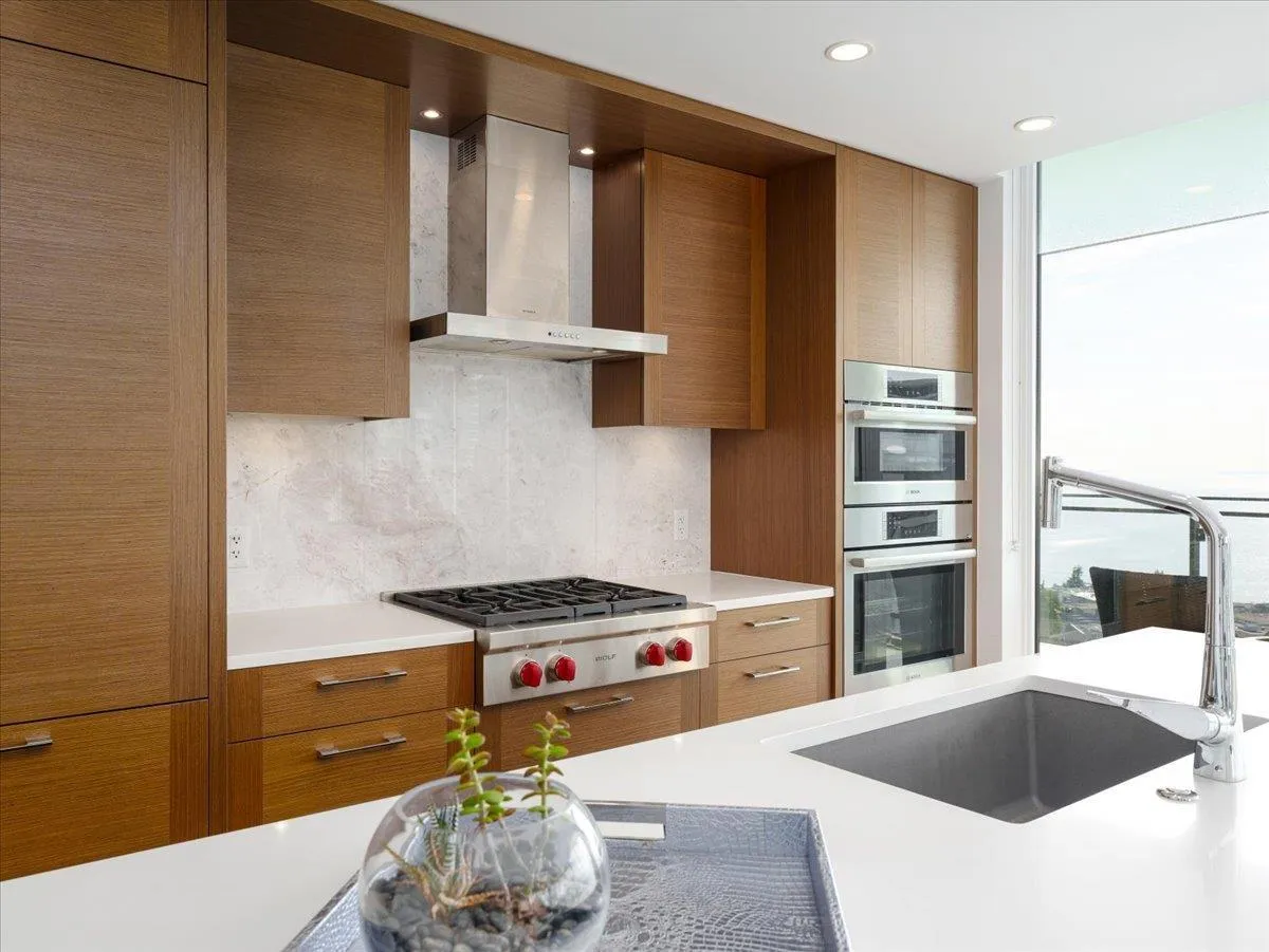 Elegant living with spectacular views. Southwest corner penthouse at Semiah by Marcon features over 1,700 sq. ft. of refined open layout living & more than 1,600 sq. ft. of private outdoor space. The highlight is a stunning rooftop terrace designed for entertaining, complete with built-in kitchen, lounge space, & garden-style setting overlooking White Rock Bay & the Gulf Islands. Inside, spacious primary room with ocean views & spa like ensuite. Chef's kitchen with Wolf gas cooktop, Bosch appliances, Marvel wine fridge, & custom cabinetry. Wide-plank hardwood flooring, temperature controlled wine room & private double garage with EV charging ensure comfort & convenience. 3 Parking! Steps from restaurants, cafés, & 5 min to beach, this is sophistication at its finest. Call for full package. (id:27476)