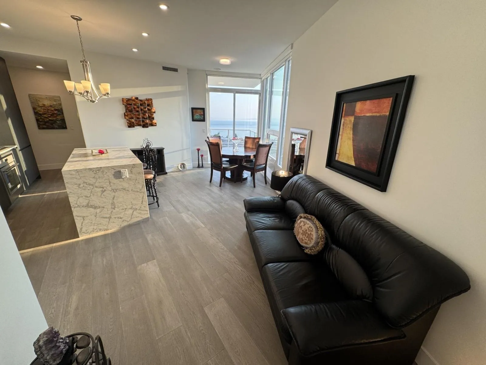 Brand New. Unobstructed ocean and city view. 2-bedroom, 2-bath condo available in the heart of White Rock at 1342 Johnston Rd (Unit 807). This beautiful unit offers modern living with an open layout, lots of natural light, and a private balcony. Enjoy stunning city and ocean views from every room in your home.Walking distance to shops, restaurants, cafes, and transit. Building amenities include a gym, lounge, and secure entry. One-year lease minimum. References, credit check, and tenant insurance required. Property Details: . Floor area: 800 sqft . Bedrooms: 2 . Bathrooms: 2 . Parking: 1 underground stall included . Rent: $3,200 / month . Neighbourhood: White Rock - Johnston Rd . Availability: Oct 1, 2025 . Lease: Minimum 1 year . No smoking, no illegal drugs (id:27476)