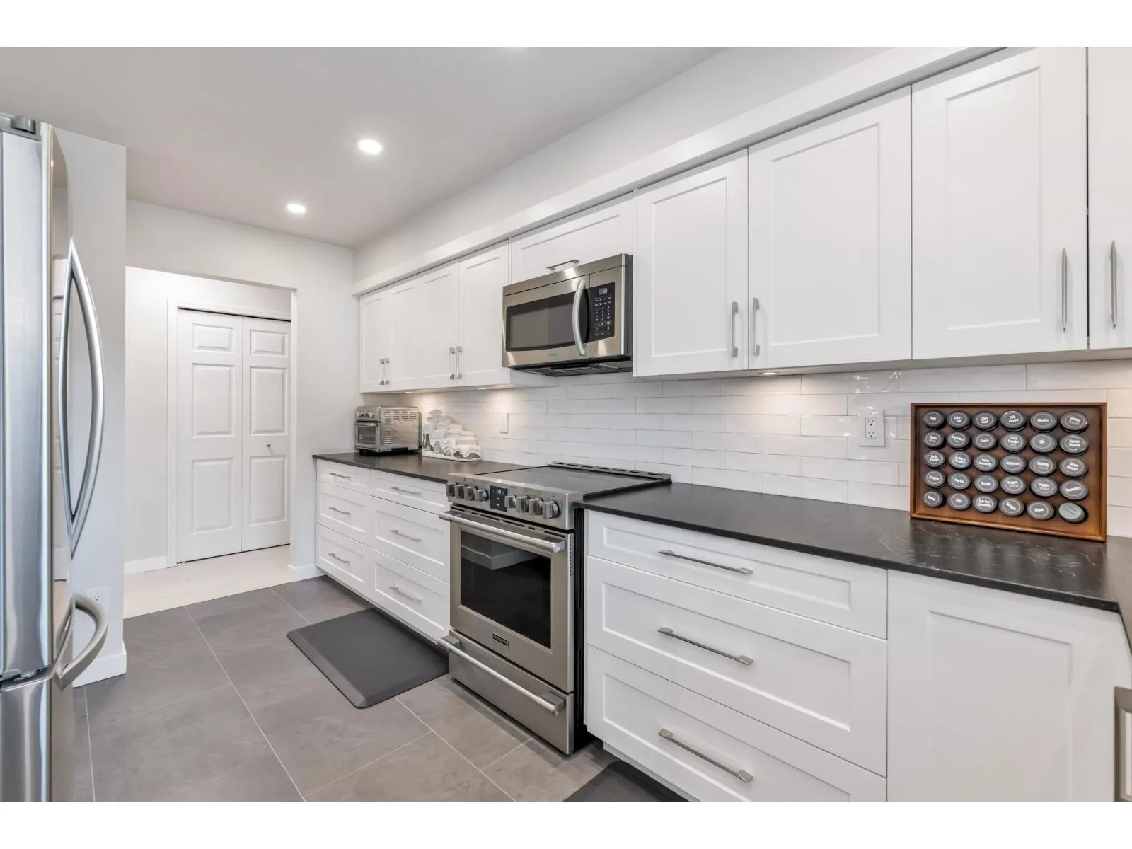 FULLY RENOVATED WITH STUNNING OCEAN VIEWS! Spacious 1,368 sq. ft. 2 bed, 2 bath condo at SeaPark with views from the living room, kitchen & primary bedroom. Updates include new laminate & tile, cabinets, counters, backsplash, modern fixtures, appliances, bathrooms, washer/dryer, designer paint colours. Well maintained building with new roof, windows, balcony membrane and glass railings & more. Secure parking, storage locker, gym, sauna & games room. Fabulous sunsets over the manicured landscaping. Quiet cul-de-sac, with no public streets or pedestrians. Walk to White Rock's beach, shops & restaurants. Experience private resort-style living in the heart of White Rock with amazing ocean views at this very low low price point. (id:27476)