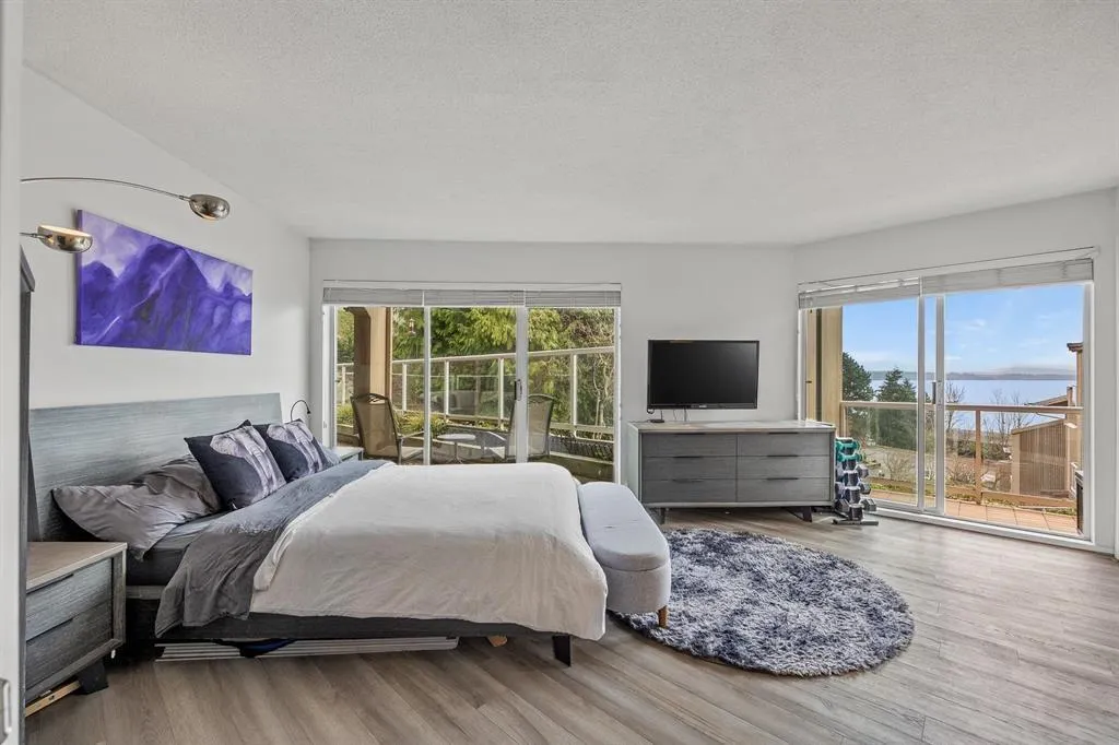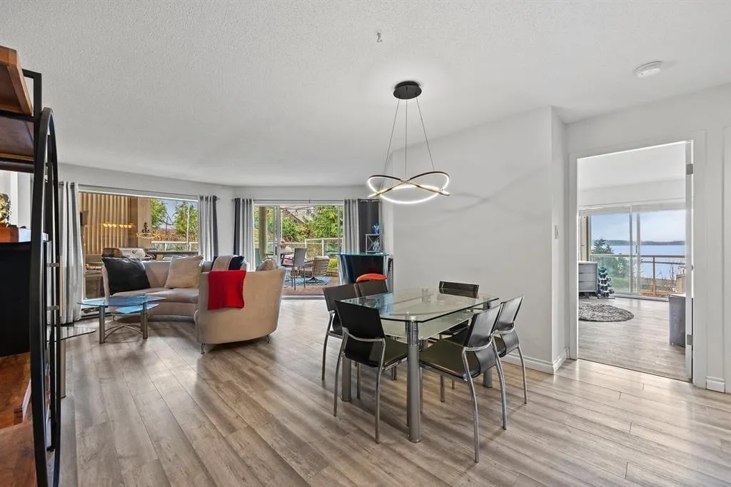 Welcome to your coastal retreat in the heart of White Rock! This fully renovated corner unit with 2-bed, 2 full bath offers the perfect blend of luxury and peace. Enjoy the tranquility of a 500 square foot ocean view garden level deck - perfect for entertaining and for gardeners. This private unit by Bosa features southern and western ocean views, floor-to-ceiling windows that bathe the home in light, while a cozy gas fireplace adds warmth and charm. Renovated kitchen, complete with quartz countertops and a deep granite sink with touch faucet, along with new flooring throughout. Enjoy amenities like a sparkling outdoor pool and soothing hot tub with ocean view. Just a 2-minute stroll to restaurants and the beach. Well-run strata. (id:27476)