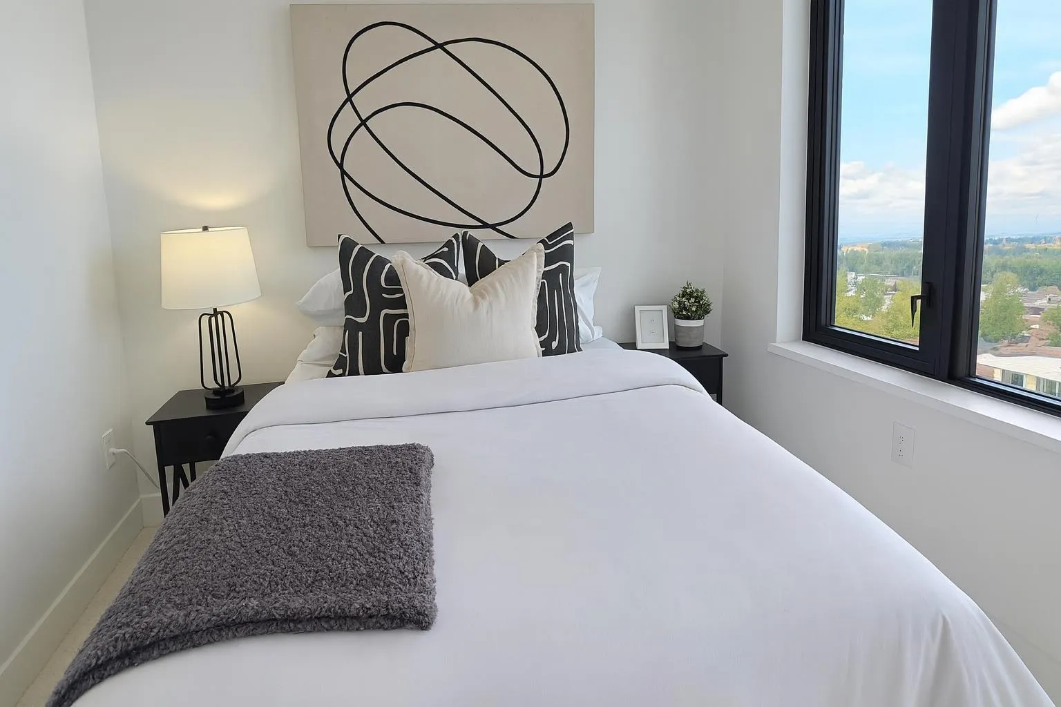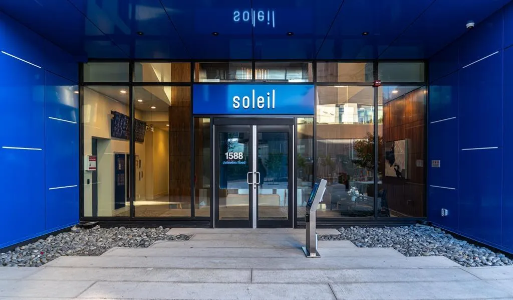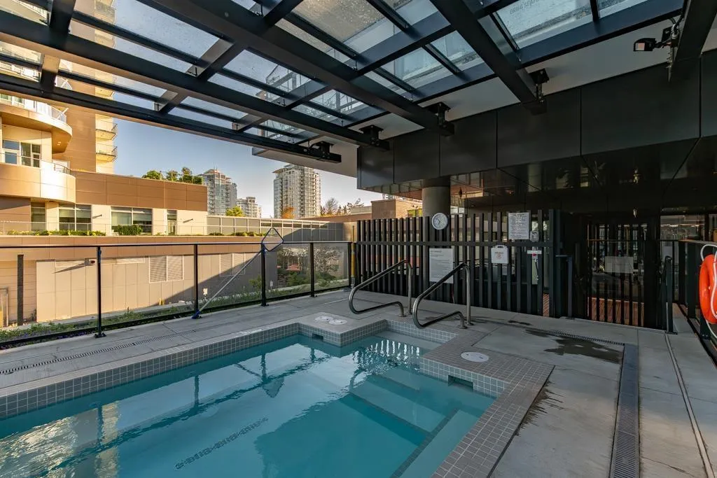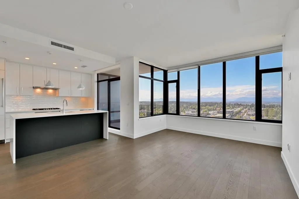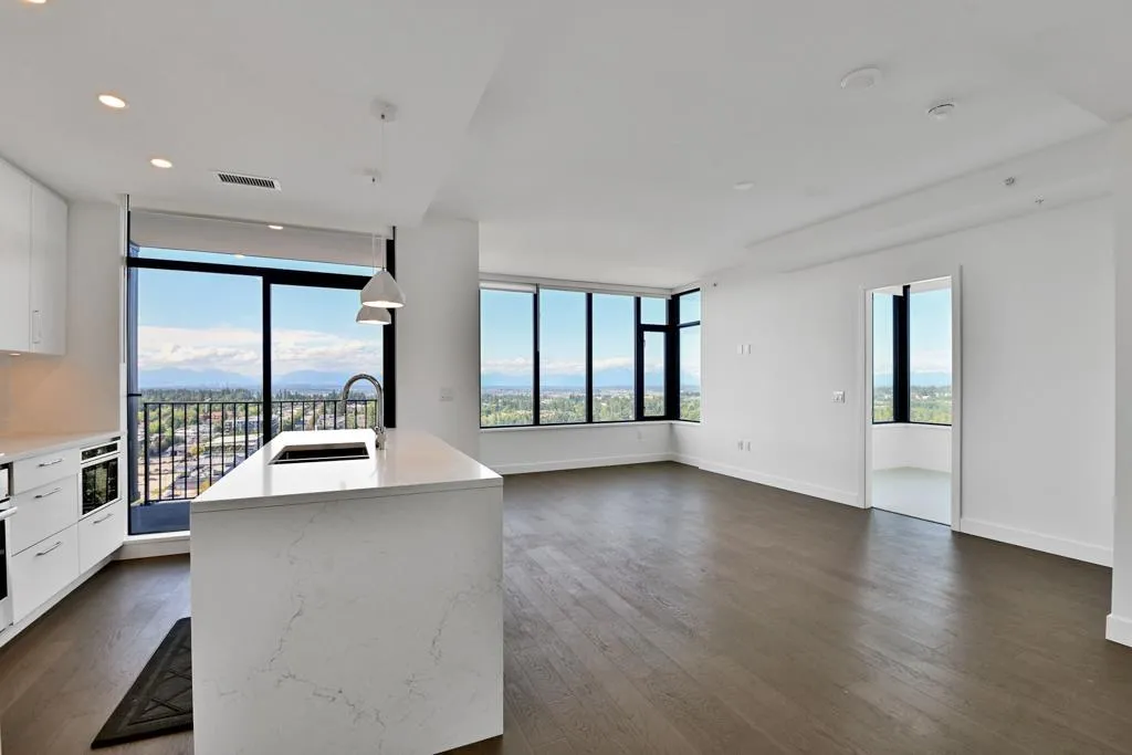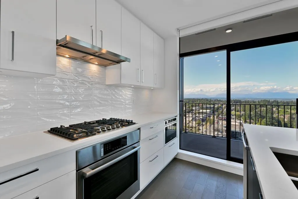 Welcome to Soleil - White Rock's Tallest Landmark by RDG! This 2 Bed + Den, 1,023 SQFT home showcases premium finishes including Bosch appliances, Grohe fixtures, blackout shades, and A/C. The primary suite offers a walk-in closet and spa-inspired ensuite with a floating vanity and backlit mirror. Enjoy a sleek chef's kitchen with a waterfall island and integrated fridge/freezer, plus a balcony with gas BBQ hookup and Mt. Baker views. Steps from Semiahmoo Shopping Centre and minutes to the White Rock Pier & Beach, Soleil also features 8,000 SQFT of amenities--fitness centre, yoga studio, and whirlpool/sauna. Come see & live with Luxury and Style. (id:27476)
