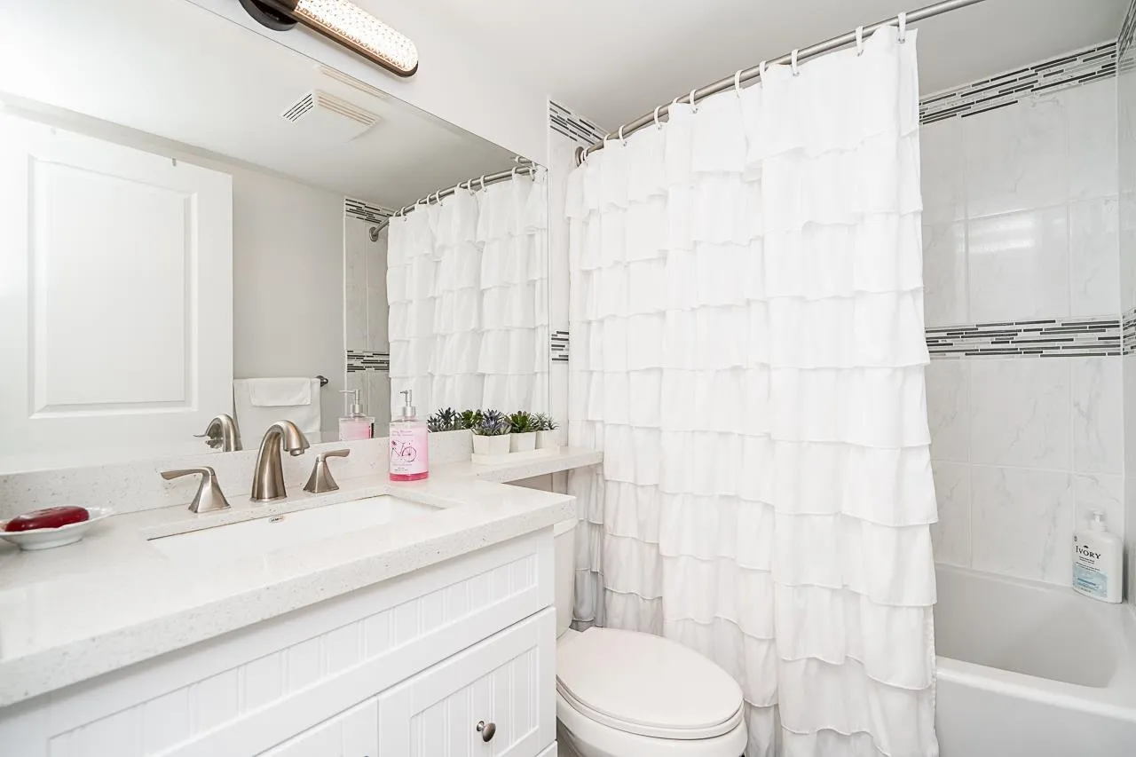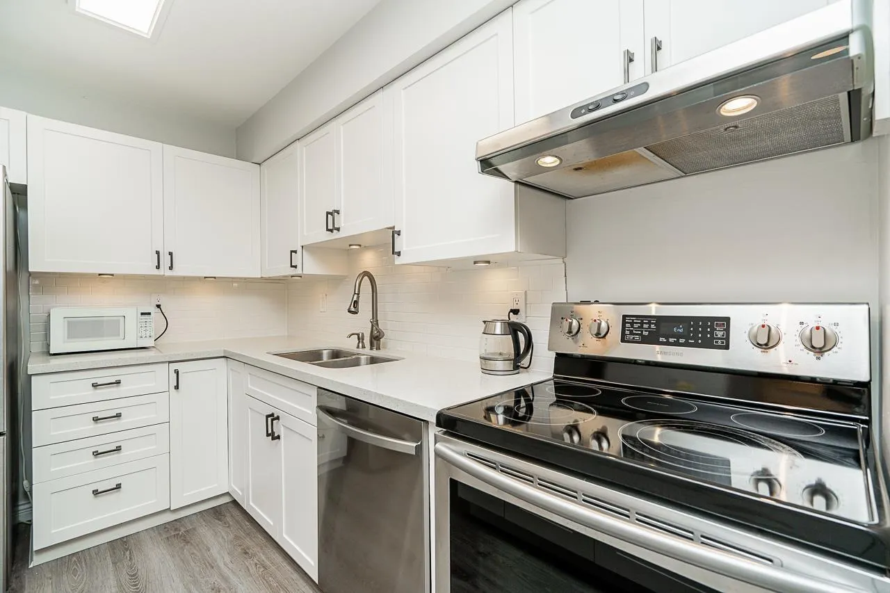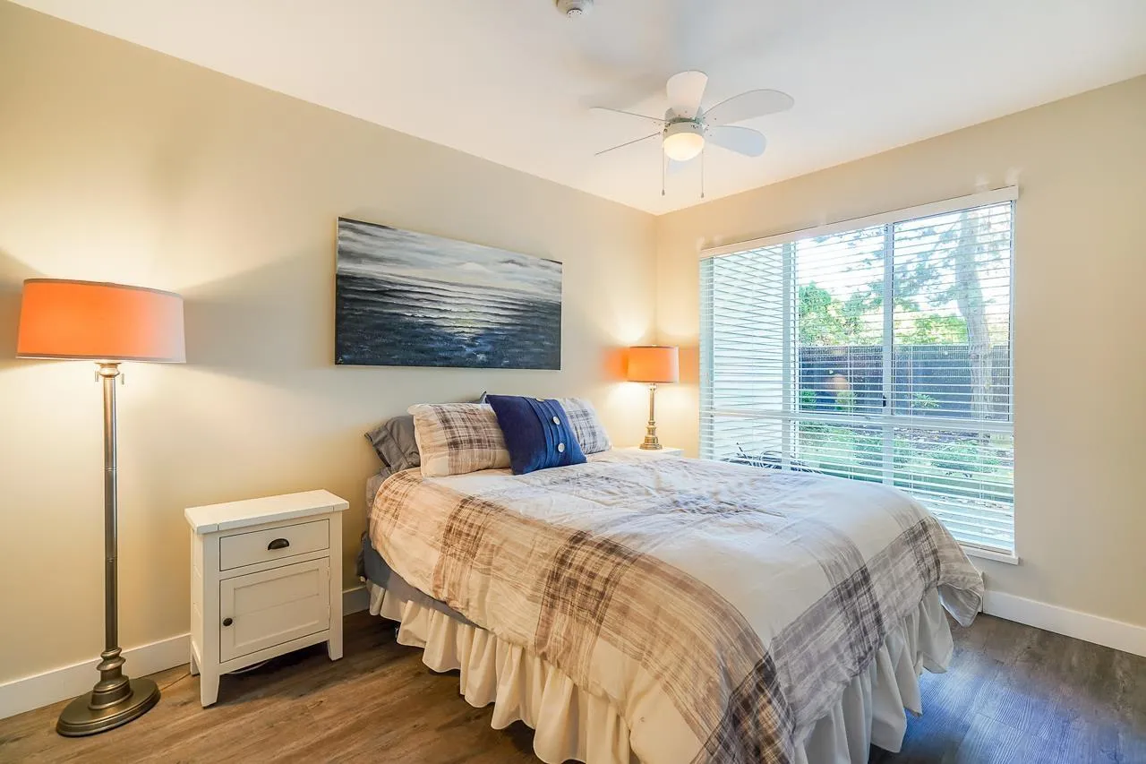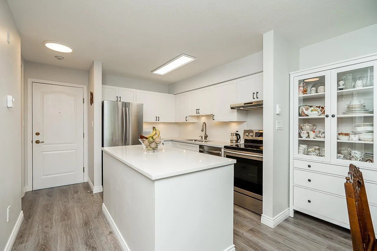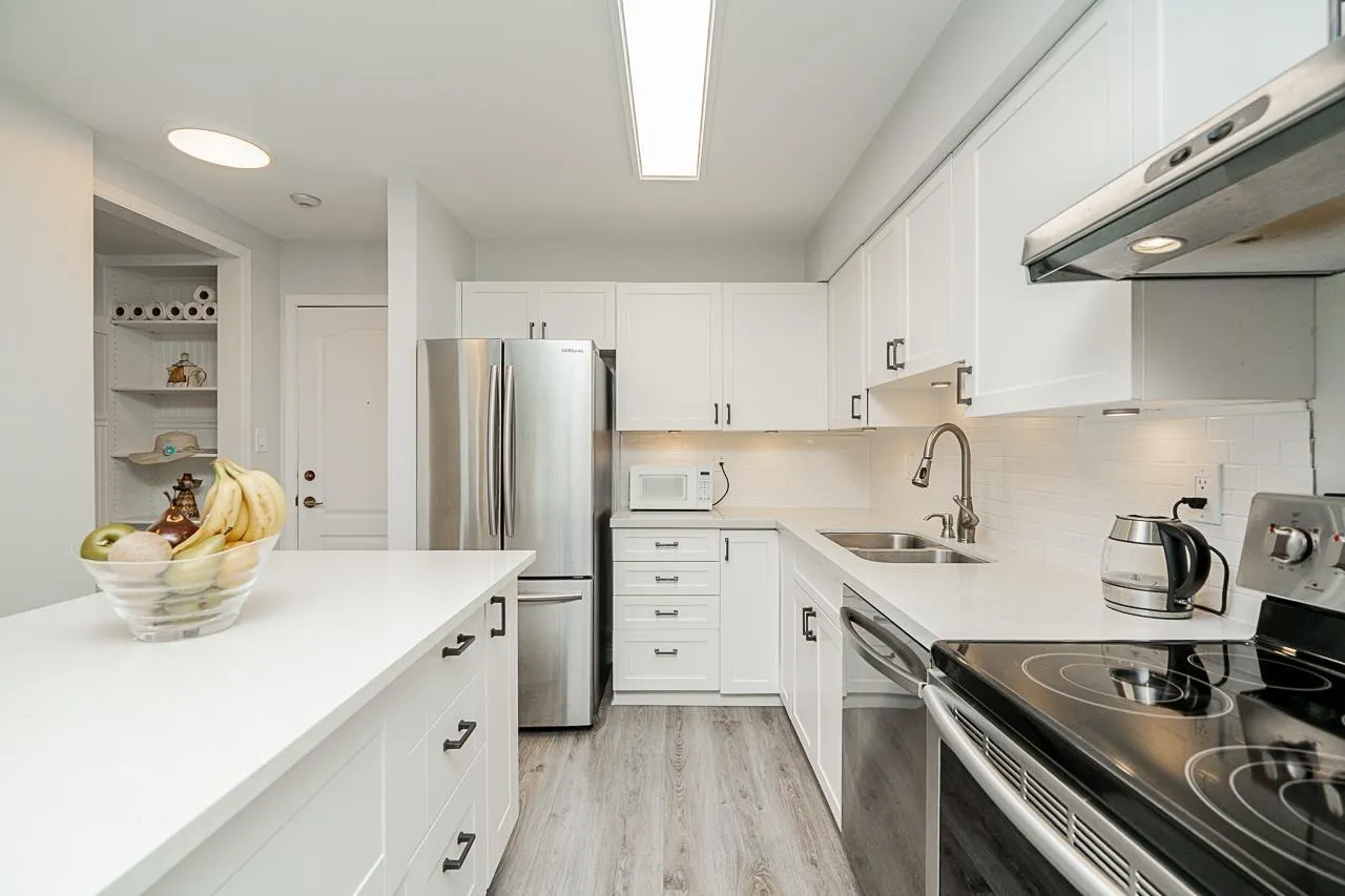 Renovated 2 bed unit in the coveted ARCADIAN! (PET FRIENDLY! 2 cats or dogs, no size limit!) Enjoy open-concept living with a modern vibe, fresh paint, new window screens and Hunter Douglas blinds. The kitchen boasts a sleek new island and stainless steel appliances. A redesigned laundry area offers custom storage and a handy hanging bar. Covered/Private Solarium. All lighting upgraded to energy-saving LED fixtures. This proactive strata includes a guest suite, library, workshop, and a renovated lounge/common room. One storage locker and one secure parking spot (extra parking for rent based on availability) plus lots of street parking. Prime location close to shopping, beach, hospital, transit and senior centre. Mobility benefit: walk to the unit with no need for stairs. Motivated seller (id:27476)