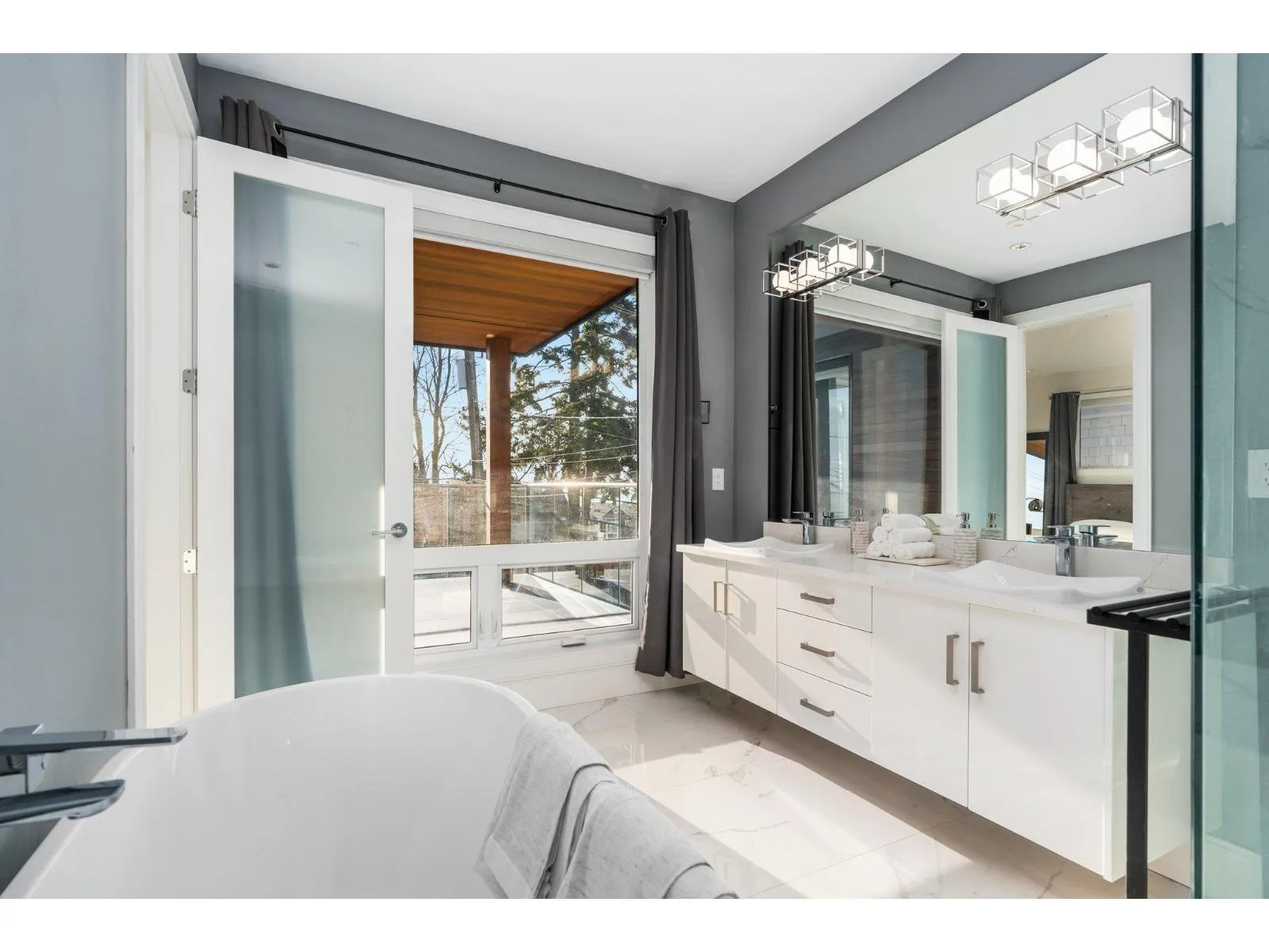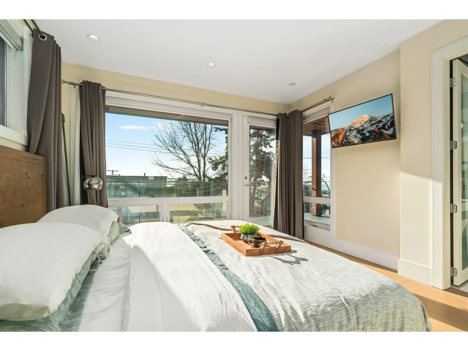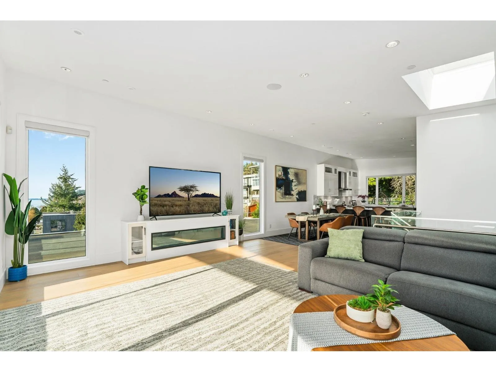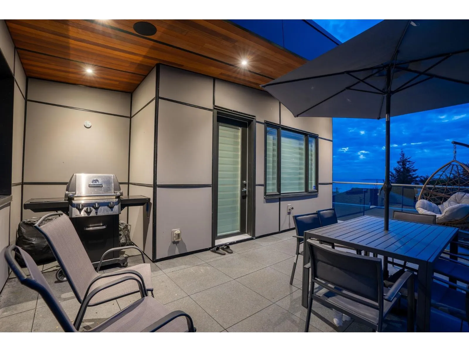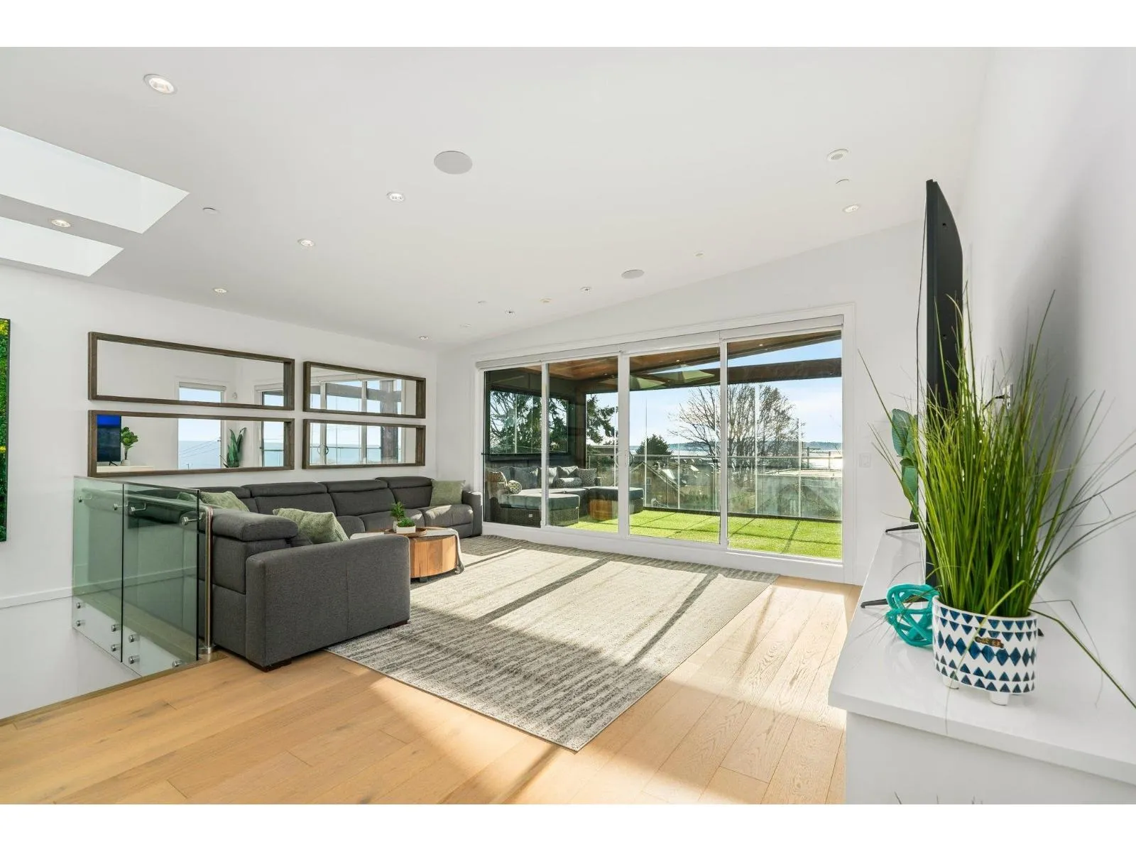 PANORAMIC OCEAN VIEWS in this beautiful WESTCOAST CONTEMPORARY home! This 4 bed 5 bath home is a stunning blend of modern design and cutting edge innovation. The chef inspired kitchen, features sleek cabinetry and a spacious island, seamlessly flows into the open concept living room, perfect for effortless entertaining. Step outside to the enclosed expansive deck with rooftop skylights, designed to maximize breathtaking OCEAN VIEWS and enhance your outdoor living experience. Premium features include: radiant heat, A/C, theatre room, Control 4 smart home, sauna and much more. Located within the highly sought after Semiahmoo Secondary (IB) catchment. Centrally located, steps away from White Rock Beach, restaurants, shopping and more. This one of a kind home won't last long! (id:27476)