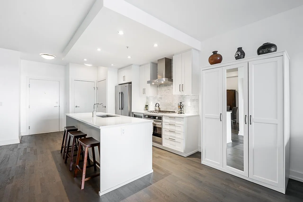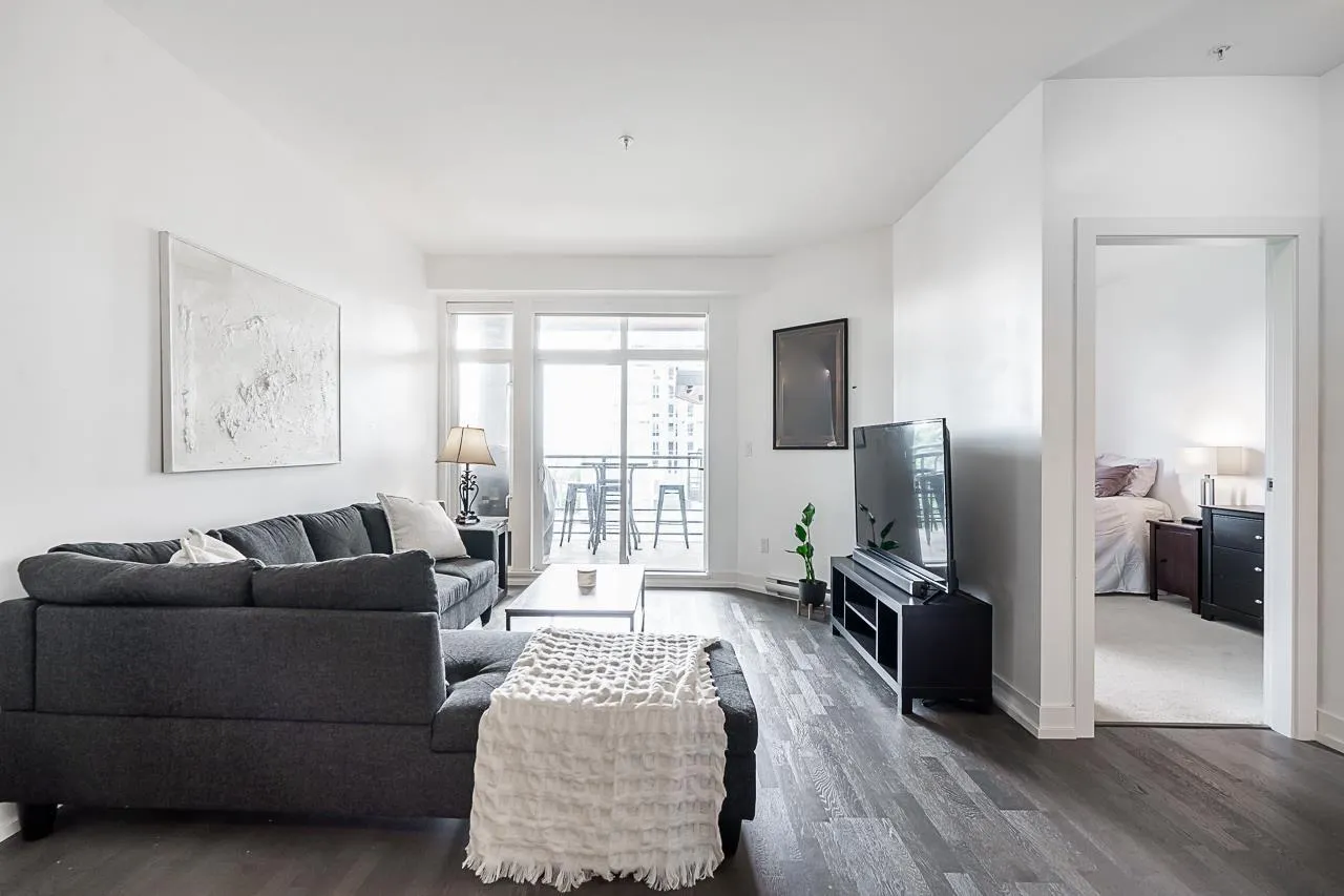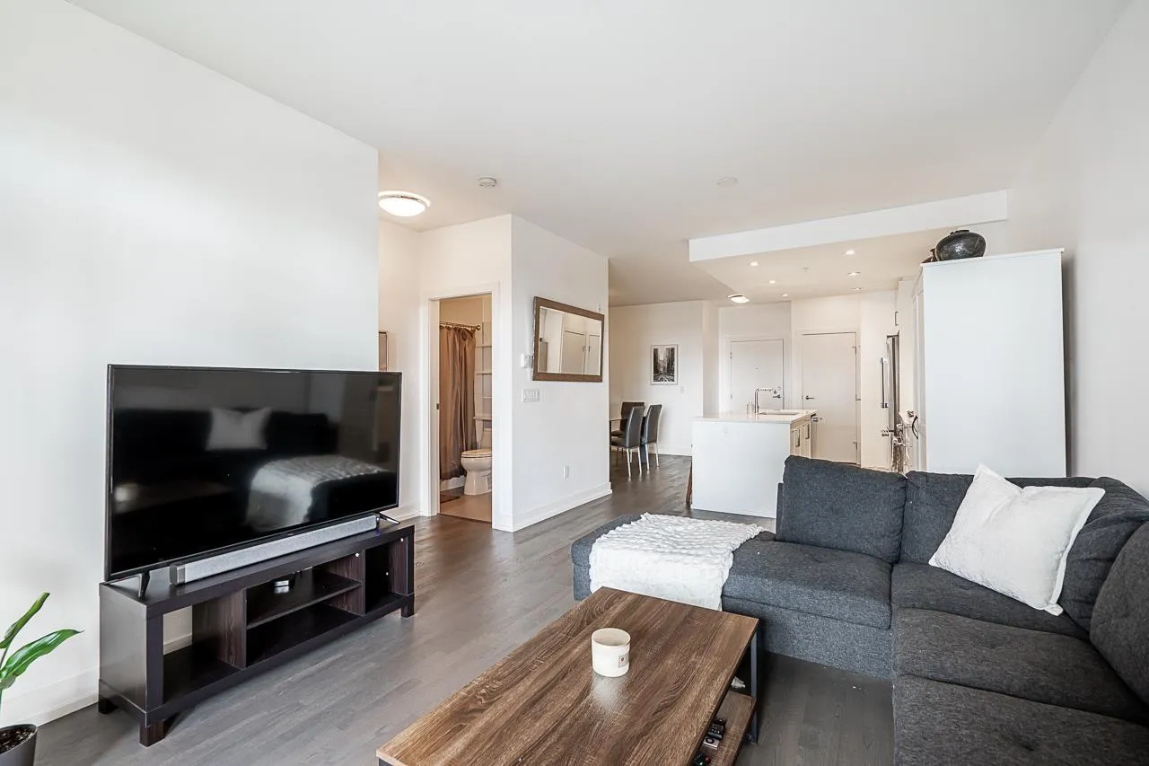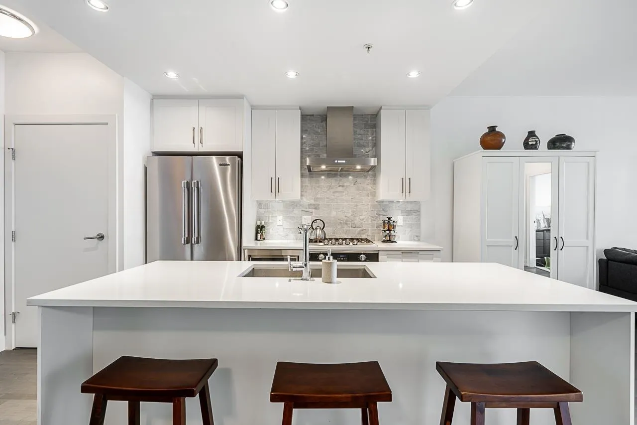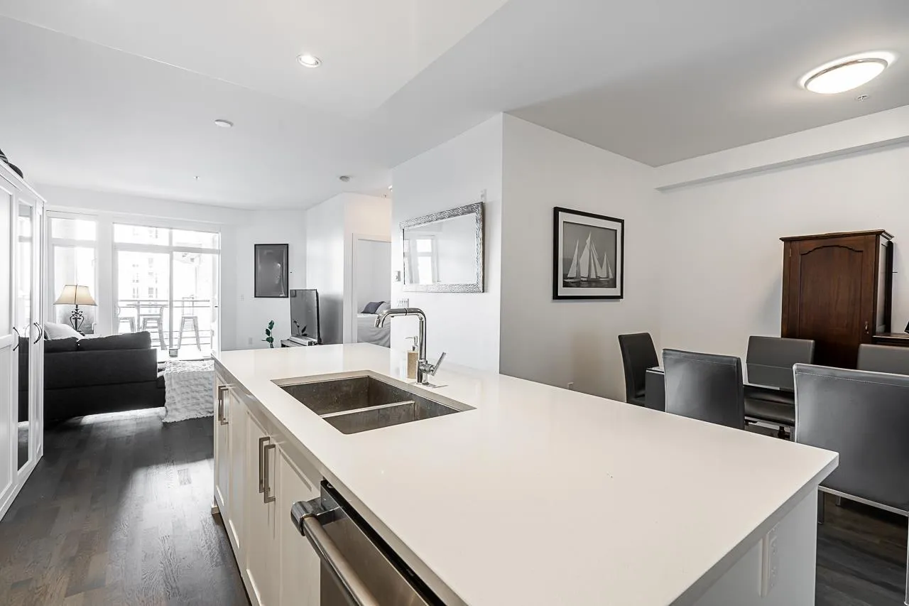 Welcome to Saltaire built by Ledingham McAllister, who has over 100yrs of experience! This is a boutique collection of just 36 homes located in the heart of downtown White Rock. We have an excellent opportunity for a home or investment. This bright and spacious 1 bed + den, with 803 sqft combines West Coast architecture with a modern interior. Featuring 9' ceilings, engineered hardwood floors, and a gourmet kitchen with stainless steel Viking appliances, gas range, quartz countertops and marble tile. Relax or entertain here, the functional layout includes a den ideal for an office or guest space.. You're only steps to shopping, dining, entertainment, a 15-min walk to the beach and famous boardwalk. Live at this incredible Seaside community. 1 Pet allowed 1 dog or 1 cat! (id:27476)