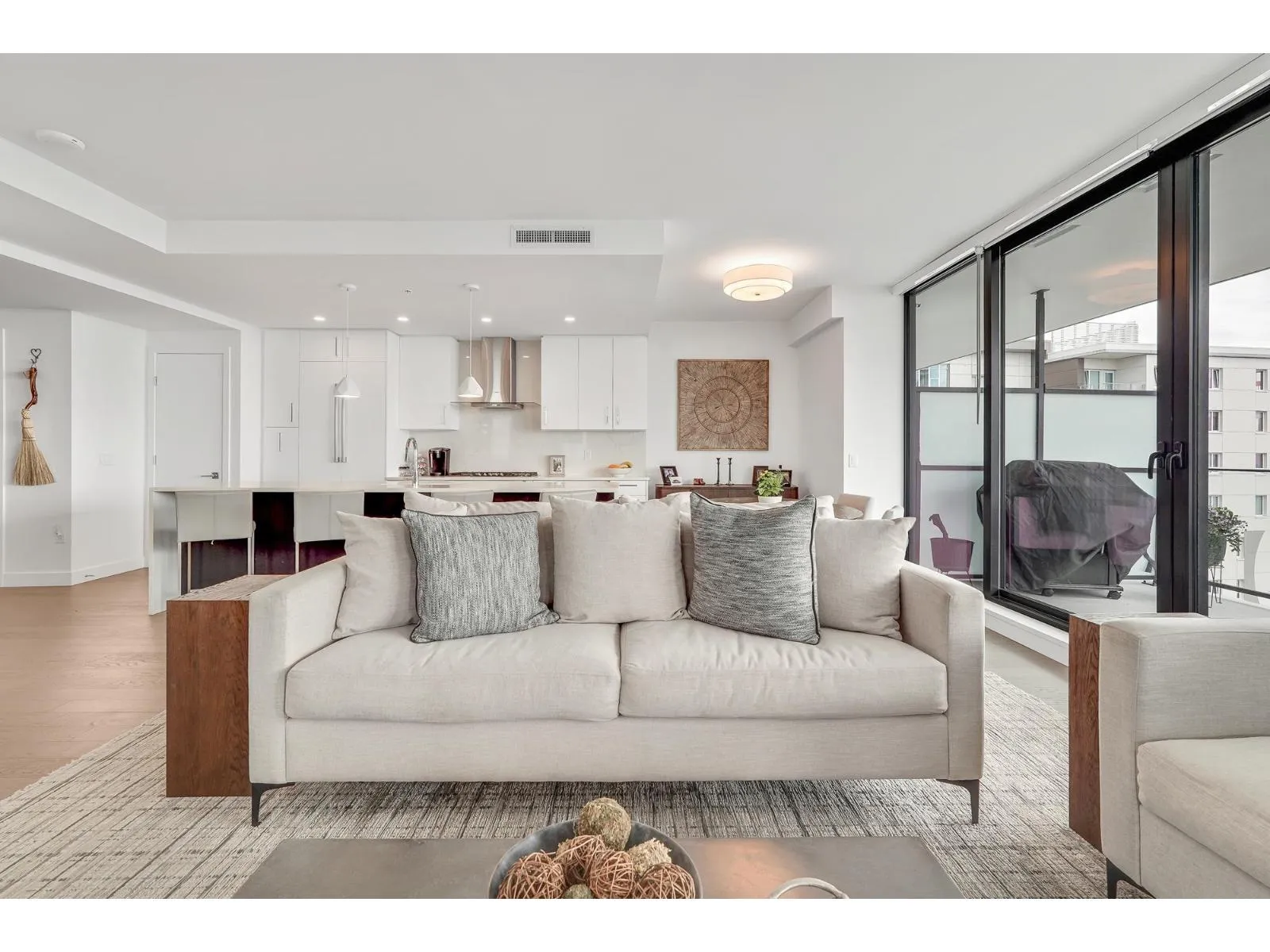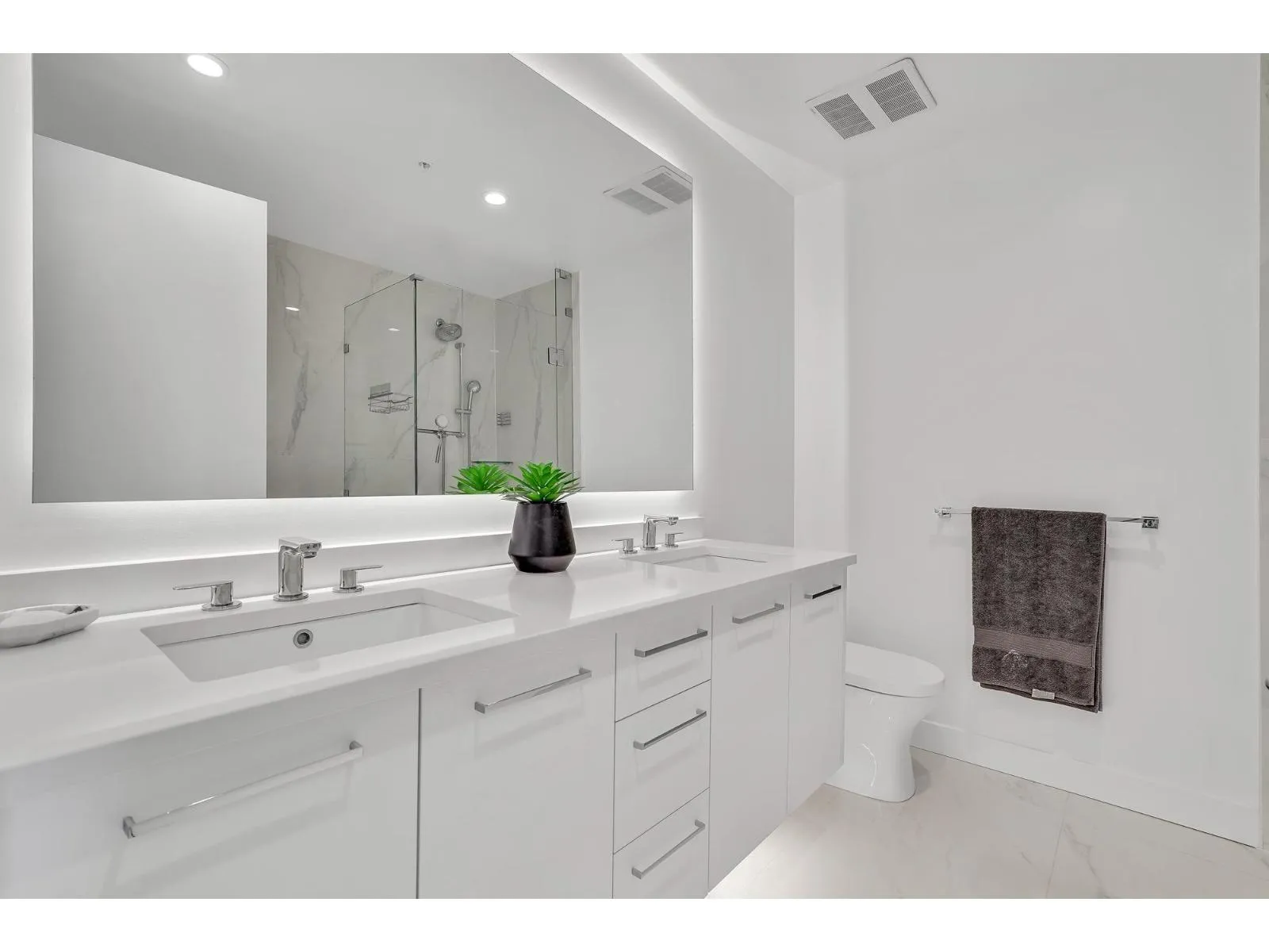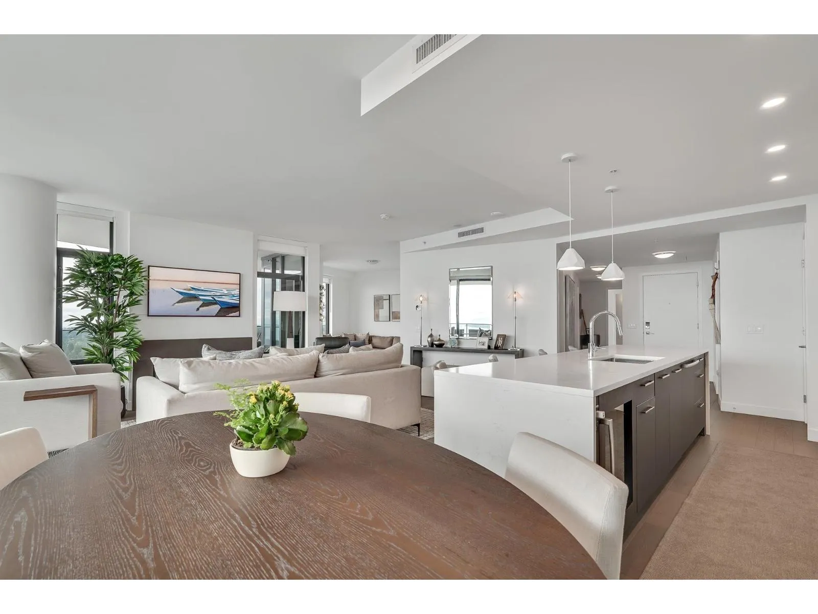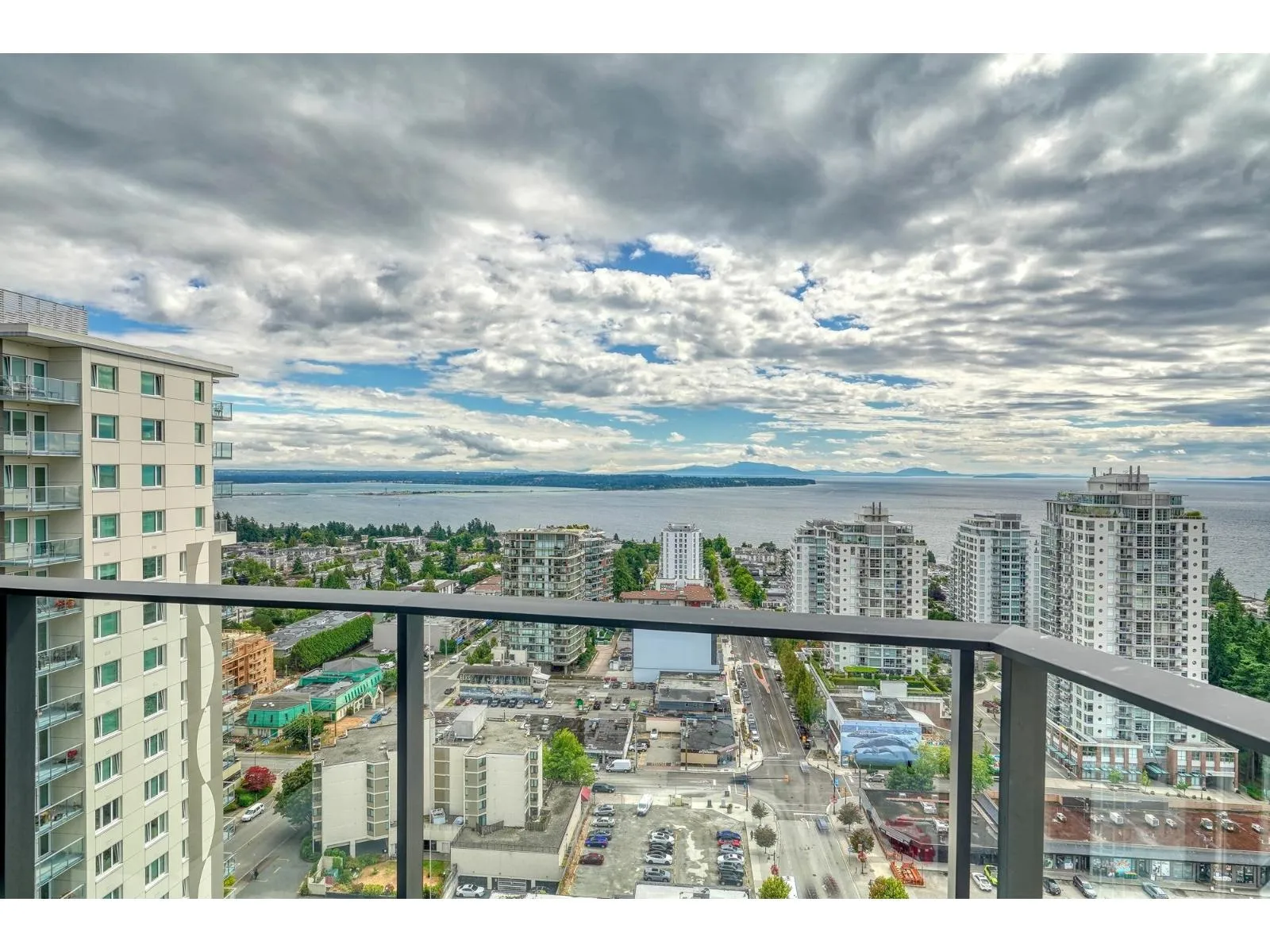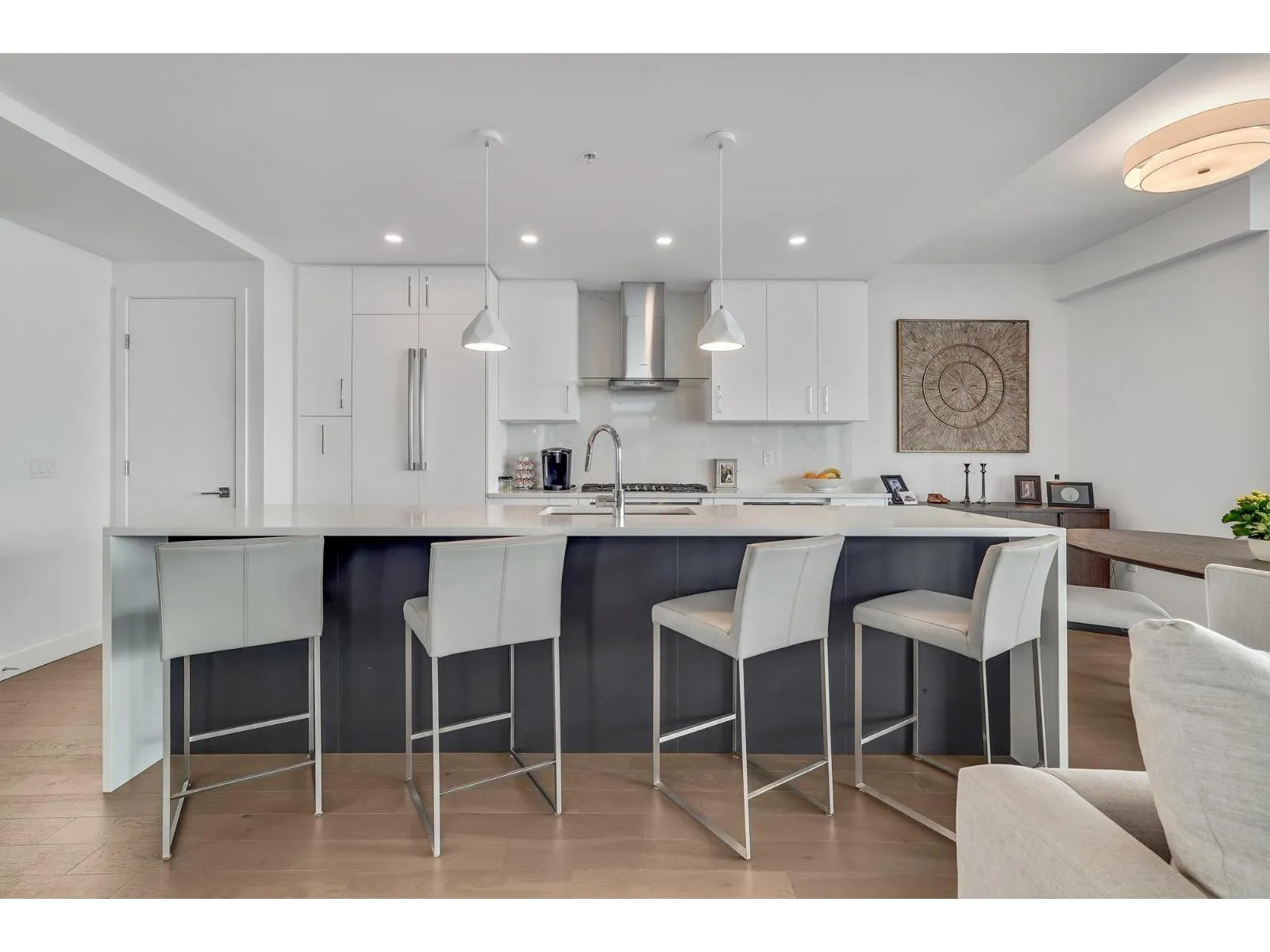 Exquisite Southwest - facing residence with panoramic ocean & mountain vistas. The Gourmet kitchen features quartz surfaces & premium Bosch appliances. 1428 Sq ft of sophisticated living with 2 generously sized bedrooms, each with ensuites, plus elegant powder room. Indoor-outdoor fireplace enhances seamless entertaining from the 549 Sq ft wrap around deck with stunning views. Comfort is elevated with climate-controlled air throughout, 3 rare side-by-side parking stalls with EV charging and resort-style amenities complete this premier White Rock offering. Walk to beaches, pier, groceries, restaurants and cafes - only 40 minutes to Vancouver. Experience unparalleled coastal luxury at its finest. (id:27476)