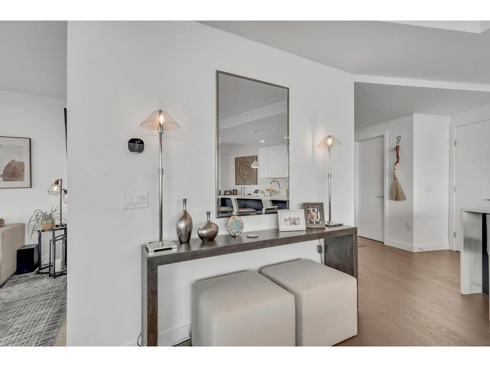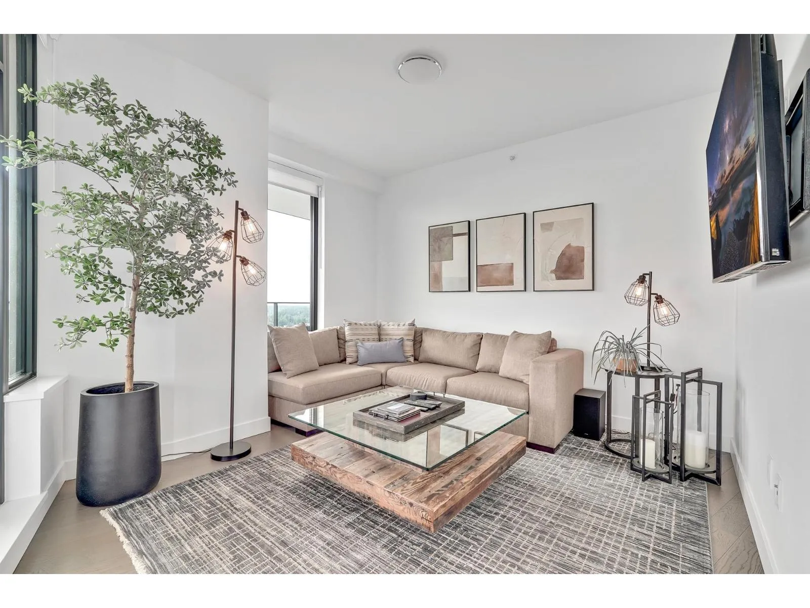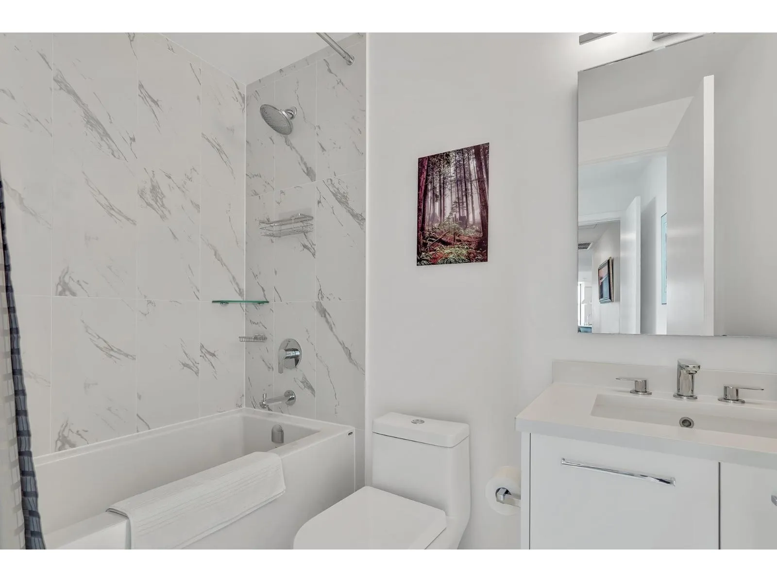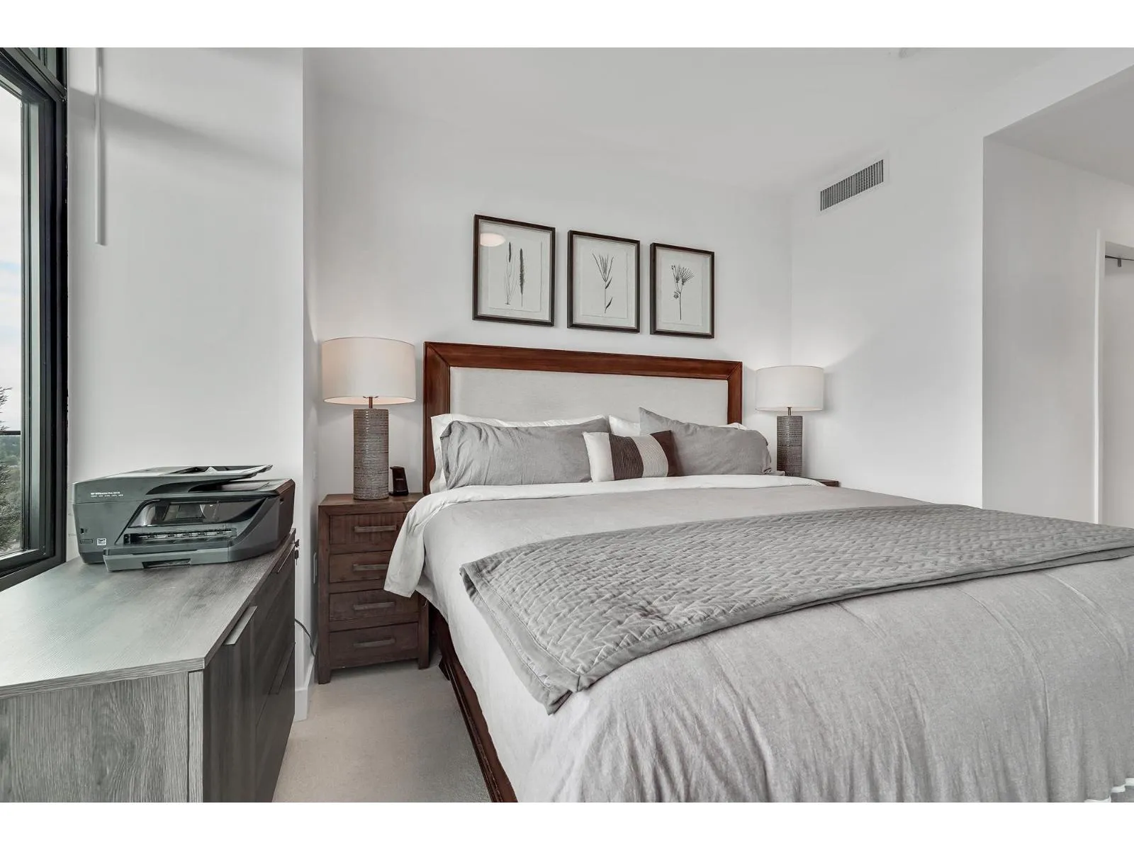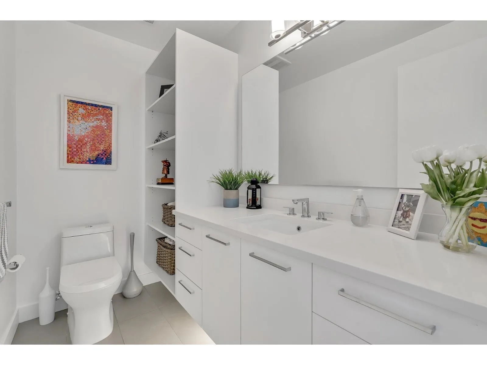 Exquisite Southwest - facing residence with panoramic ocean & mountain vistas. The Gourmet kitchen features quartz surfaces & premium Bosch appliances. 1428 Sq ft of sophisticated living with 2 generously sized bedrooms, each with ensuites, plus elegant powder room. Indoor-outdoor fireplace enhances seamless entertaining from the 549 Sq ft wrap around deck with stunning views. Comfort is elevated with climate-controlled air throughout, 3 rare side-by-side parking stalls with EV charging and resort-style amenities complete this premier White Rock offering. Walk to beaches, pier, groceries, restaurants and cafes - only 40 minutes to Vancouver. Experience unparalleled coastal luxury at its finest. (id:27476)