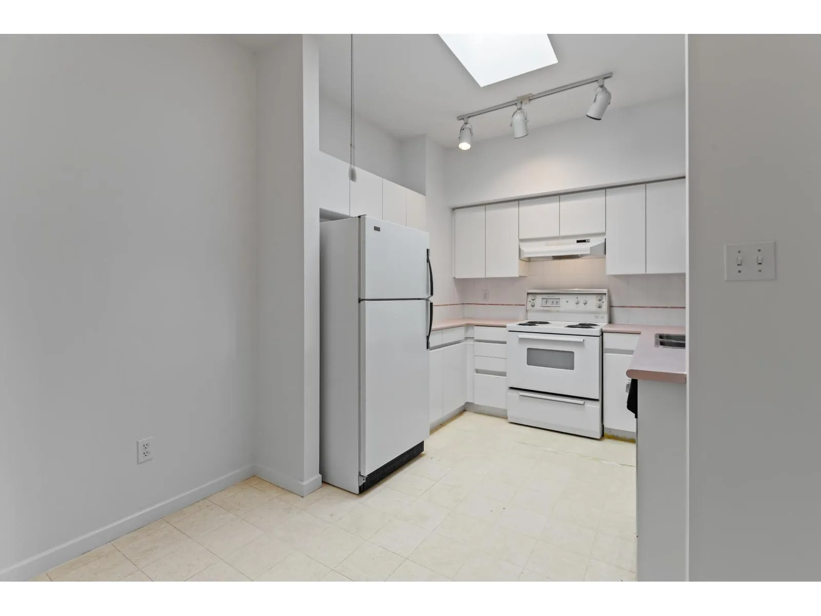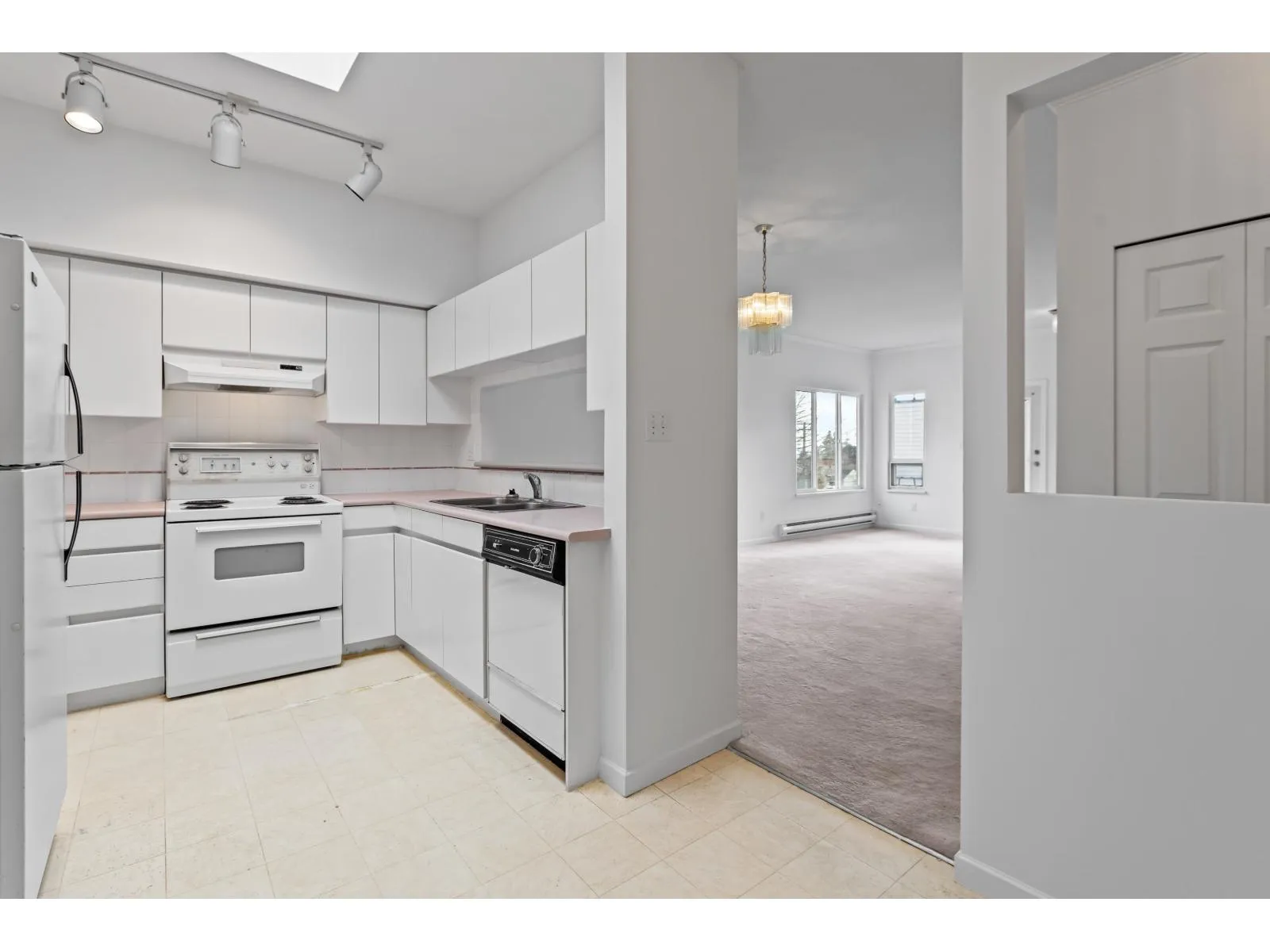 Welcome to the Tivloi this large open 2 bedroom 1bathroom top floor unit with South facing sunny covered sundeck over looking the court yard. Freshly painted unit with lots of natural light including a skylight in the kitchen. Bring your design idea's to this well laid out condo. Centrally located Walking distance to Restaurants ,Shopping, Parks , transit and Peace Arch Hospital. Great building with no age restrictions, Pets ,Rentals and Children allowed. (id:27476)