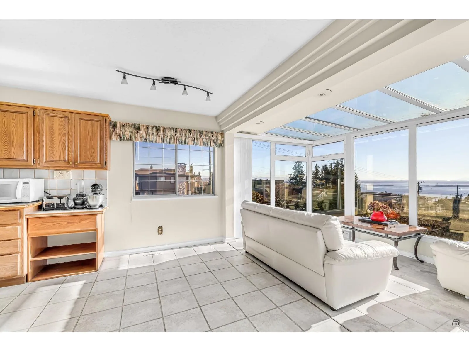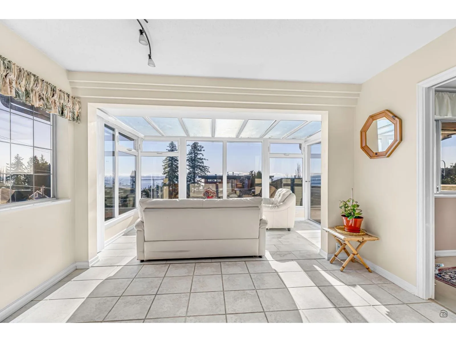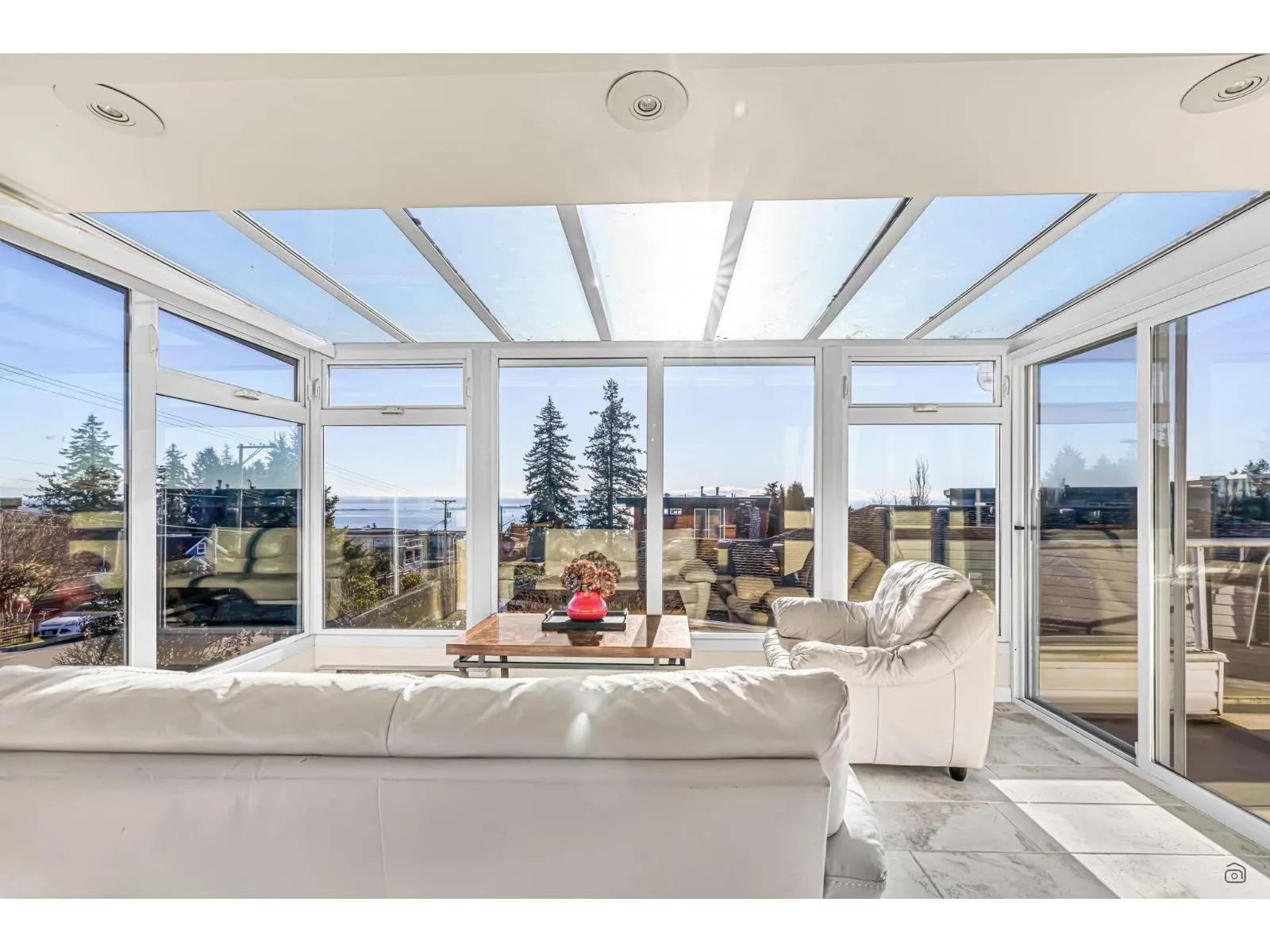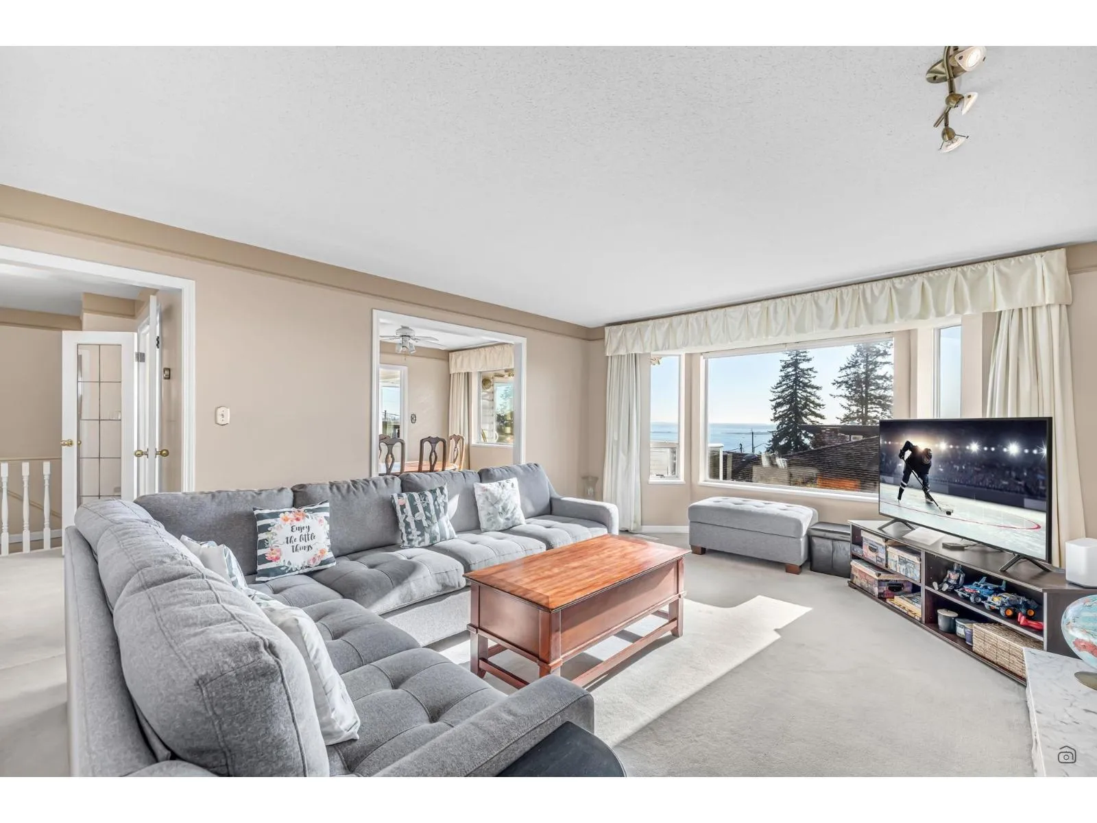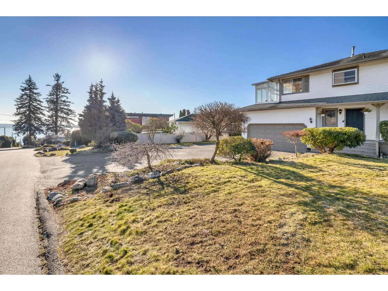 Stunning ocean views steal the show in this bright and spacious 4-bedroom, 3-bathroom home on a large corner lot. Enjoy breathtaking vistas from the solarium and balcony, while the sunlit above-ground basement offers its own laundry, a 25' x 20' walkout patio, and an 8' x 6' outdoor-access storage room-perfect for extended family living. Modern updates include sleek appliances, a newer hot water tank, and two cozy gas fireplaces. With ample parking, including RV space, this home is ideally situated in top school catchments: Semiahmoo Secondary (IB Program) and White Rock Elementary (Fine Arts). Steps from transit, Uptown shops, and three blocks to Peace Arch Hospital. Don't miss the cinematic video and floorplans! (id:27476)