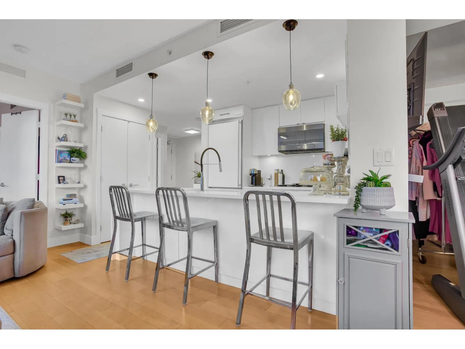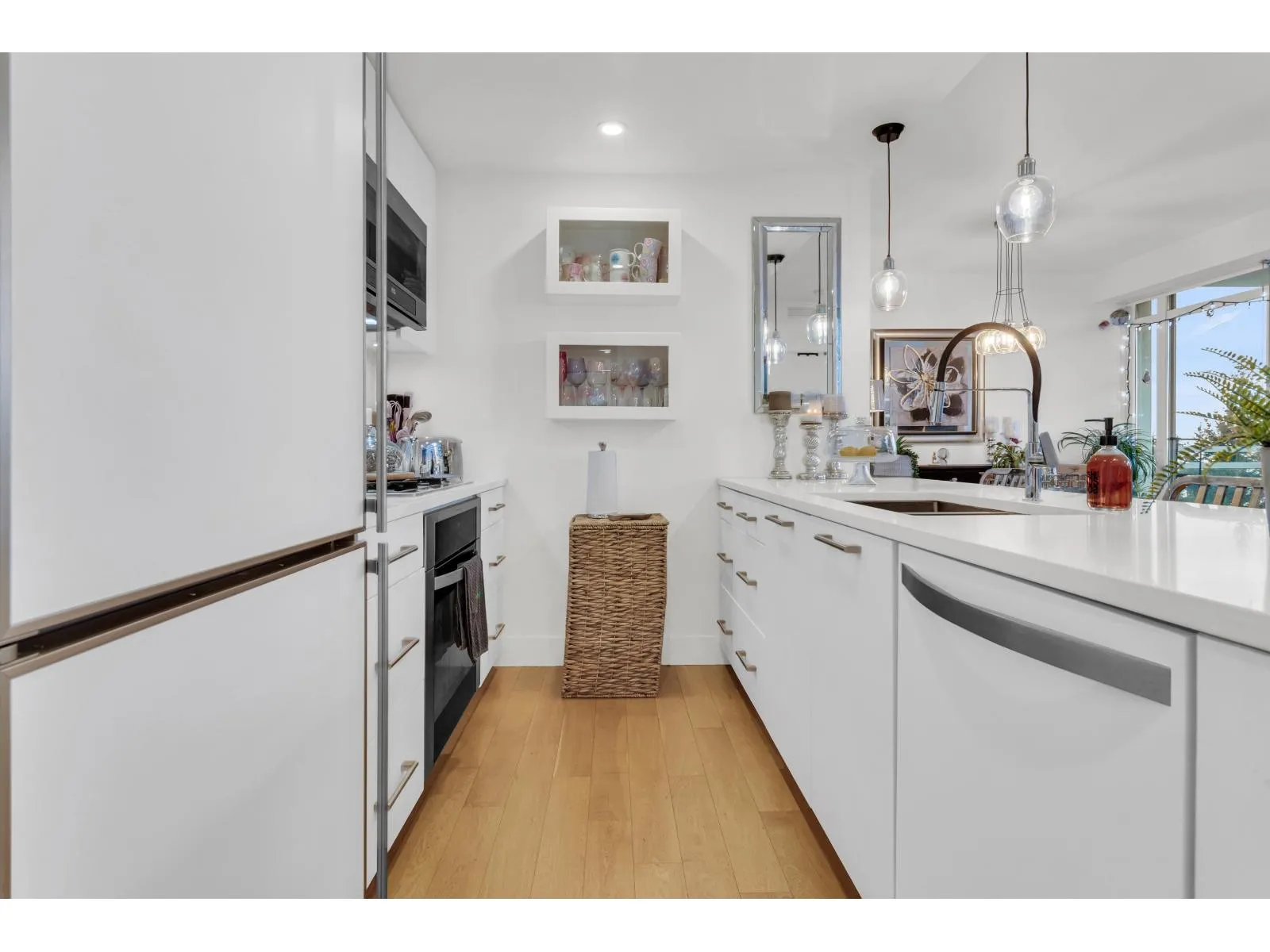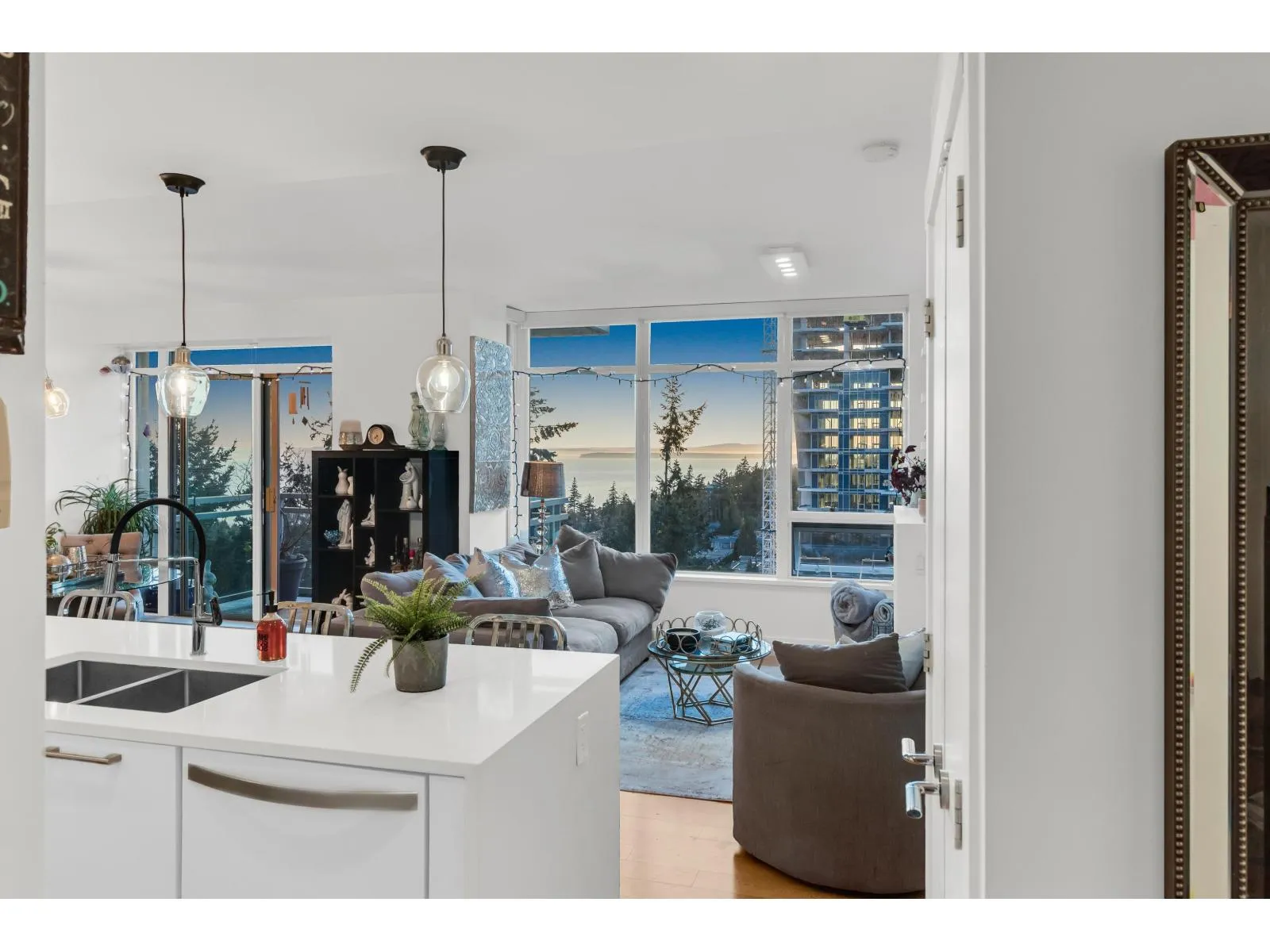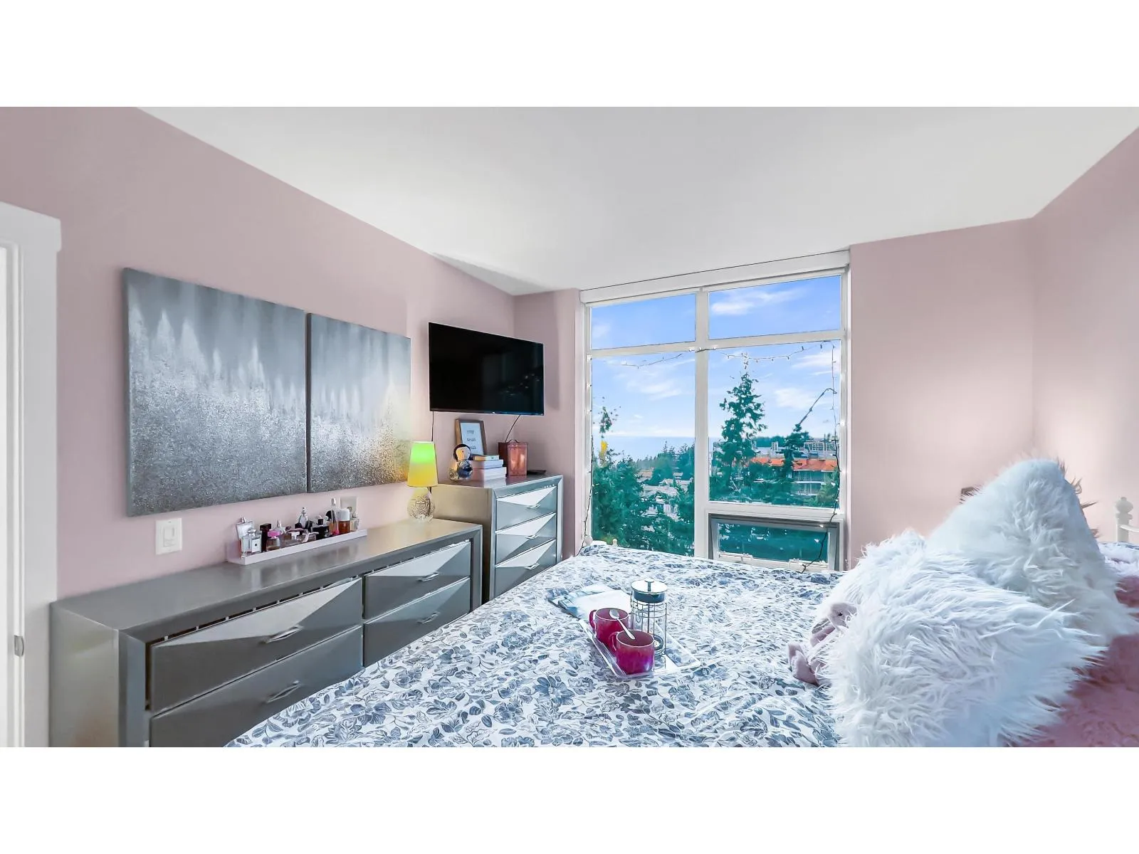 Miramar Village in picturesque White Rock! This stunning unit is located within a masterfully designed four-tower community crafted by the acclaimed developer, BOSA! This exquisite 1 Bed + DEN suite is perfectly situated on the peaceful side of the building, showcasing breathtaking west-facing OCEAN VIEWS from every room. Designed with an open-concept layout, it features floor-to-ceiling windows that fill the space with natural light. The versatile den, outfitted with a custom Murphy bed, can serve as a second bedroom or a home office. The low strata fees include access to the swimming pool and hot tub! With two parking stalls and a storage locker, this rare gem has everything you need. Your Oceanside sanctuary is waiting! (id:27476)