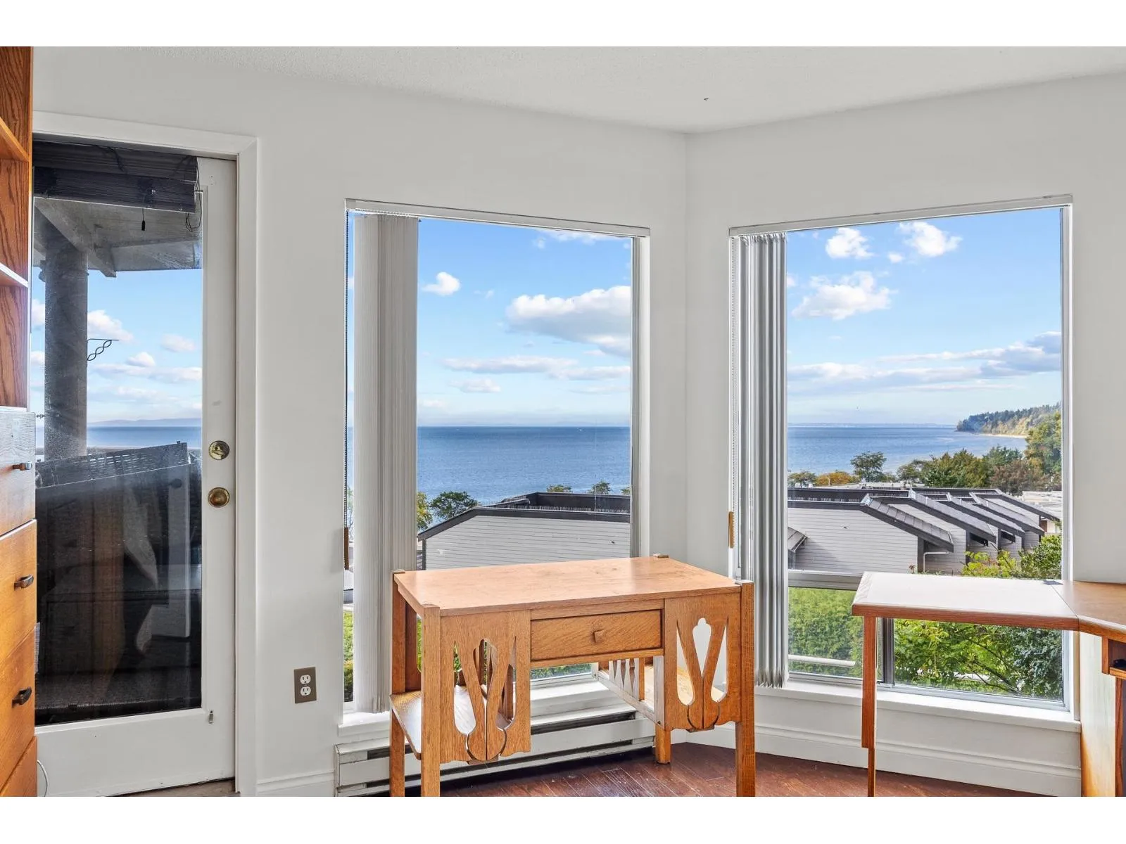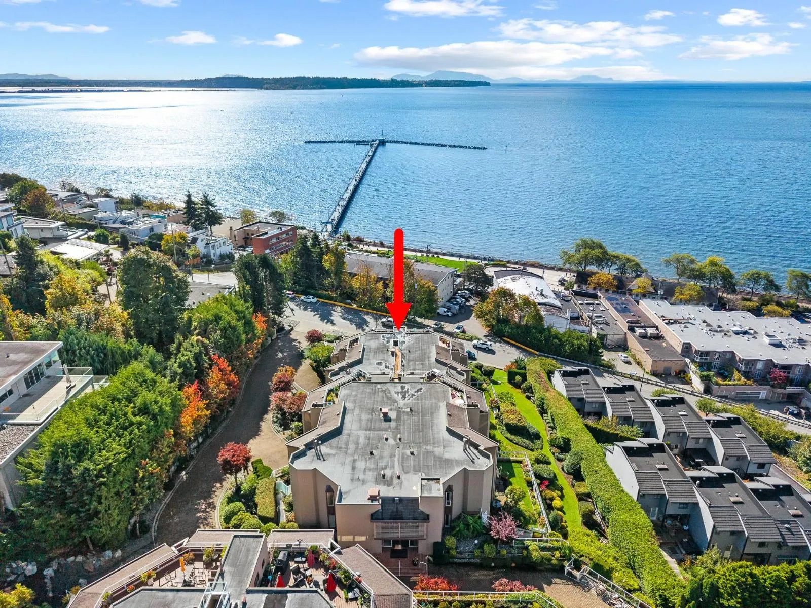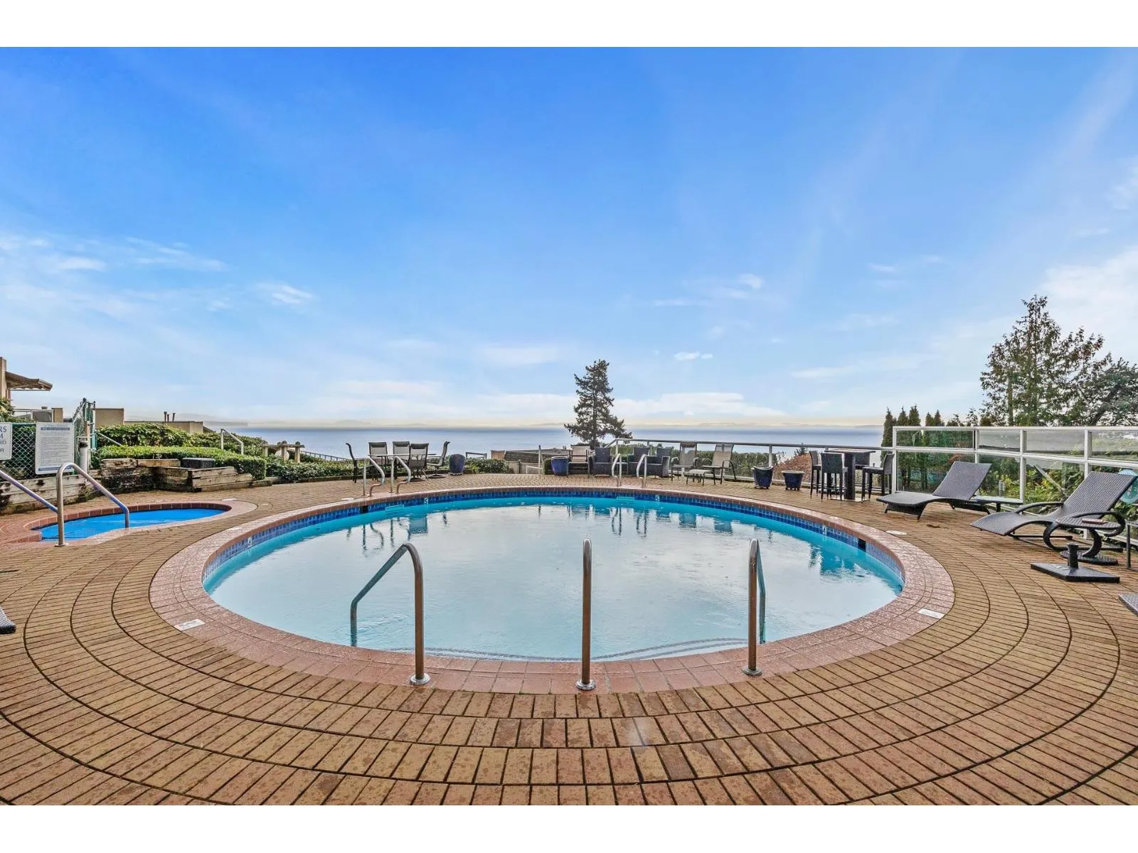 Experience coastal luxury in this stunning 2 bed + den, 2 bath condo in the heart of White Rock. Spanning 1,416 sq. ft., this bright and spacious home features breathtaking ocean views, an open-concept layout that is perfect for entertaining. The floor-to-ceiling windows show off stunning sunsets while letting in tons of natural light. The primary suite offers a spa-inspired ensuite and access to your private deck. The deck offers 248 Sqft perfect for a garden. With the resort-style amenities, secure parking, and a prime location steps from shops, restaurants, and the beach. This is a home you won't want to miss out on. (id:27476)