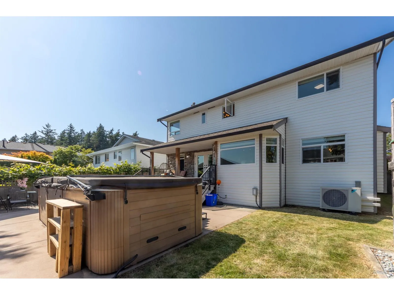 Over 2,000 ft beautiful home with Best School Catchment: White Rock Elementary & Semiahmoo Secondary in desirable VISTA HILLS of White Rock, a safe and quiet neighborhood. Immaculate 2 level living,with 3 bdrms,3 baths and quality renovations throughout.Upgrades include:200 AMP electrical panel,air conditioning,EV Charging outlet, hardwood floor,custom cabinets built in kitchen with new stainless steel appliances, stonework, great layout with three generous size bdrms in upper level, huge master bedroom with ensuite,WIC and office, along with some ocean view.2 gas fireplaces combined with another 2 electric fireplaces.Spacious backyard includes Coast Wellness and Health Swim Spa centre, private back yard with patio/decks/fencing and gas hookup, close to schools,parks,the beach and shops. (id:27476)