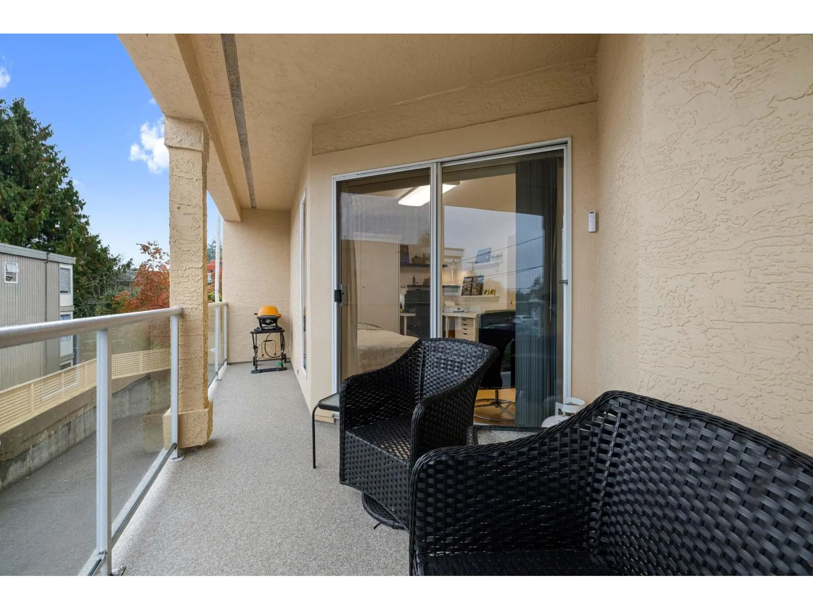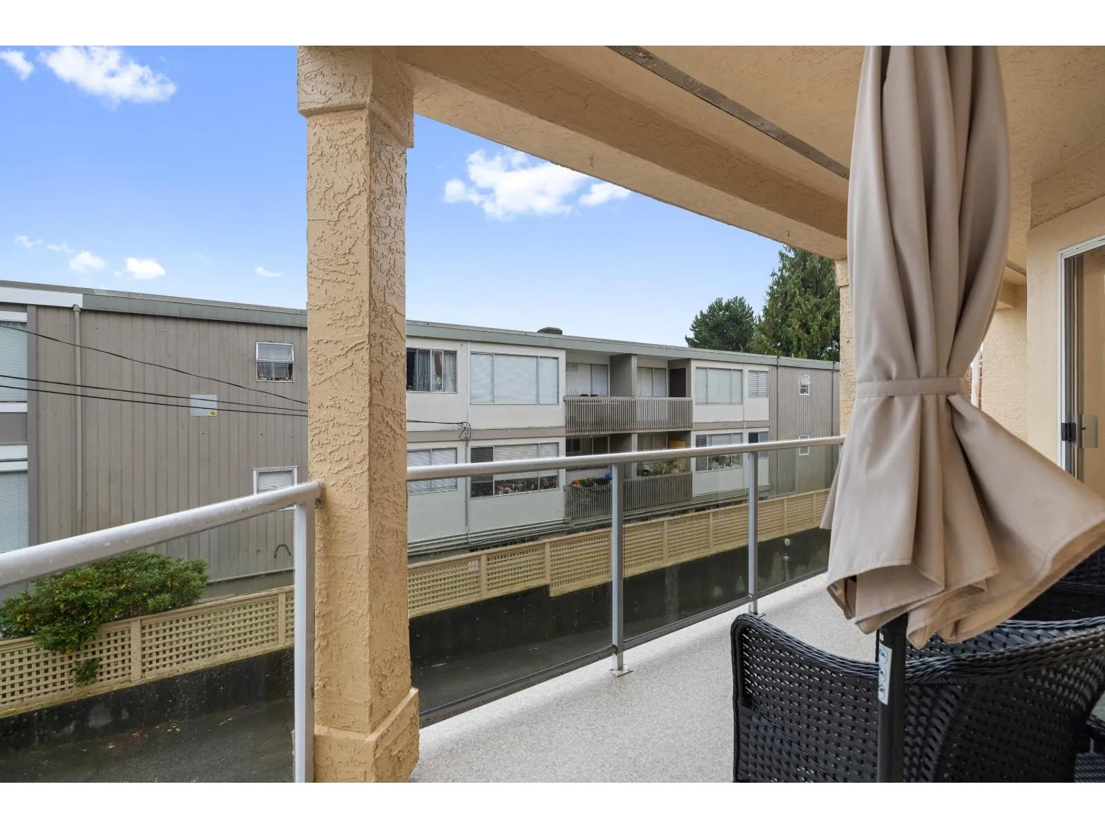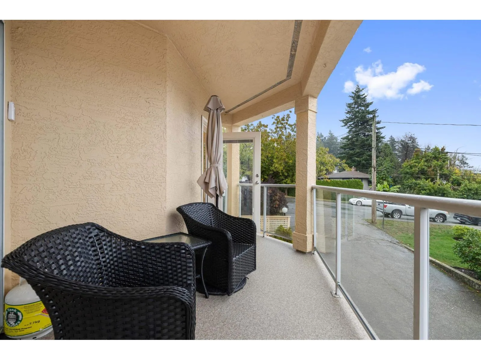 WELCOME to 201 1255 Best St, an exceptional, fully renovated corner condo in the heart of White Rock. This 2 Bed 2 Bath home truly lives like a rancher: it offers level entry from the street while maintaining an elevated balcony for a secure, private feel. Enjoy the spacious, light-filled environment with windows on three sides and generous rooms perfect for house-sized furniture. The Primary Bedroom includes a custom wall-to-wall wardrobe/closet, and the second bedroom features a space-saving Murphy bed-perfect for a flexible office or guest suite! The home boasts an open-concept design, a gorgeous updated kitchen with stone countertops, new flooring, new appliances and a cozy gas fireplace. Relax on your sunny, south-facing balcony and enjoy the peek-a-boo ocean view! (id:27476)