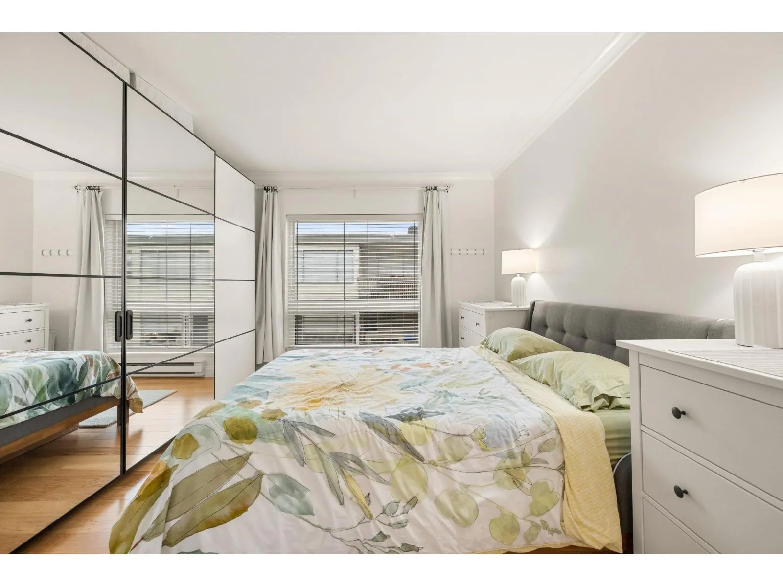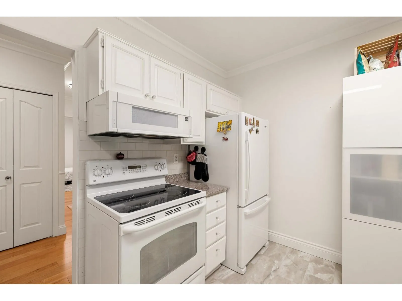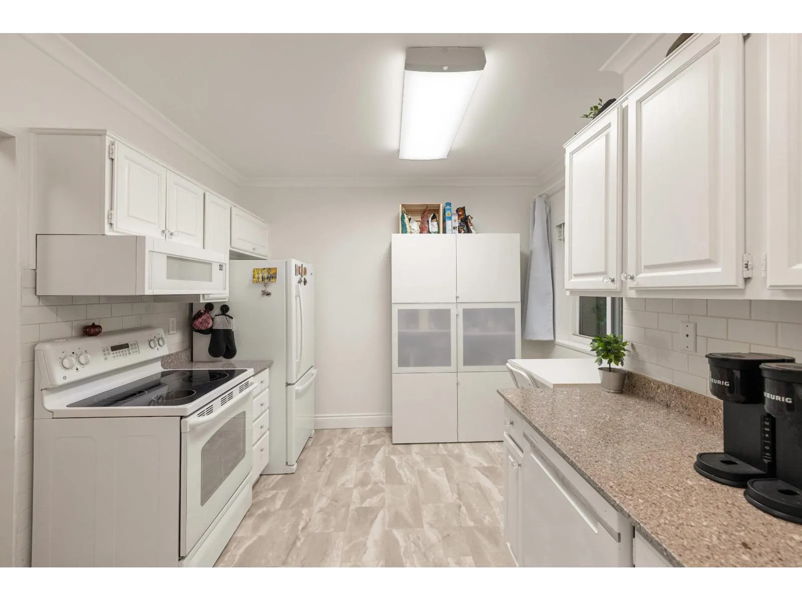 WELCOME to 201 1255 Best St, an exceptional, fully renovated corner condo in the heart of White Rock. This 2 Bed 2 Bath home truly lives like a rancher: it offers level entry from the street while maintaining an elevated balcony for a secure, private feel. Enjoy the spacious, light-filled environment with windows on three sides and generous rooms perfect for house-sized furniture. The Primary Bedroom includes a custom wall-to-wall wardrobe/closet, and the second bedroom features a space-saving Murphy bed-perfect for a flexible office or guest suite! The home boasts an open-concept design, a gorgeous updated kitchen with stone countertops, new flooring, new appliances and a cozy gas fireplace. Relax on your sunny, south-facing balcony and enjoy the peek-a-boo ocean view! (id:27476)