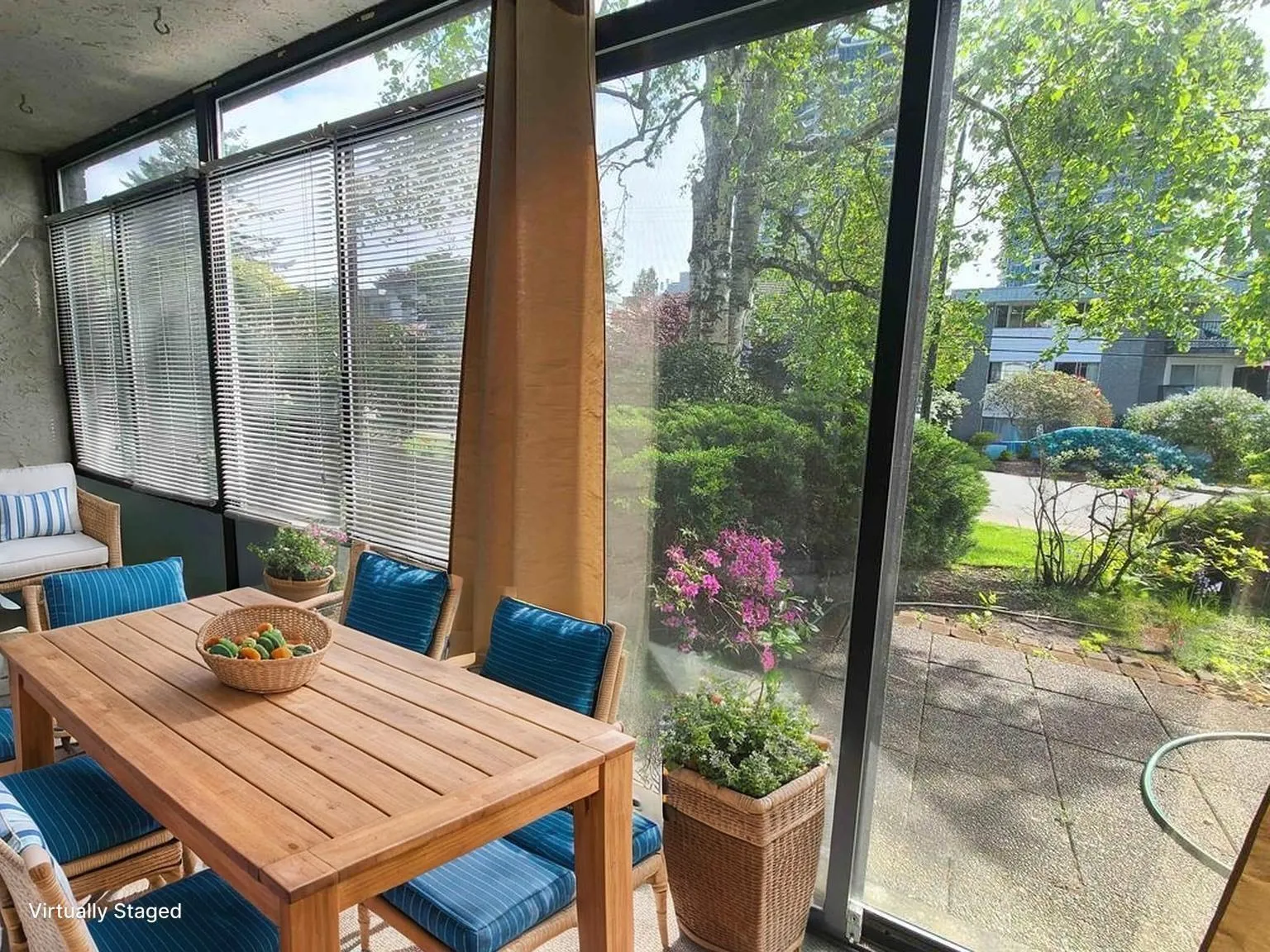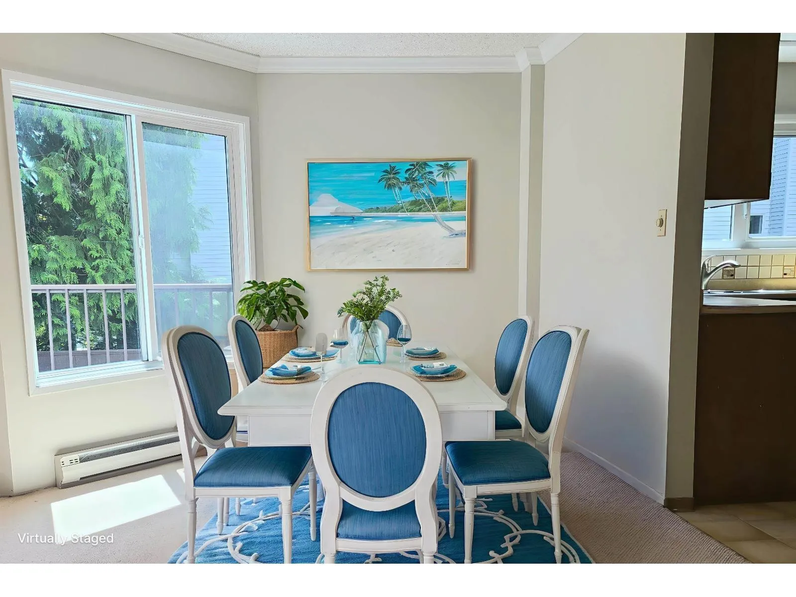 Welcome to The Sandringham on Blackwood, with easy access to bus routes and uptown White Rock/Semiahmoo Mall. Ground floor with two balconies: one open, one enclosed. Good sized kitchen with easy access to the dining/living room area. Corner unit means extra windows, as this one faces S/E so you get lots of light, without the oppressive summer heat. Put your decorator muscles to work here and elevate a very nice unit to fantastic. Wool carpet in the living room was installed w/in the past 5 years. 1dog (14"at shoulder), or 2 cats welcome which makes this an ideal unit for pet owners - create their own little spot in the enclosed balcony, to watch the world go by. 55+ building. No open houses, private showings only. Photos w/furniture are virtually staged. (id:27476)