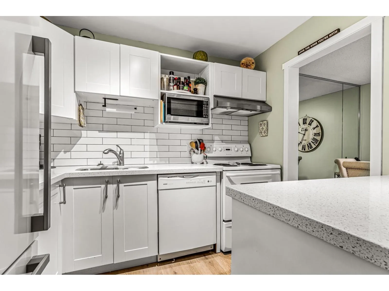 Welcome to the heart of White Rock! This bright and spacious 2 bedroom condo offers an open floor plan with a functional kitchen and comfortable living space. One bedroom is currently used as a den, complete with a closet and window making it perfect for a home office or guest room. Enjoy seamless access to the large fenced deck from both the living room and primary bedroom - an ideal space for relaxing or entertaining outdoors. Strata fees include heat and hot water, adding great value and convenience. Walk to White Rock Hospital, shopping and restaurants and live just minutes from the beautiful oceanfront and all the charm this seaside community has to offer. (id:27476)