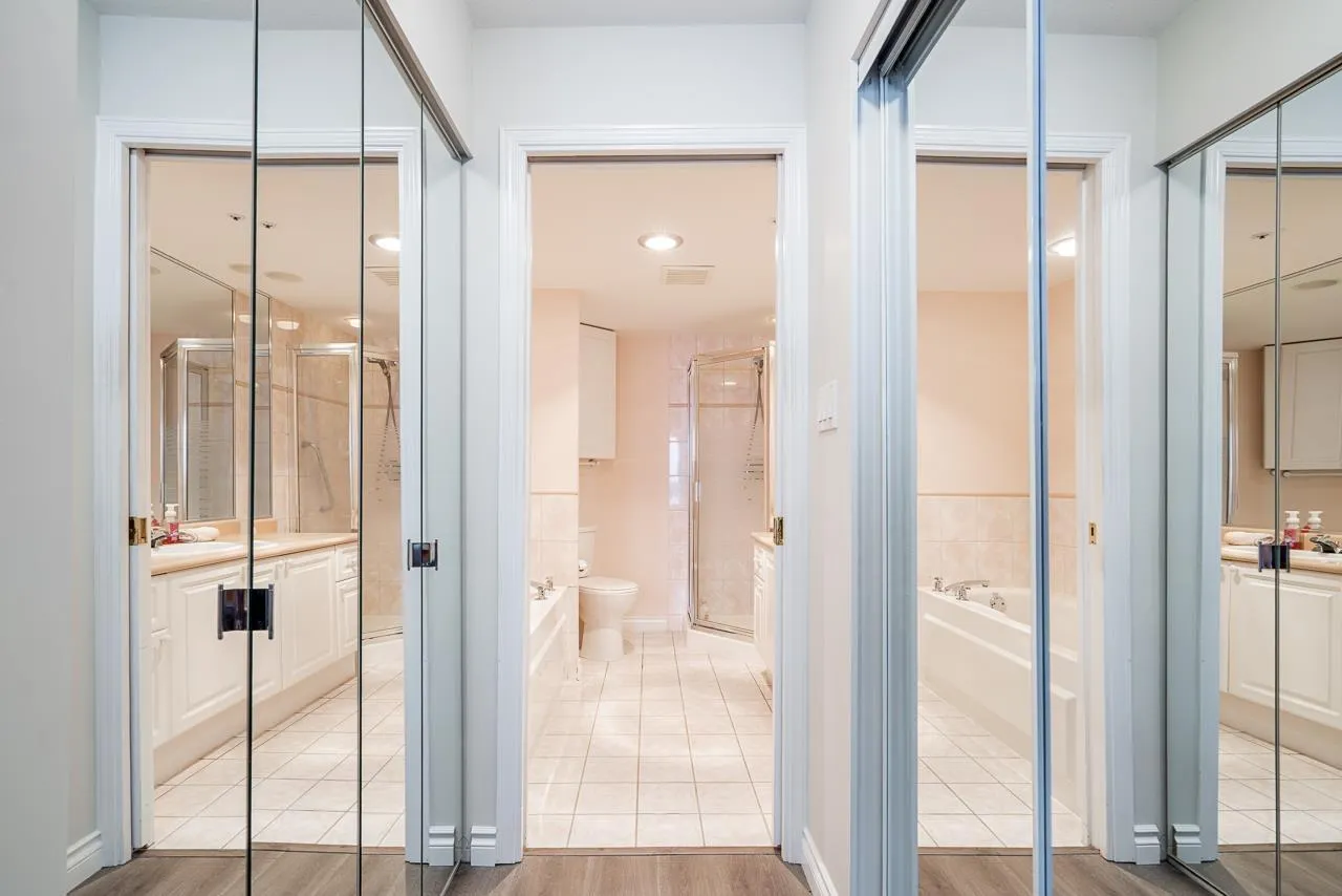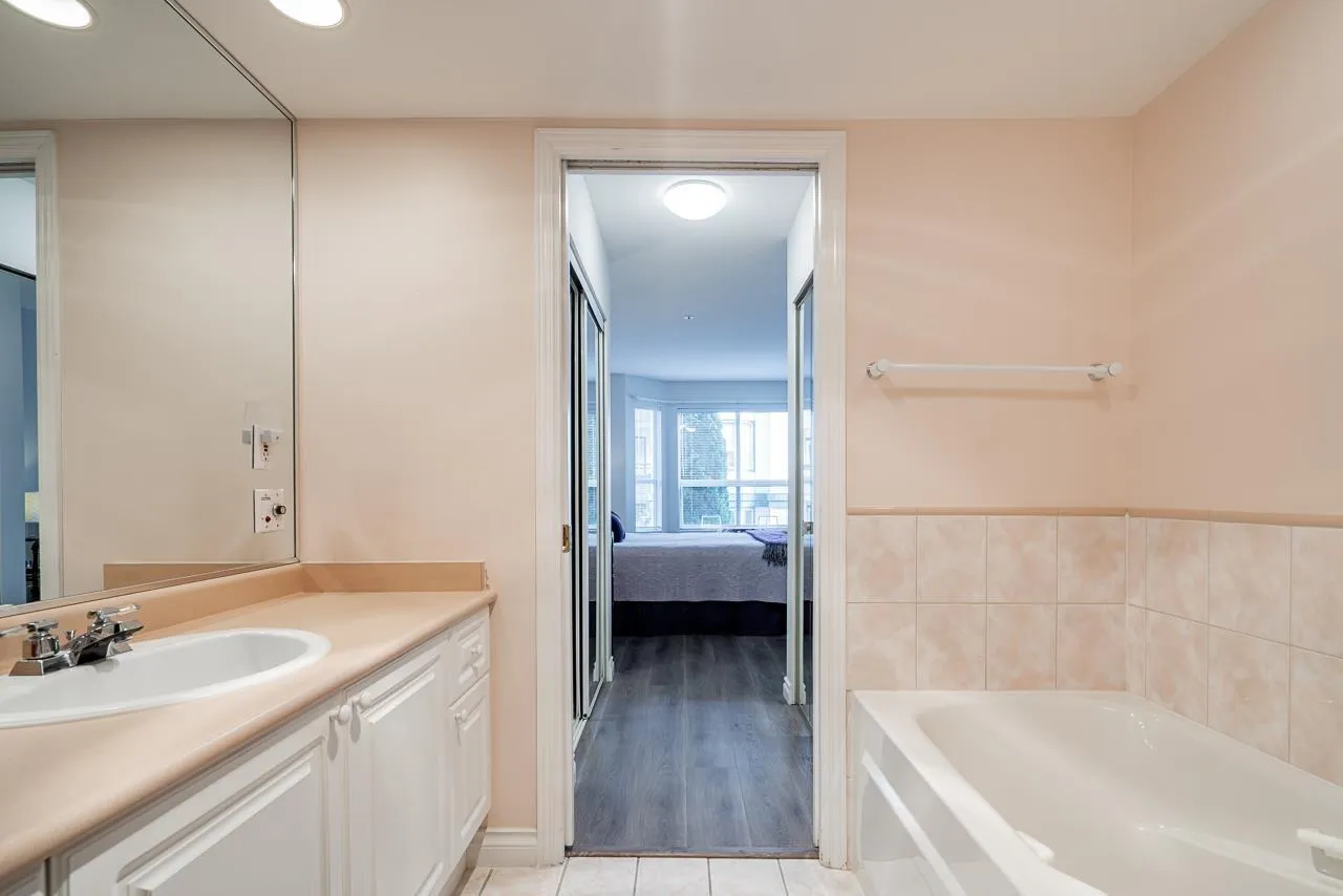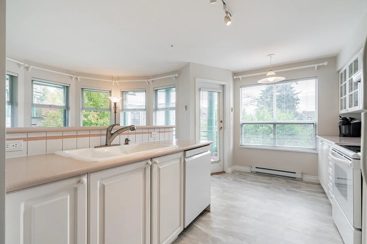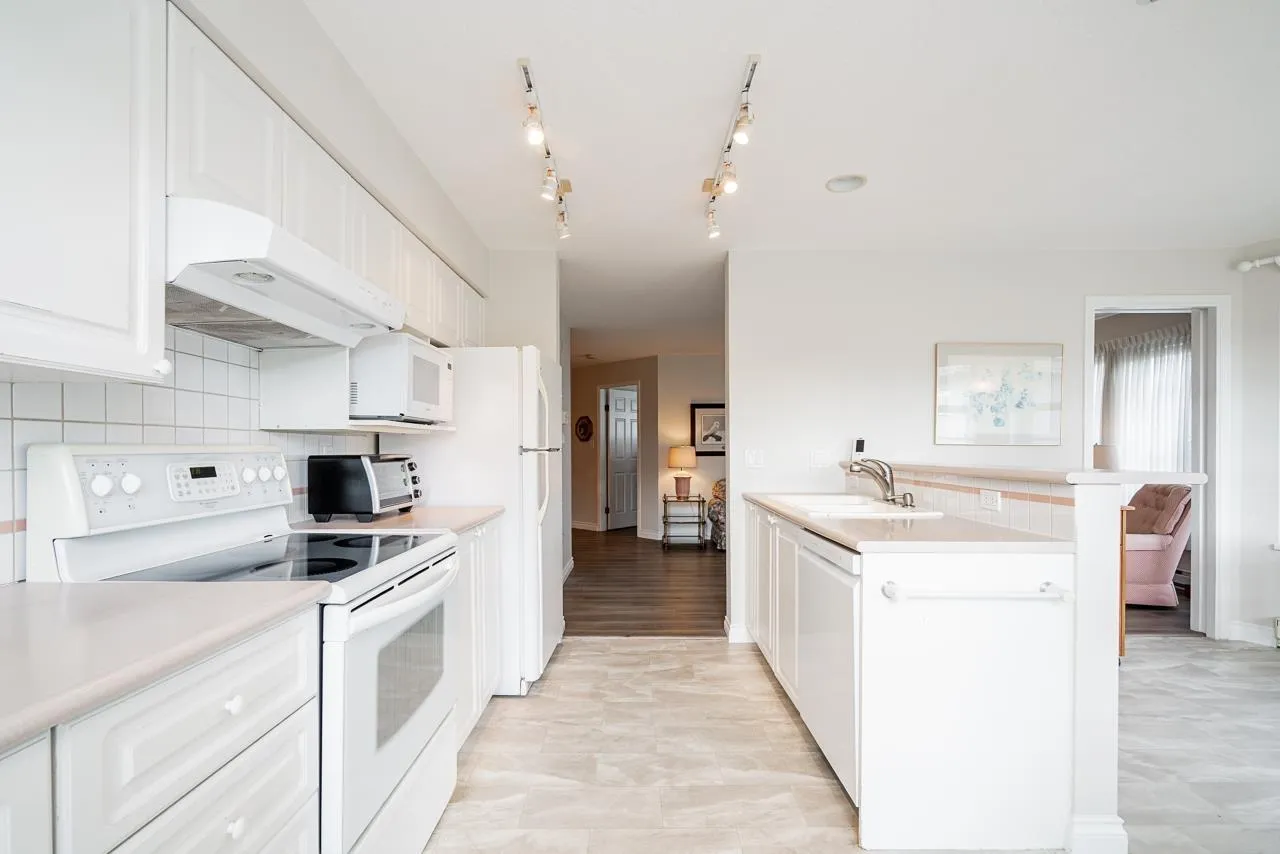 This ESTATE sale S.E. Corner unit overlooking the garden area is a quiet, bright and ready to move in home. You'll appreciate a freshly painted home w/vinyl flooring throughout except for tile in the kitchen. No wasted space w/loads of room for house sized furniture. The two bedrooms are nicely separated for privacy w/an ensuite off the primary bedroom and another 4pc bathroom just across from the 2nd bedroom. With access to your wraparound balcony from the kitchen or living room you'll enjoy a quiet cuppa overlooking the garden or dine alfresco! Friendly & quiet complex offers great amenities: woodworking shop, full gym, lounge w/kitchen, book exchange, bike storage, guest suite, landscaped courtyard w/seating & putting green. Close to hospital, shopping mall, services & amenities. (id:27476)