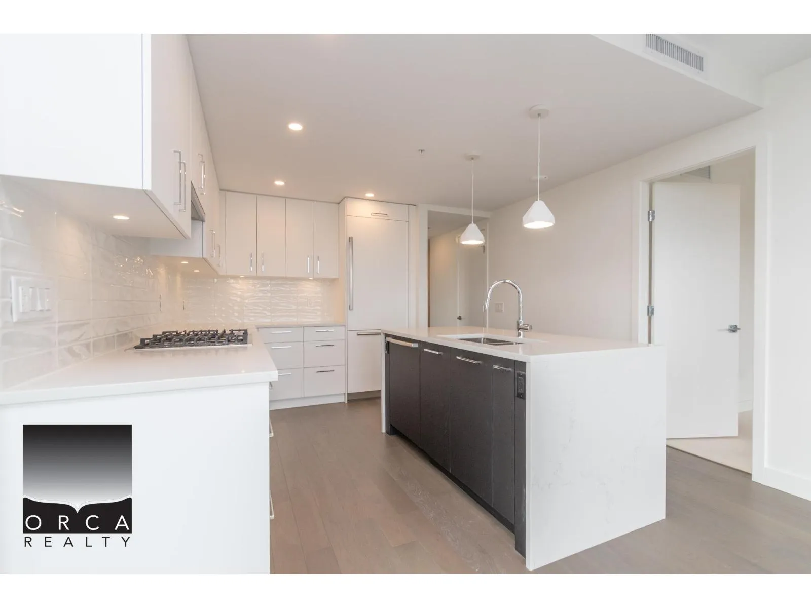Step into luxury with this 2BR/2BA corner unit in White Rock, offering panoramic Mt. Baker views from a 174 sqft balcony perfect for entertaining. The gourmet kitchen features a waterfall-edge island and Bosch 800 Series appliances, while 8'6? ceilings fill the home with light. The ensuite boasts double sinks, a walk-in shower, and Grohe fixtures, complemented by a spacious walk-in closet. Located in Soleil, enjoy air-conditioned concrete construction, engineered hardwood floors, and wool-blend carpets. Conveniently above Semiahmoo Shopping Centre with banks and restaurants nearby, and just a 20-minute walk to White Rock Pier. Experience vibrant urban living with parks, dining, and transit at your doorstep-your dream home awaits! (id:27476)