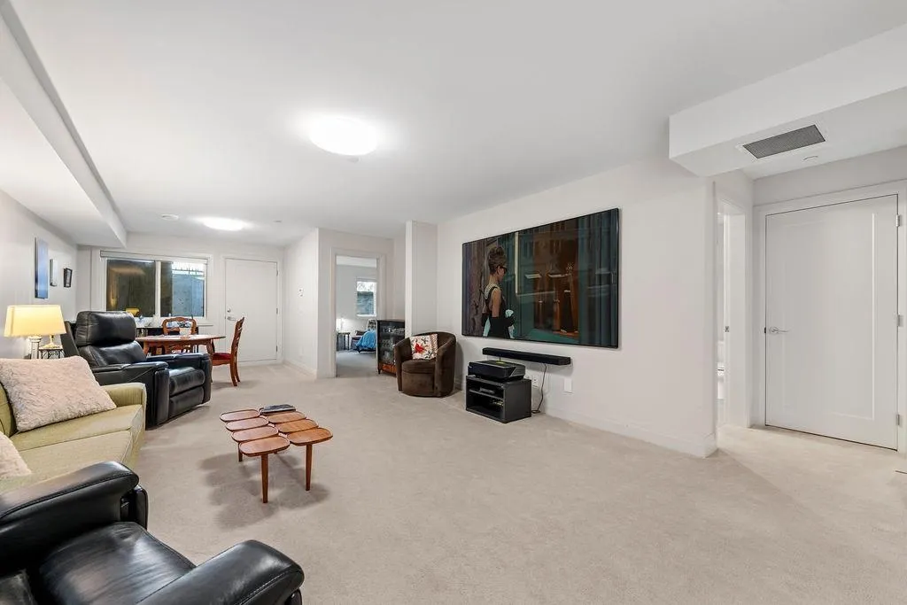 This half duplex blends thoughtful design with everyday comfort, featuring a main-floor primary suite and an airy open-concept layout with soaring ceilings. Eclipse doors extend the living space onto a sun-filled front deck, perfect for seamless indoor/outdoor living. The chef-inspired kitchen showcases a striking blue island with gold hardware and plenty of workspace. Upstairs offers two bedrooms and a full bath, while the lower level includes a rec room, multipurpose area, bedroom, and bathroom. Finishes include oak hardwood floors, custom built-ins, and a 30-amp plug for EV charging, plus a private backyard for kids, pets, or relaxing evenings. Set on a quiet street within walking distance to restaurants & the White Rock Pier. Catchment schools Peach Arch Elementary & Earl Marriott Sec (id:27476)