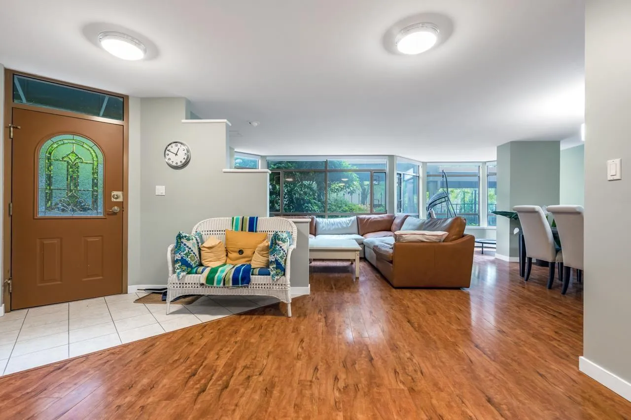 Special Assessment of $250,000 has been paid in full By the Seller! This Beautiful Two level End Unit features 2120 sqft 3 Bed + 3 Bath located in the heart of White Rock. Recently Renovated with all New Hardwood flooring throughout, Fresh New Paint, Light Fixtures. Large open floor plan with gorgeous kitchen cabinets, granite counters w/breakfast bar. Laundry room with lots of storage. Large in-suite laundry with storage, powder room and One Bedroom On the Main. The Upper Level offers a loft(workspace), Spacious Master with Ensuite, Third Bedroom. Lovely unit with lots of natural light and Ground Floor Walk-out with Patio and quick access to surrounding shops and transit. Heat, Gas & Hot Water Included. Indoor Pool, Steam Room, Hot Tub, Exercise Center, Penthouse lounge, Roof top terrace! (id:27476)