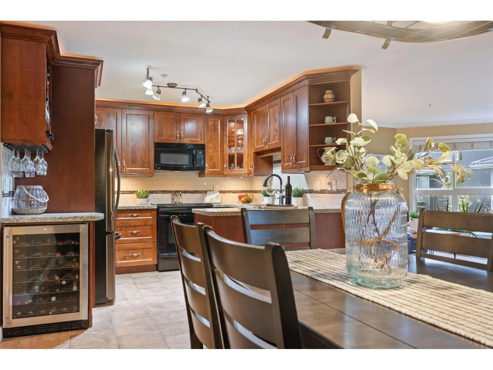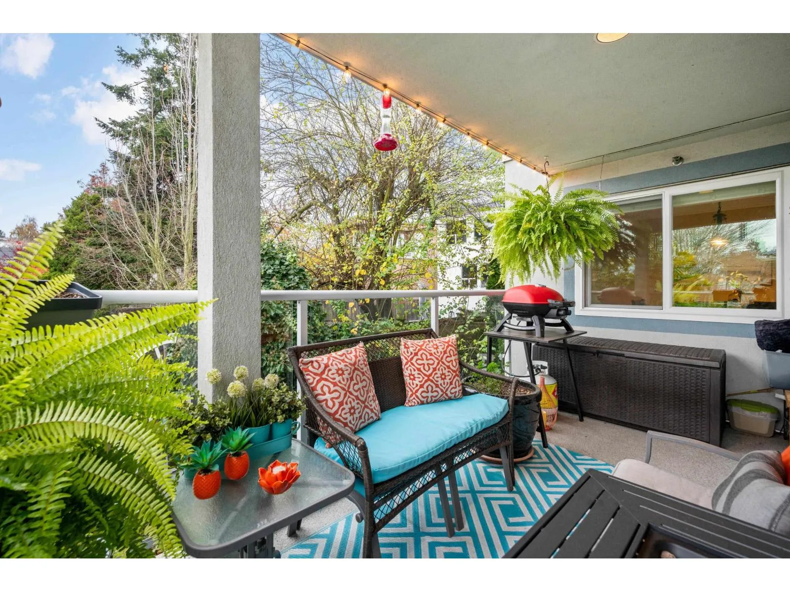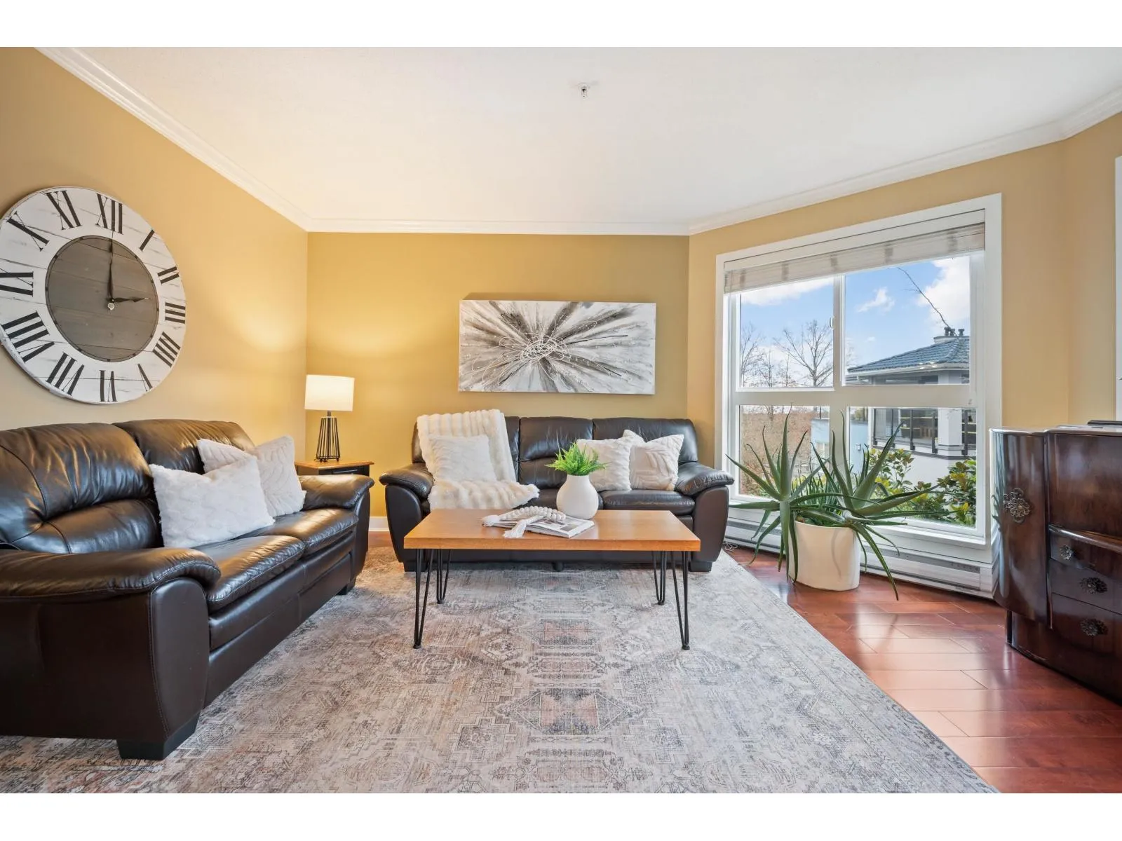 East Beach stunning 2 bed, 2 bath updated condo in White Rock! CORNER END unit is located on the quiet side of the building w/large windows on all sides for lots of natural light. Beautiful solid cherry hardwood floors, crown moulding, remodelled kitchen w/custom cabinetry & lighting, granite counters, wine fridge. Spacious & bright family room w/gas fireplace & large dining area for entertaining. Washer and Dryer new in 2022. Impressive sunny western exposed covered deck for BBQing. Lots of in-suite storage plus oversized laundry rm. Secure underground parking plus large storage locker. Maint. fee incl GAS. Just steps away from White Rock Beach & Semiahmoo Park. Minutes to HWY & US Border. Steps to transit. Move in ready for all ages, Bring your pet! (id:27476)