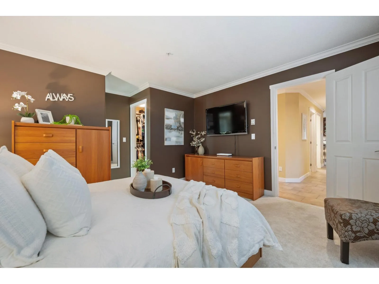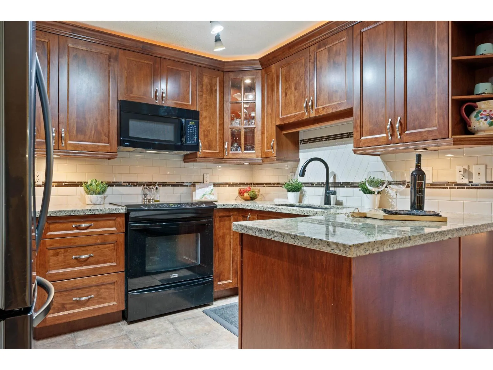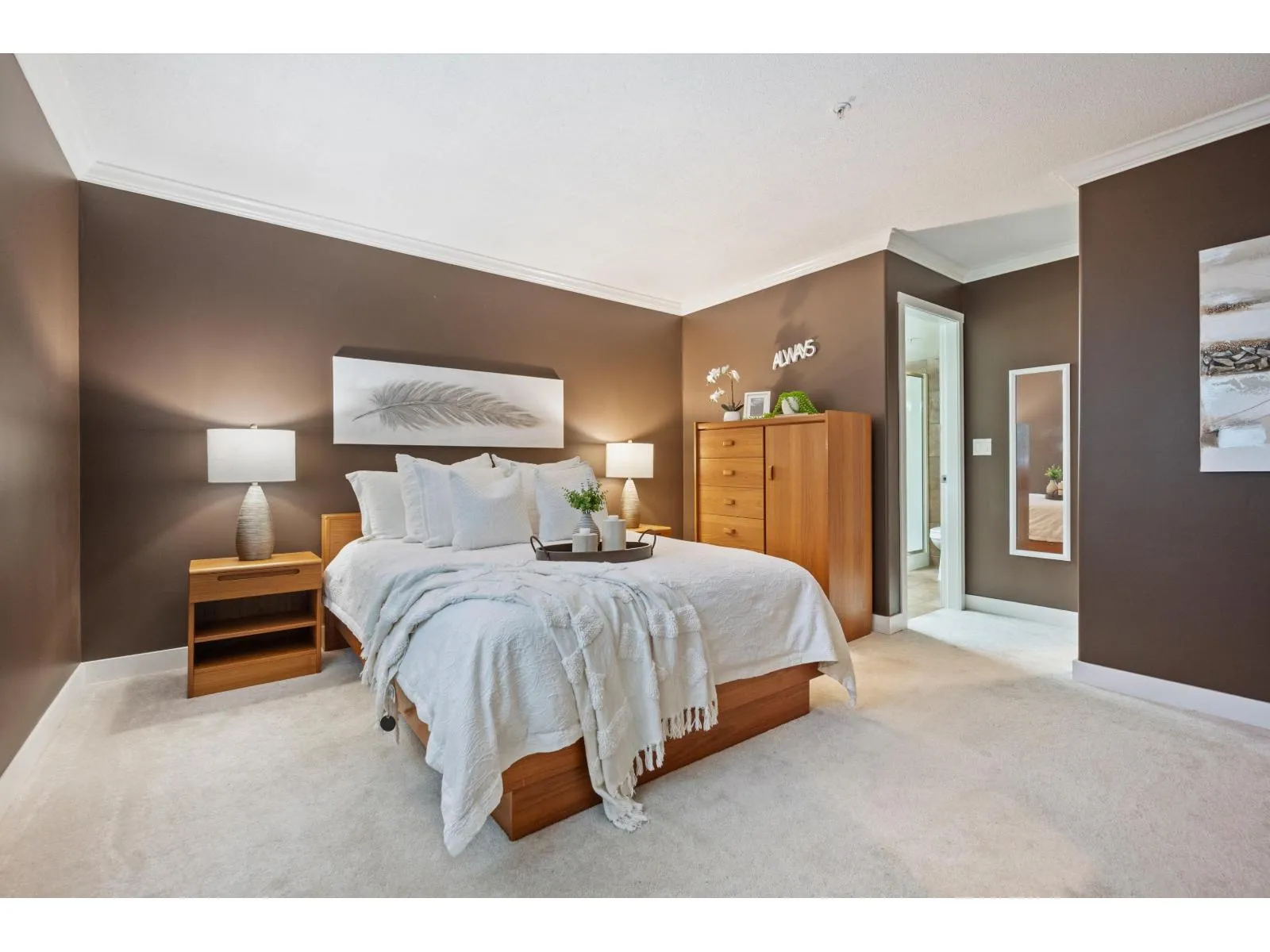 East Beach stunning 2 bed, 2 bath updated condo in White Rock! CORNER END unit is located on the quiet side of the building w/large windows on all sides for lots of natural light. Beautiful solid cherry hardwood floors, crown moulding, remodelled kitchen w/custom cabinetry & lighting, granite counters, wine fridge. Spacious & bright family room w/gas fireplace & large dining area for entertaining. Washer and Dryer new in 2022. Impressive sunny western exposed covered deck for BBQing. Lots of in-suite storage plus oversized laundry rm. Secure underground parking plus large storage locker. Maint. fee incl GAS. Just steps away from White Rock Beach & Semiahmoo Park. Minutes to HWY & US Border. Steps to transit. Move in ready for all ages, Bring your pet! (id:27476)