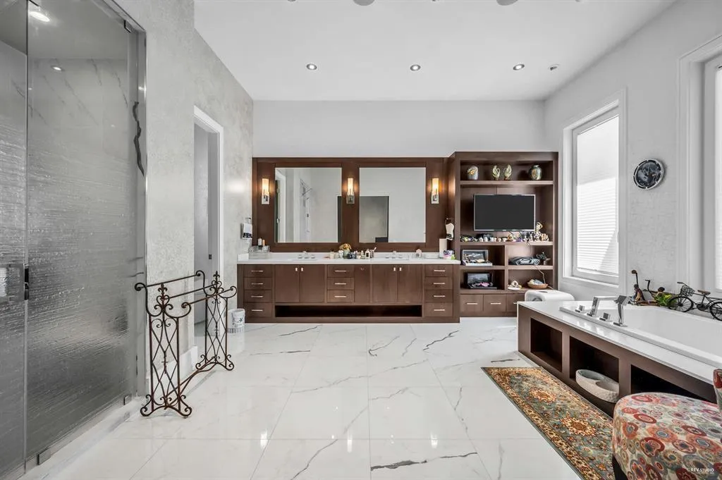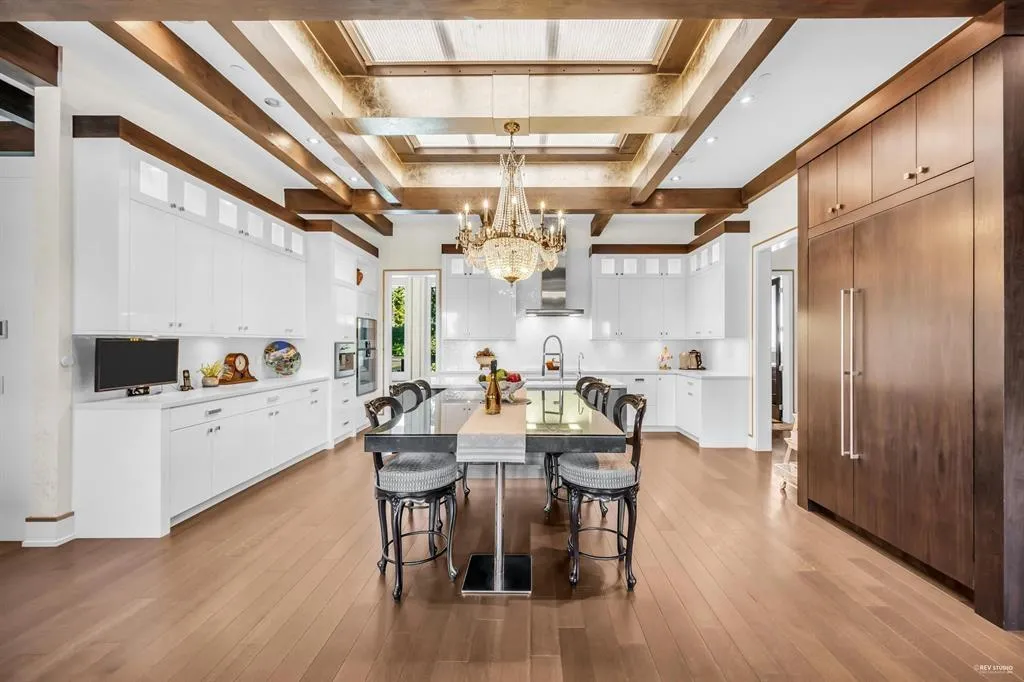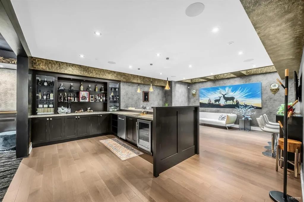 This magnificent three-level executive residence sits on nearly 25,000 sq. ft. of gated grounds and offers over 11,400 sq. ft. of living space. Designed for luxury and lifestyle, the home features 7 bedrooms, including 2 grand master suites, and a crafted layout ideal for family and entertainment. High-end appliances, auto security/control system. radiant heating, 2 HRV and 2 ACs, elevator, 2 kitchens, 2 wet bars, home theater, gym, heated swimming pool, barbeque & beautiful landscape garden & sea view. (id:27476)