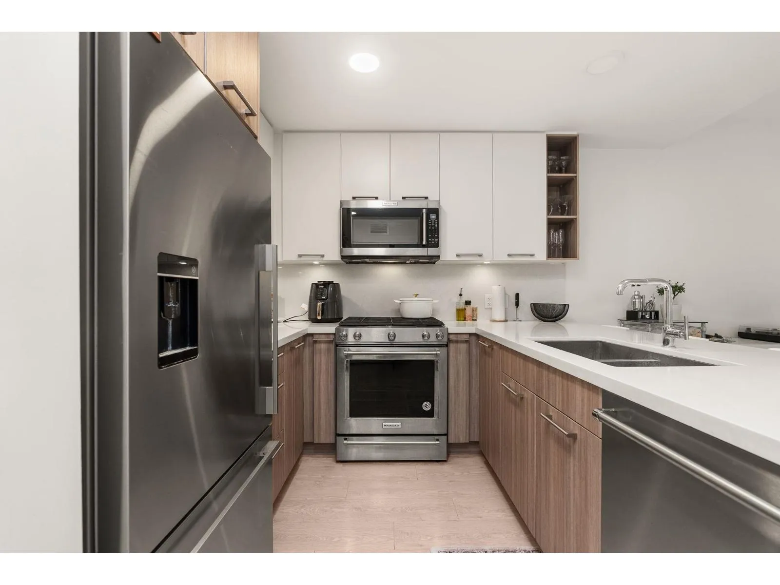 Welcome to BEACHBOROUGH in White Rock by Texor Homes! This great condition 1 Bedroom+DEN, 1 Bath unit is not fronting North Bluff Road and has a sunny West exposure! Relax on your sprawling 228sqft deck w/gas hookup! High-end stainless steel appliance package, designer finishes, laminate and tile flooring, BONUS HEATPUMP and much more! 1 secure underground parking, 1 Bike Storage, 1 Storage locker, pets and rentals allowed. Conveniently located in the middle of both Semiahmoo shopping center and Ocean Park Village. (id:27476)