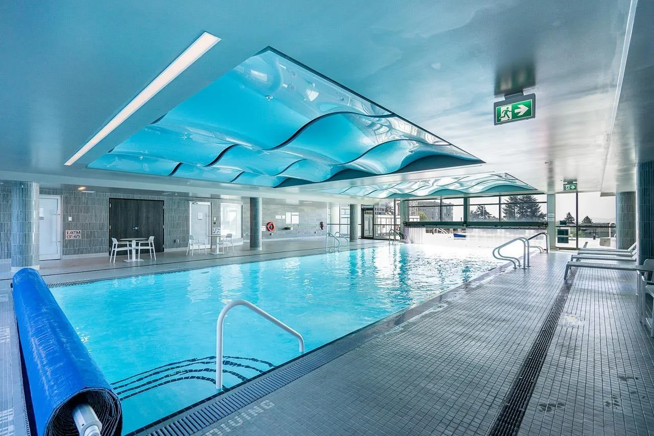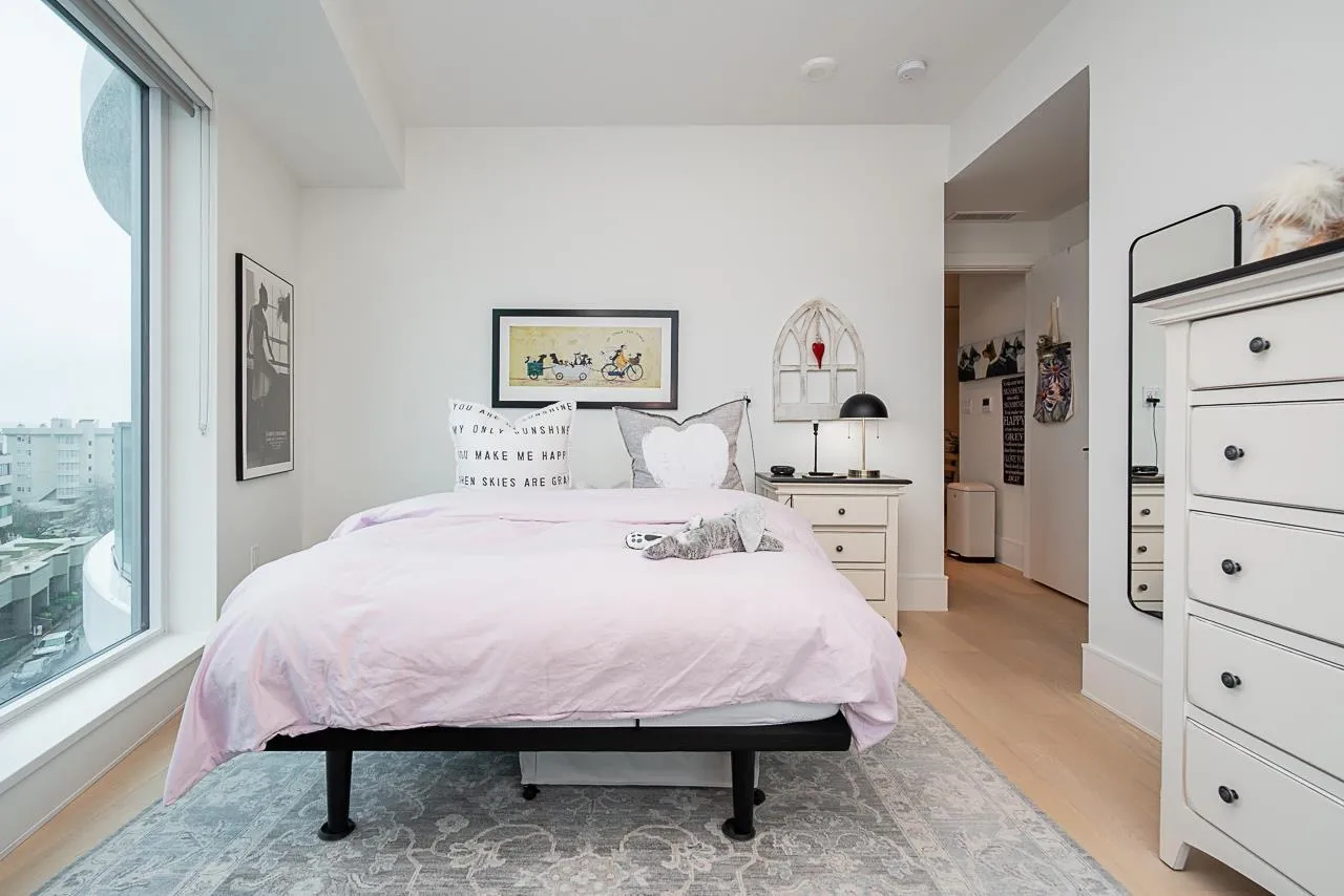 Beautiful 2-bedroom, 2-bath condo in the highly sought-after Foster Martin building. This light-filled home features a desirable south-east exposure and shows like new. The bright white kitchen opens to spacious dining and living areas, perfect for entertaining. The primary suite offers a walk-in closet and a spa-like ensuite with a large window, while bedrooms are thoughtfully positioned on opposite sides of the home for maximum privacy. Enjoy outdoor living with two sundecks. Outstanding amenities include a pool, fitness centre, yoga studio, hot tub, sauna, steam room, games room with pool table and ping pong, and more. A fabulous place to call home. (id:27476)