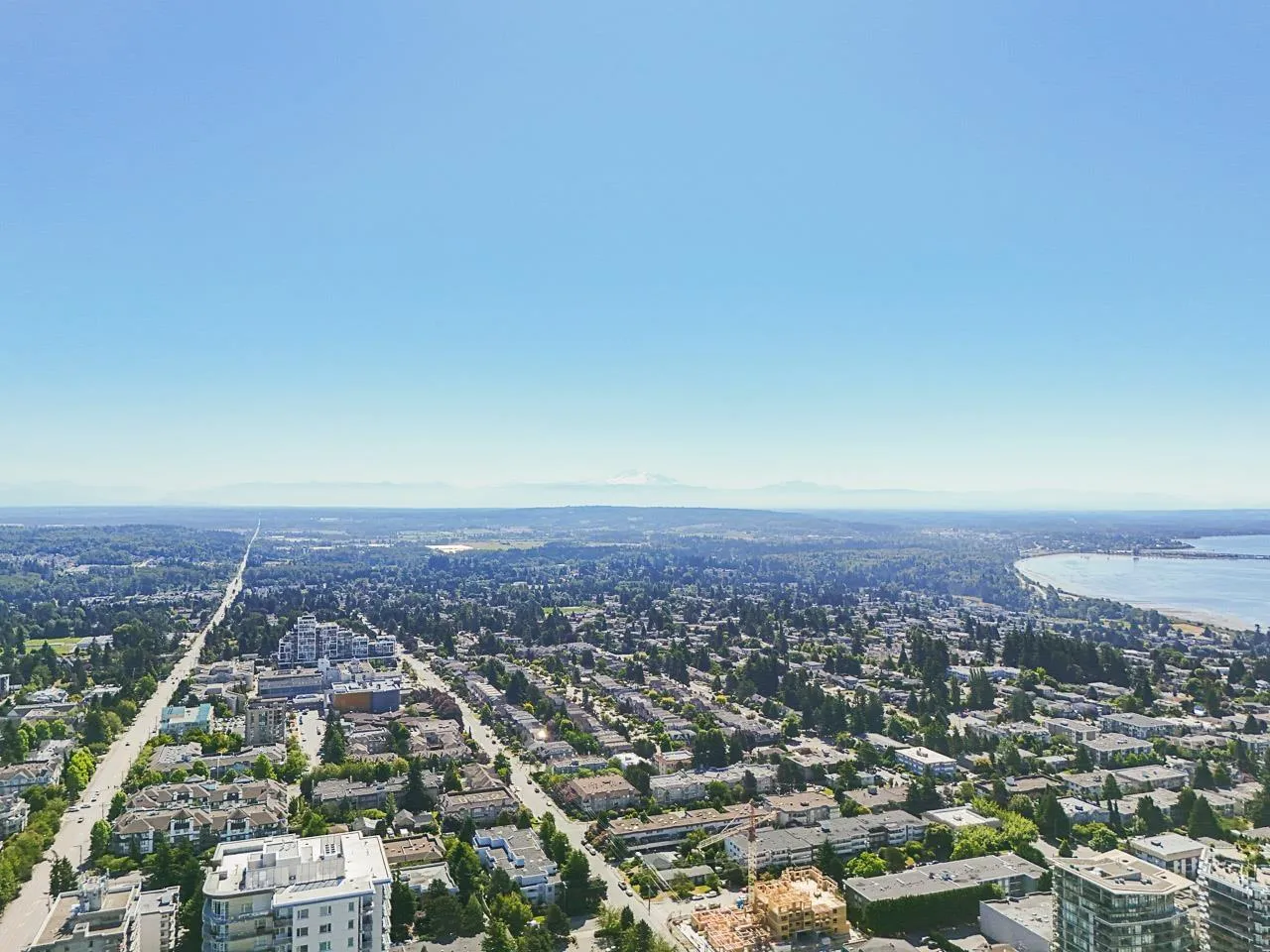 Welcome to Foster Martin in the heart of White Rock! This 2 bed, 2.5 bath ocean-facing residence offers sweeping views of Semiahmoo Bay from every principal room. Thoughtfully designed with floor-to-ceiling windows, A/C, and wide-plank flooring throughout. The chef's kitchen features a full Miele appliance package with steam oven, large island, and elegant marble finishes. Enjoy seamless indoor-outdoor living with a spacious balcony perfect for relaxing or entertaining. The primary bedroom includes a spa-like ensuite with double vanity and walk-in shower. World-class amenities include a concierge, indoor/outdoor pool, hot tub, sauna, gym, and residents' lounge. Steps to the beach, promenade, restaurants, and shops. Includes 2 parking stalls (1 EV) and 1 locker. Concrete construction. (id:27476)