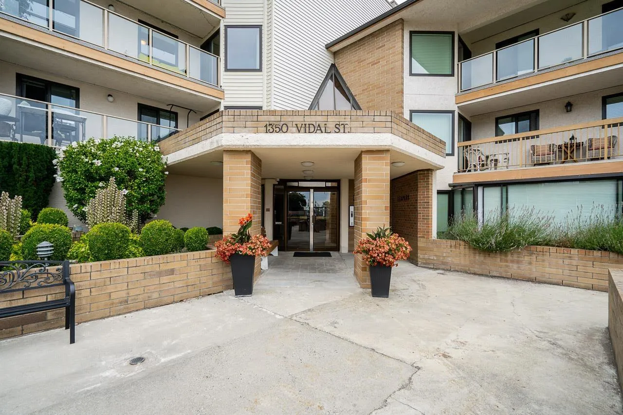 Exceptional value, don't miss out! Welcome to Seapark Manor! This spacious 1244 sq. ft. corner suite in the heart of White Rock offers plenty of natural light and beautiful OCEAN VIEWS. Featuring 2 bedrooms and 2 bathrooms, both with walk-through closets and direct ensuite access. Enjoy hardwood floors, a bright large kitchen, in-suite laundry and 3 ceiling fans. Ground level access provides a large patio with garden views, private storage shed, side balcony with ocean views and easy lane access. Includes 1 secured covered parking stall, storage locker and ample guest parking. Quiet, well maintained community with gym, sauna, games and amenity rooms. Building updates: new windows, patio doors, balconies and new roof. (id:27476)
