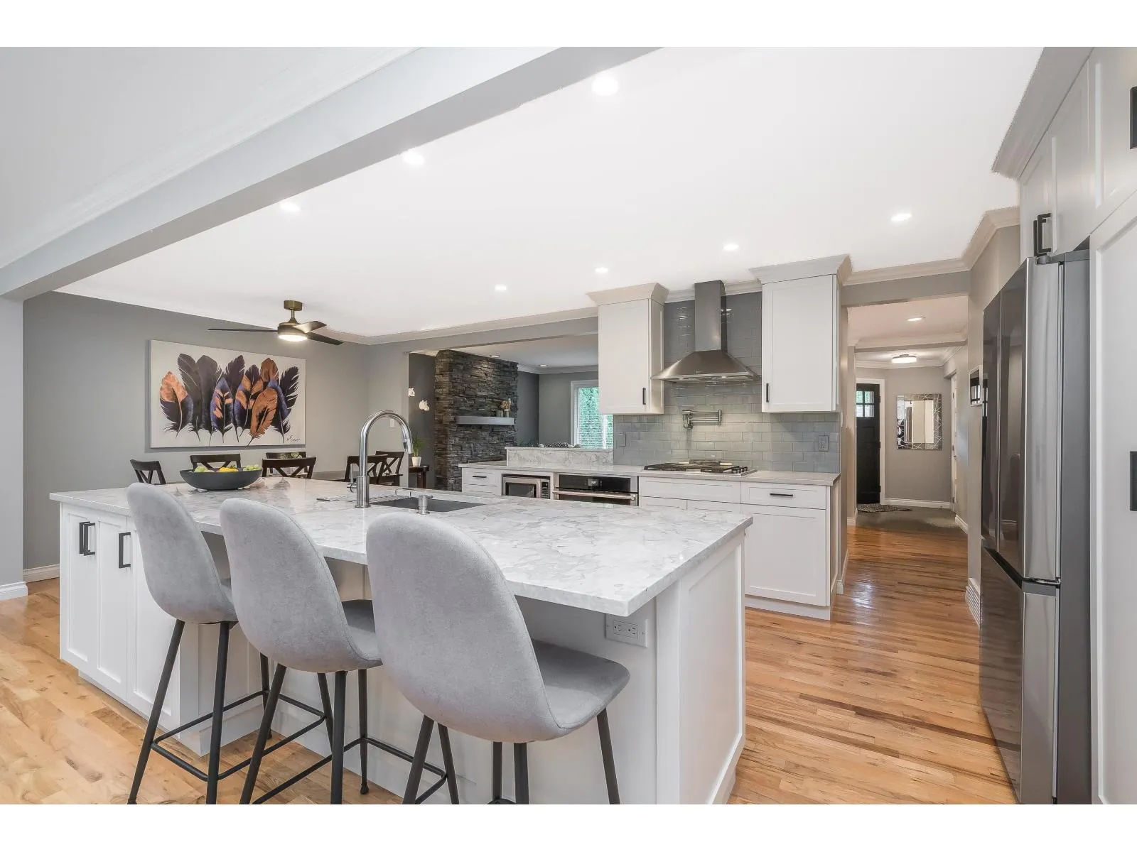 A flawless, fully renovated White Rock rancher. Located on a peaceful street just 30 seconds from Peace Arch Elementary. This stunning 3-bedroom, 2-bathroom home has been transformed with meticulous attention to detail. Original hardwood floors. Open-concept layout flooded with natural light. Stunning chef's kitchen: dramatic quartz countertops, shimmering glass backsplash, new premium appliances, professional gas range, wall-mounted pot filler, and a huge walk-in pantry with upright freezer and water line. Spa-like main bathroom with freestanding soaker tub + oversized custom glass shower. Ensuite with sleek floating cabinets, dual sinks, and luxurious shower. Huge wraparound deck overlooks a large private yard. New high efficiency furnace, on-demand hot water and EV charger. No expense was spared in the choices that were made. There is truly nothing left to do. OPEN HOUSE SUNDAY DECEMBER 7TH 2-4PM. (id:27476)