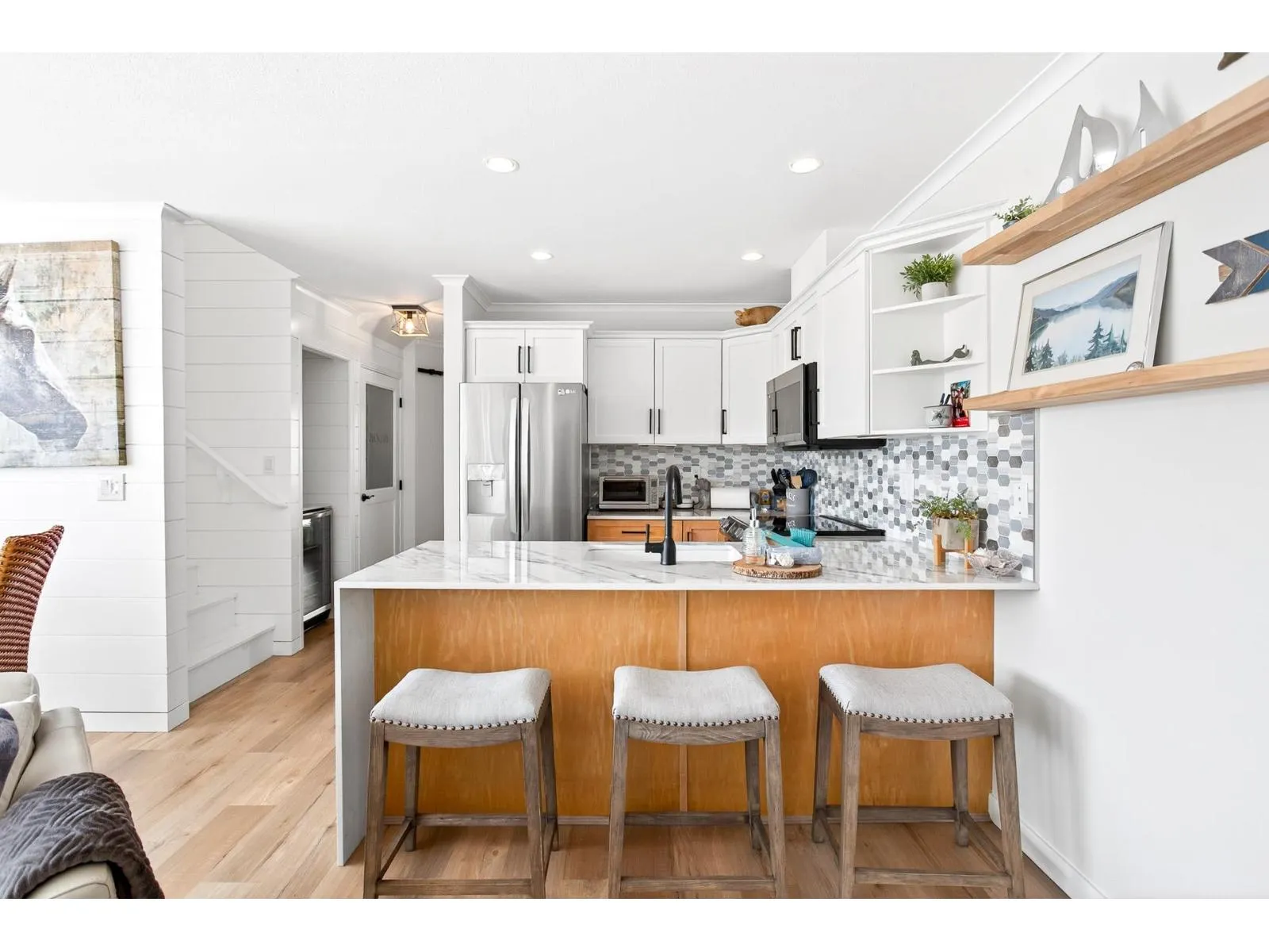 Welcome to Sand Dollar, a boutique collection of just 14 townhomes in the heart of White Rock. COMPLETELY UPDATED 2 bed & 2 bath combining comfort, convenience, and lifestyle. Highlights includes bright, open layout filled with natural light, hardwood floors, and a cozy gas fireplace for year-round comfort. The gourmet kitchen boasts porcelain countertops, stainless steel appliances, and ample storage. Large windows and spacious balcony showcases a breathtaking OCEAN VIEW. Well maintained and professionally managed, offering wheelchair access, elevators, secure underground parking, visitor parking, and beautifully landscaped garden areas. Ideally situated steps from Semiahmoo Mall, White Rock Beach, Peace Arch Hospital, shopping, restaurants, transit and so much more. Easy access to Hwy 99. (id:27476)