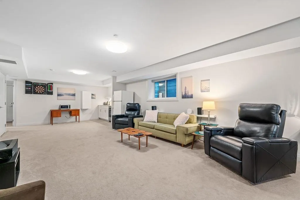 This half duplex blends thoughtful design with everyday comfort, featuring a main-floor primary suite and an airy open-concept layout with soaring ceilings. Eclipse doors extend the living space onto a sun-filled front deck, perfect for seamless indoor/outdoor living. The chef-inspired kitchen showcases a striking blue island with gold hardware and plenty of workspace. Upstairs offers two bedrooms and a full bath, while the lower level includes a rec room, multipurpose area, bedroom, and bathroom. Finishes include oak hardwood floors, custom built-ins, and a 30-amp plug for EV charging, plus a private backyard for kids, pets, or relaxing evenings. Set on a quiet street within walking distance to restaurants & the White Rock Pier. Catchment schools Peach Arch Elementary & Earl Marriott Sec (id:27476)