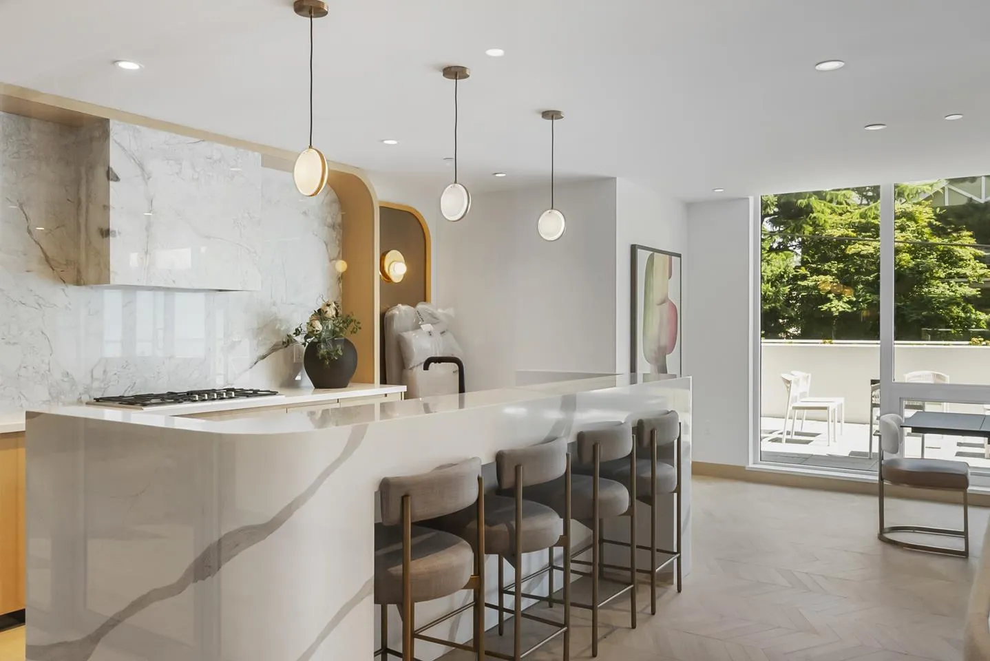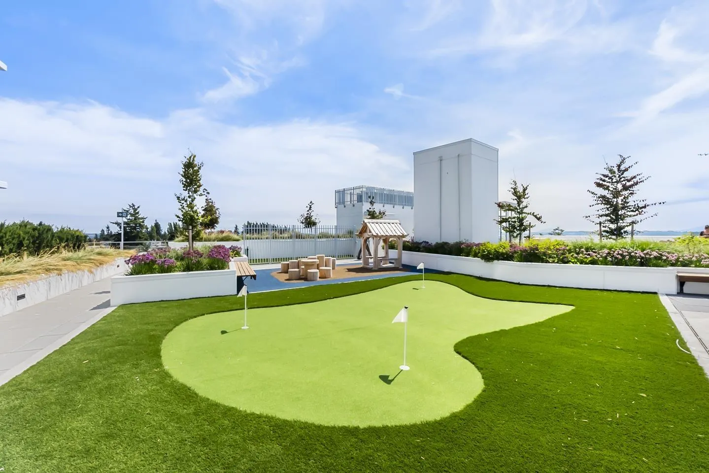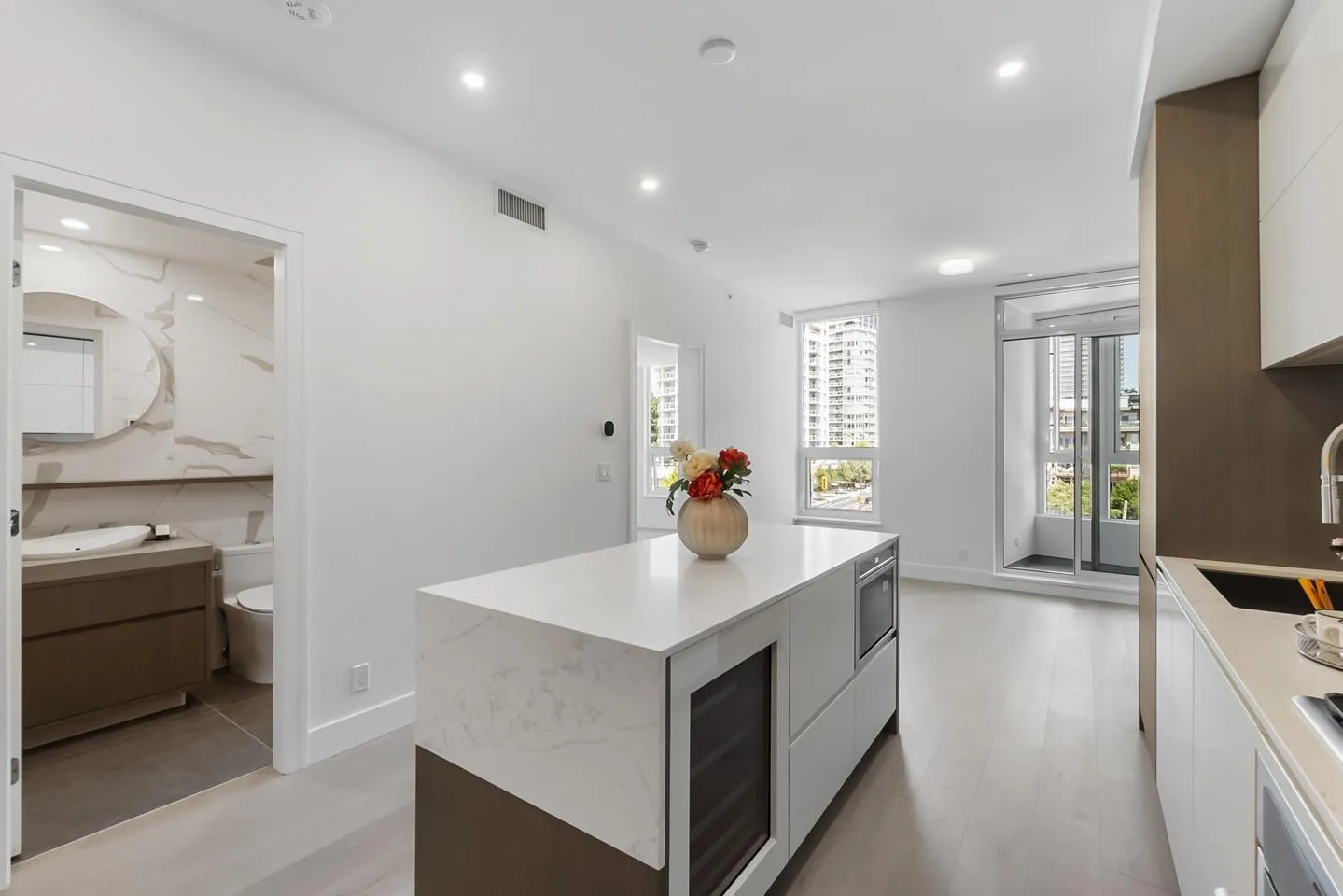 Experience luxury coastal living at Monaco by Solterra in Uptown White Rock! This brand new air conditioned 1 bed+den, 2 bath home offers 725 sq ft of upscale design just 10 minutes away from the beach. Features include engineered hardwood, luxury Thermador appliances, stone counters & backsplash, beverage cooler, solarium, & a den perfect for guests or office space. The spa-like ensuite boasts a soaker tub, walk-in shower, heated floor, automated toilet seat cover & double vanity. Monaco offers rooftop garden, putting green, kids play area, BBQ lounge, dog run, fitness studio, pet spa, and more-all in the heart of uptown White Rock, steps to shops, dining, & roof top ocean views. You will appreciate the details that Soltara had put into this masterpiece and this could be your dream home! (id:27476)