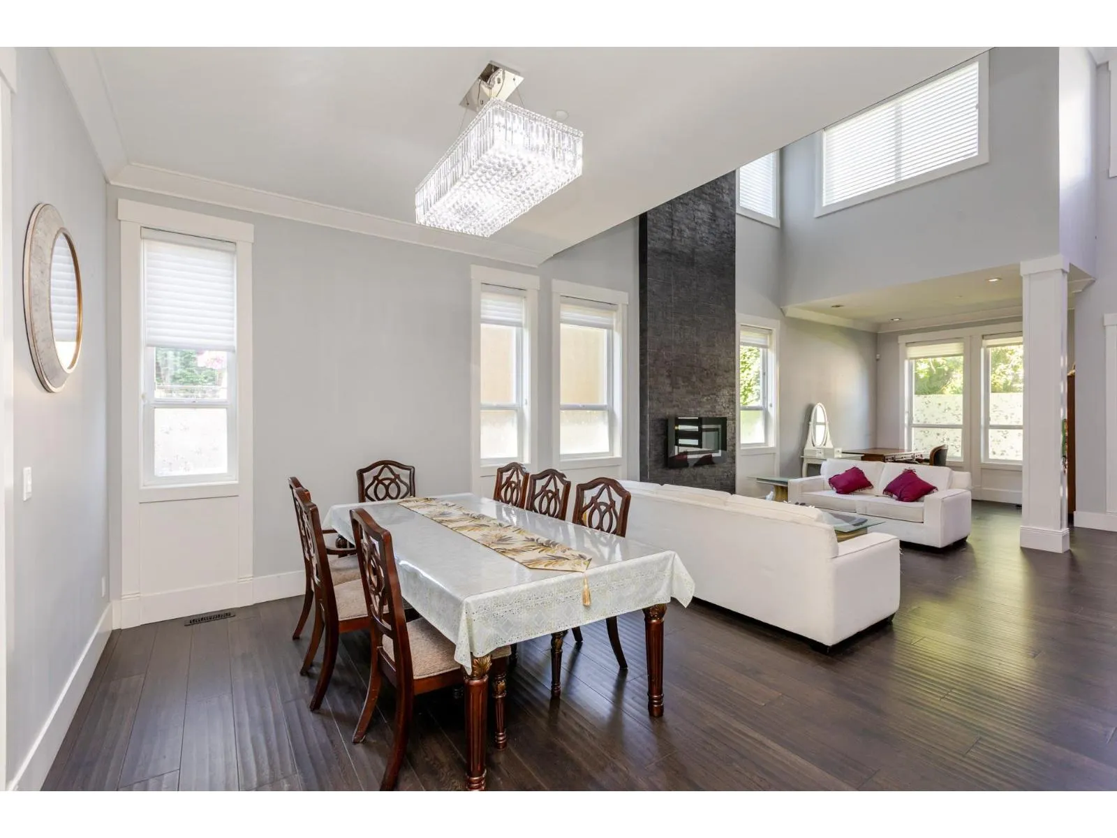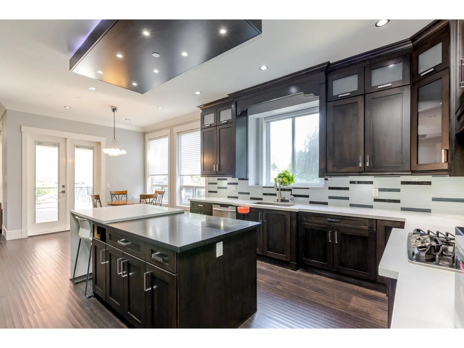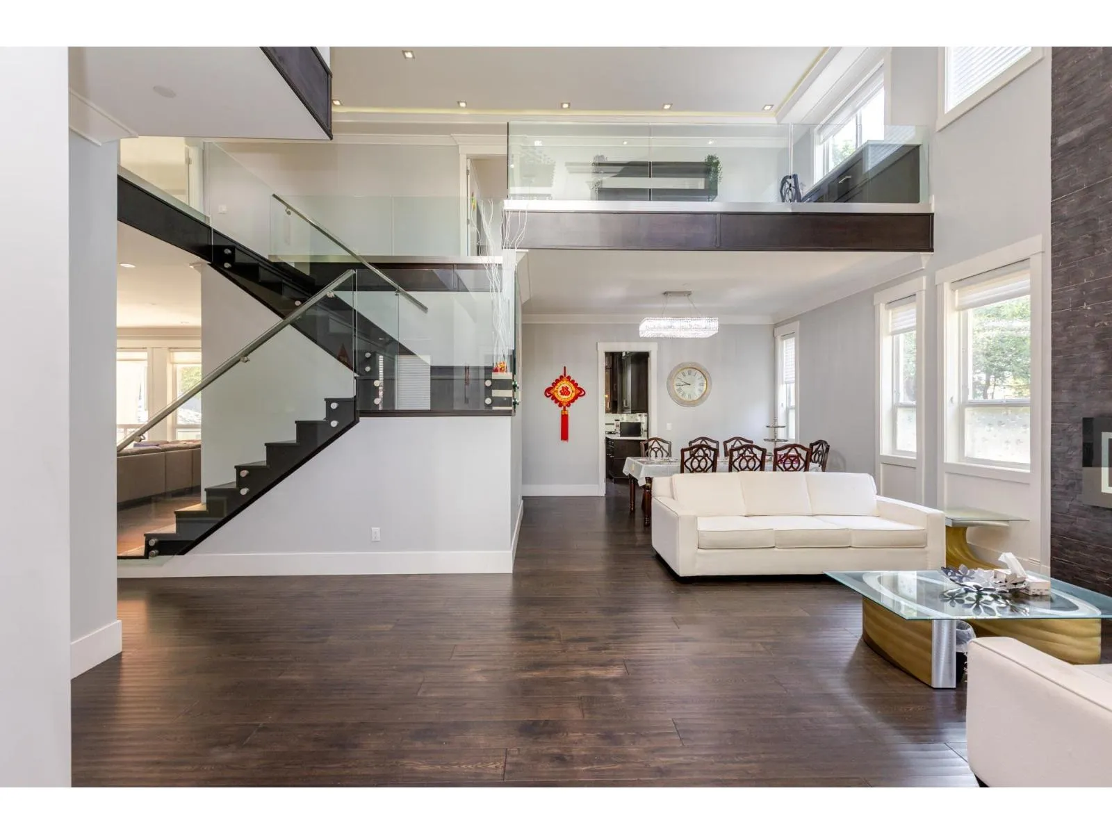 Contemporary West Coast style home with almost 6000 sqft on 7757 sqft rectangular sunny lot! total 8 bedrooms 8 bathrooms. radiant heat on all levels with air conditioning! Hardwood floor on main. high ceilings on main. wok kitchen. One bedroom on main. Family Room finished with elegant wood cabinets; Upstairs with 4 Bedrooms and all Ensuite and walk-in closets. Basement has 2 Bedroom Legal Suite with laundry + Another Suite; Media room with elegant Wet Bar & Powder Room. Hide-a-Hose Vacuum, 2 Large Sun Decks. Minutes walk to all level schools and shopping, bus stops. Easy to access highway and US border. (id:27476)