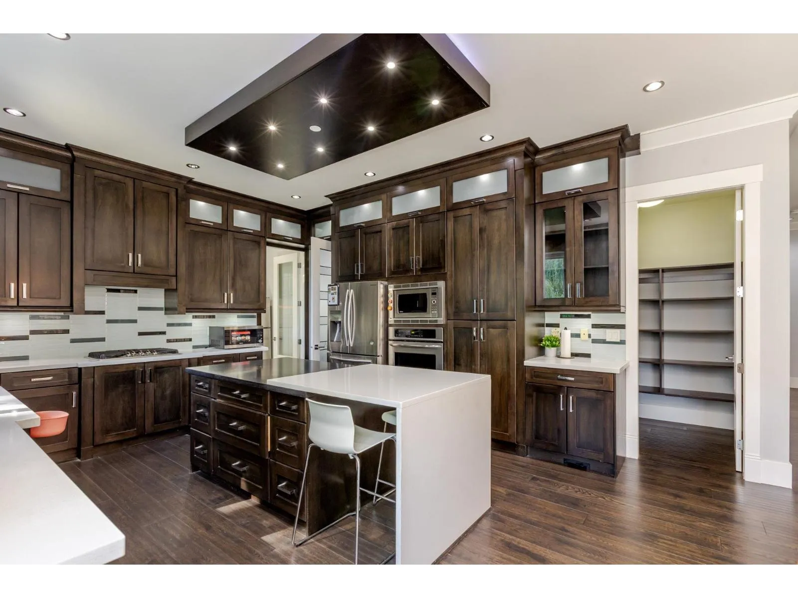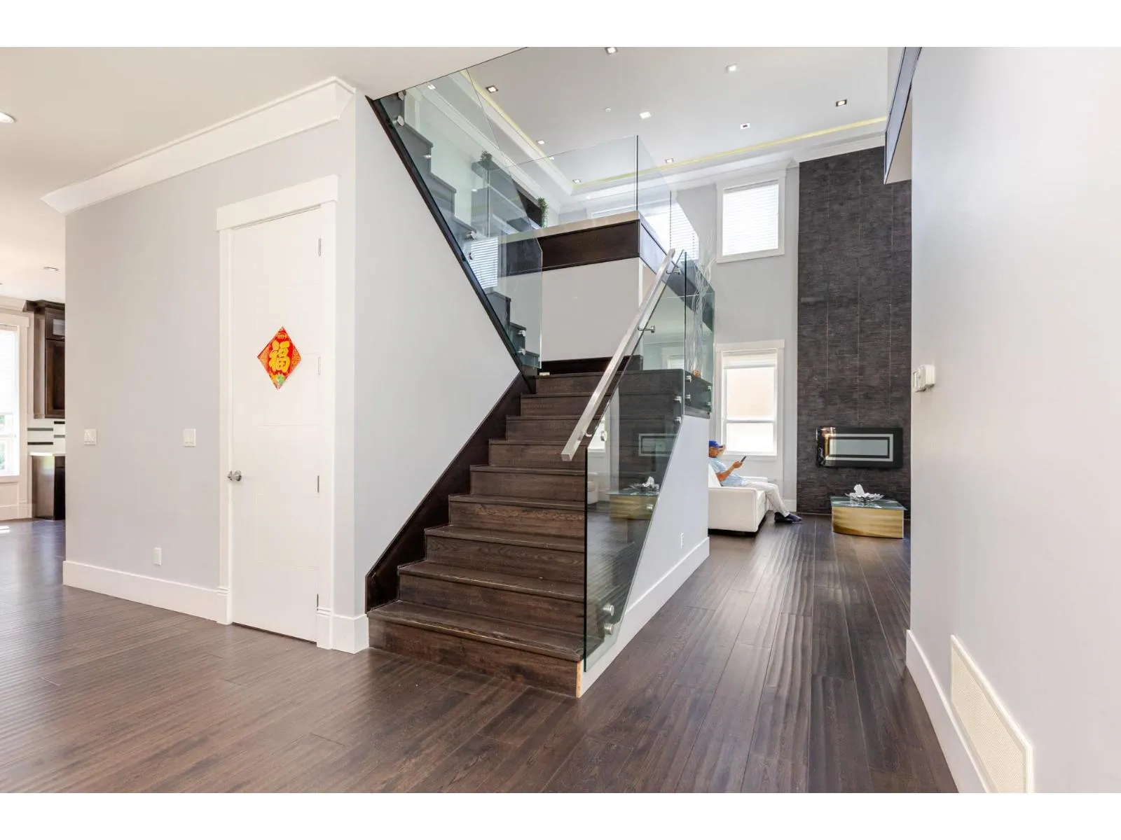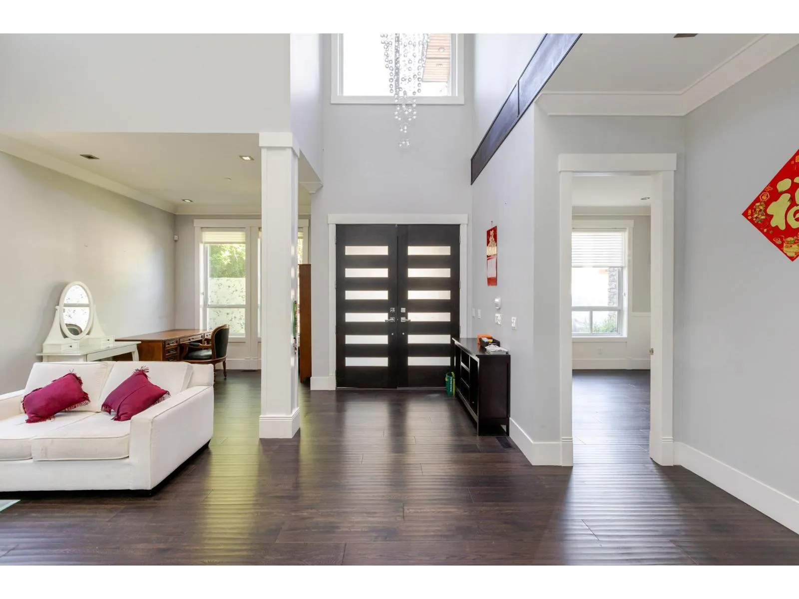 Contemporary West Coast style home with almost 6000 sqft on 7757 sqft rectangular sunny lot! total 8 bedrooms 8 bathrooms. radiant heat on all levels with air conditioning! Hardwood floor on main. high ceilings on main. wok kitchen. One bedroom on main. Family Room finished with elegant wood cabinets; Upstairs with 4 Bedrooms and all Ensuite and walk-in closets. Basement has 2 Bedroom Legal Suite with laundry + Another Suite; Media room with elegant Wet Bar & Powder Room. Hide-a-Hose Vacuum, 2 Large Sun Decks. Minutes walk to all level schools and shopping, bus stops. Easy to access highway and US border. (id:27476)