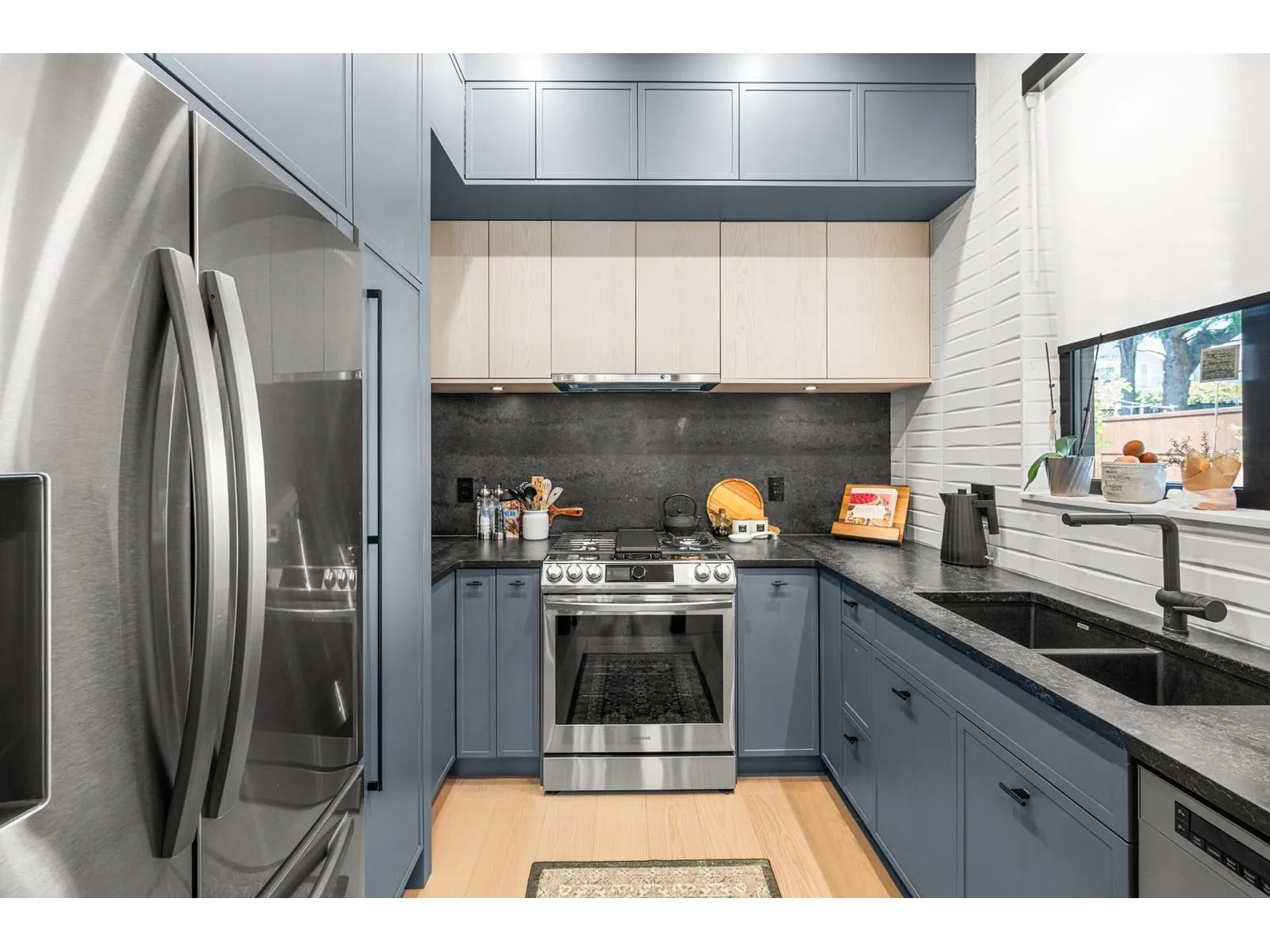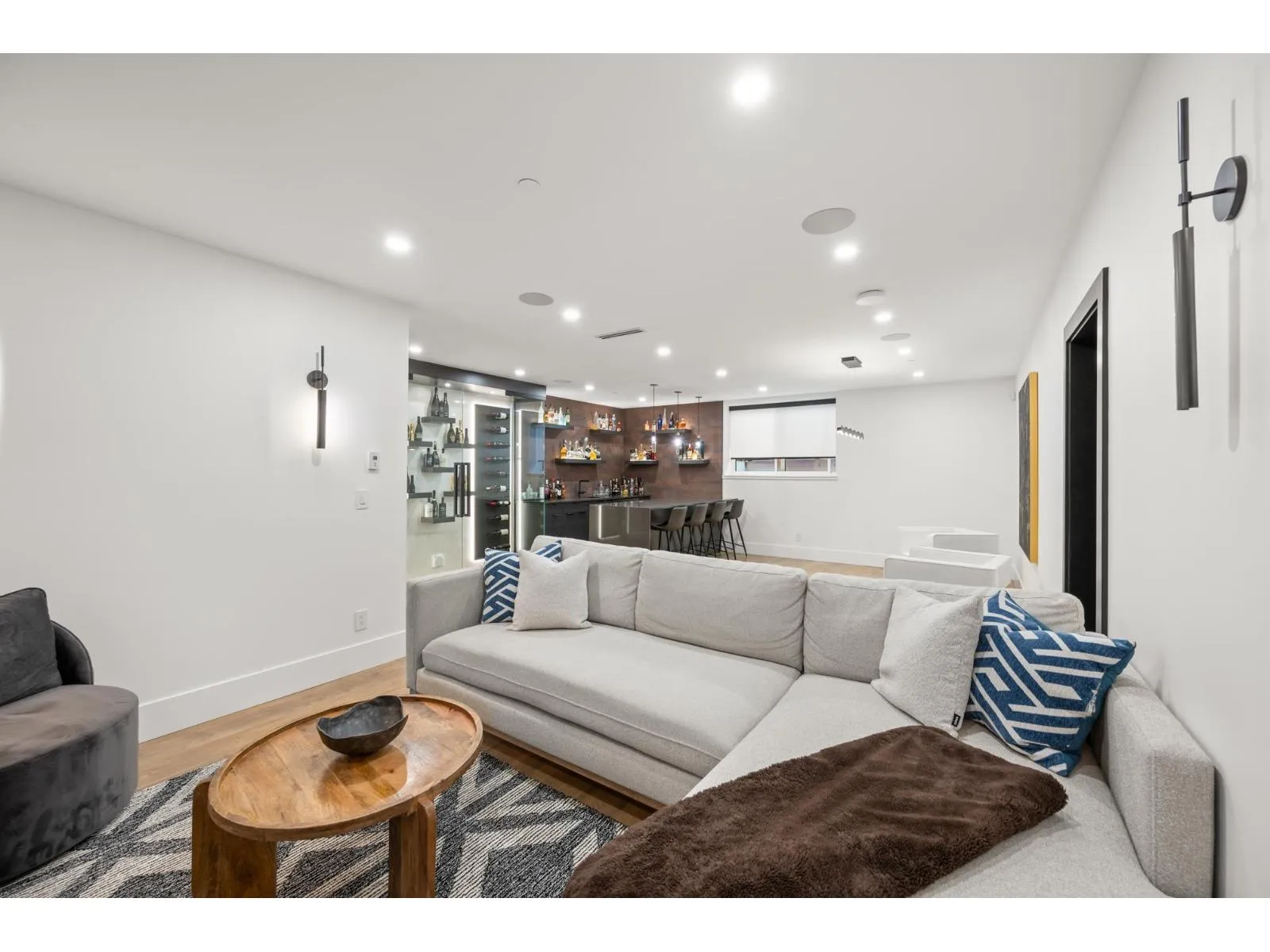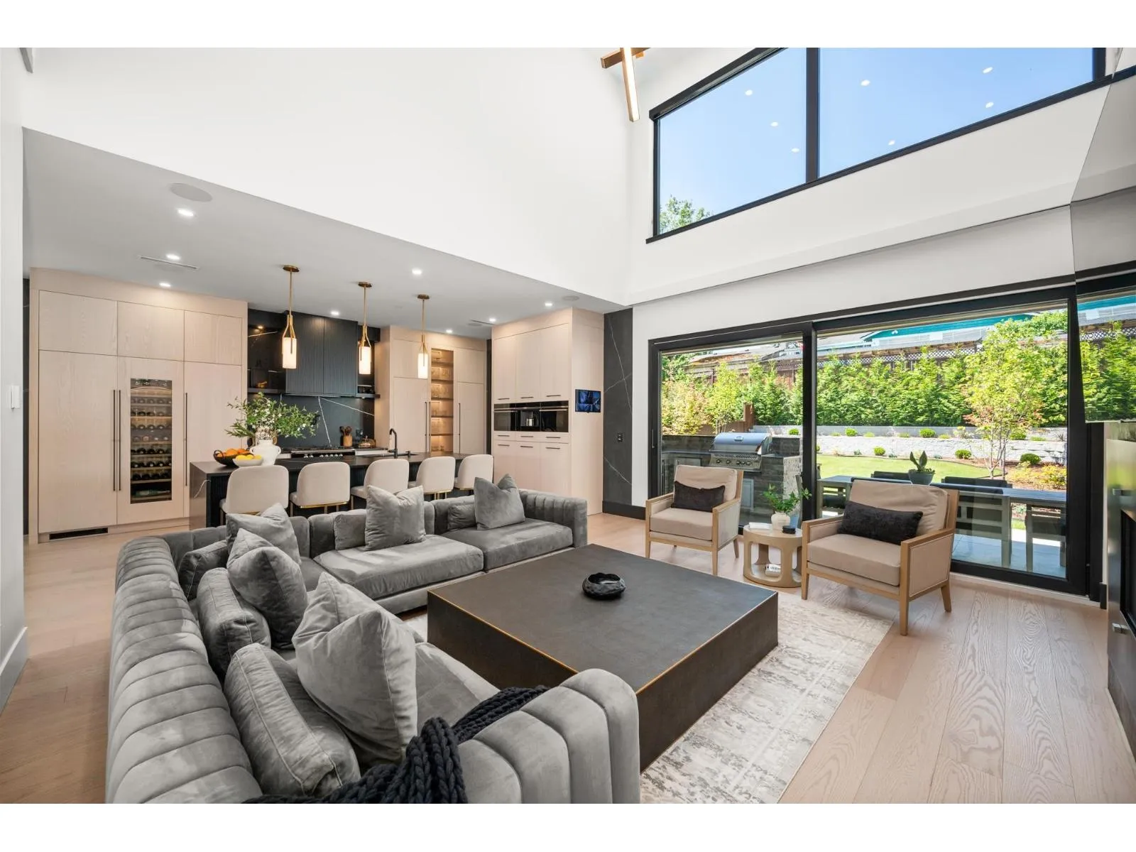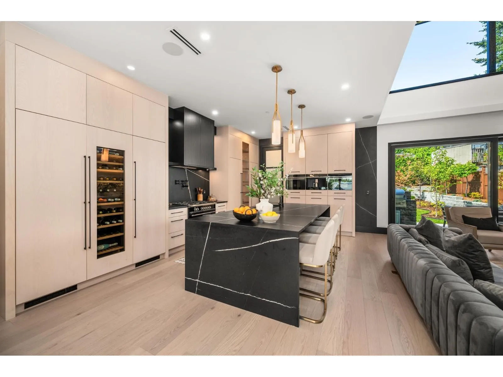 Quality design & construction by Rychter Custom Homes. Hardwood floors, floating staircase & stunning 3-level concrete feature wall. Radiant heat, A/C, auto blinds, Control 4- smart home, on demand H/W, Retractable B/I Vac, Shinnoki Panel Cabinetry with Integrated Liebherr Fridge, wine cooler & 24" Freezer. Fisher Paykel kitchen appliances, B/I Coffee/Espresso & Steam Oven, Spice kitchen. Expansive covered deck off main living room with stunning views! Primary suite has open glass wall to the sundeck with view of the mountains & ocean. Relax in the upstairs loft/library. Fenced backyard offers covered outdoor living space with fireplace and b/i barbecue station. 1-bed legal suite is also registered with Airbnb. Bsmnt offers rec room with wet bar, wine storage & sauna. Must be seen! (id:27476)