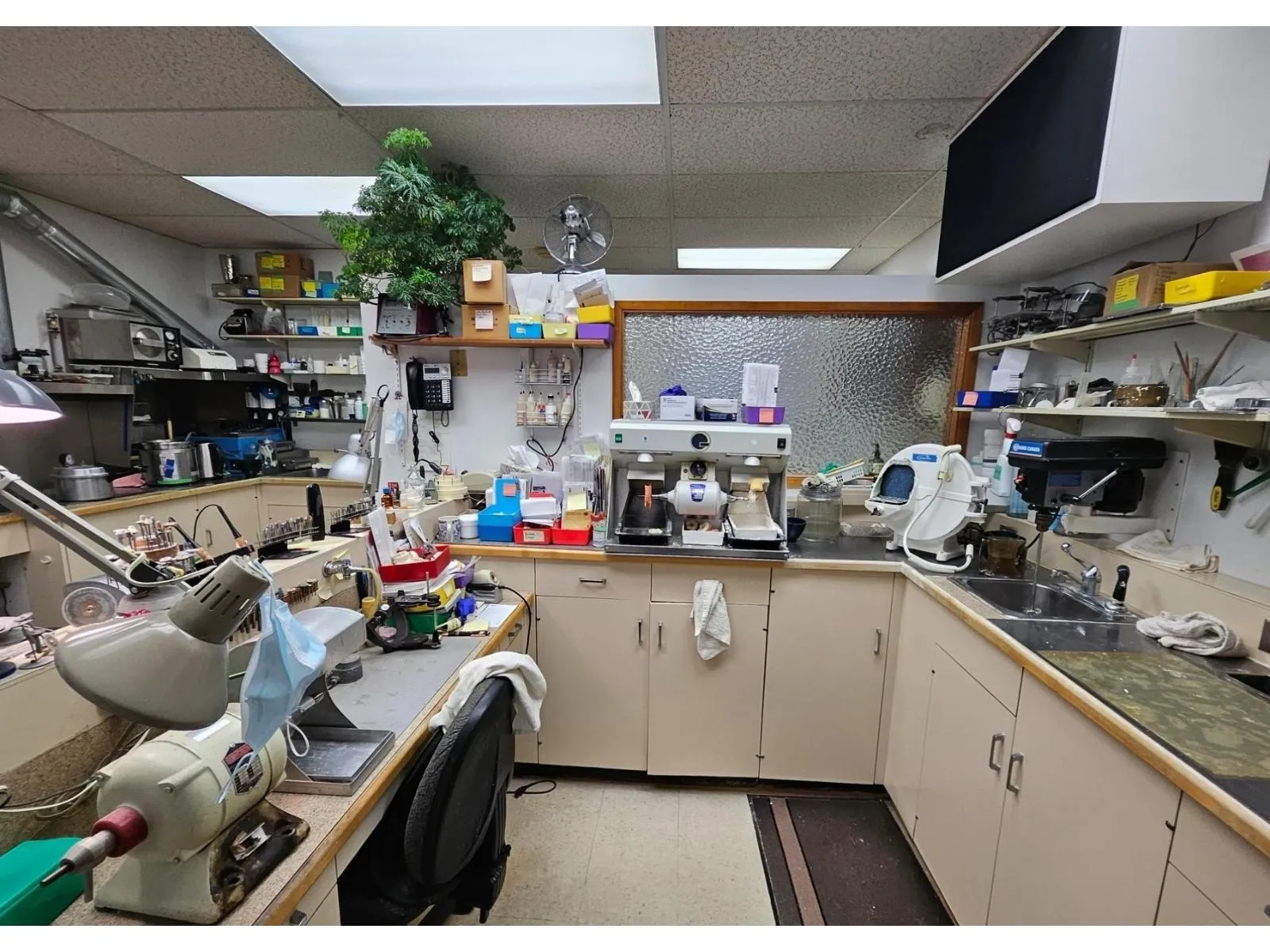 Rare opportunity to purchase a well-established denture clinic with a free-standing commercial building in central White Rock. Operating since 1977, the White Rock Denture Clinic has a long-standing reputation and loyal client base. The property offers a functional layout with reception, treatment rooms, and on-site lab space. Located within a strong medical and professional services corridor uptown White Rock with CR-2 Zoning. Ideal for an owner-operator or dental professional seeking a turnkey practice with real estate included. Financials and equipment list available for qualified buyers. NDA required. Please do NOT disturb staff. (id:27476)