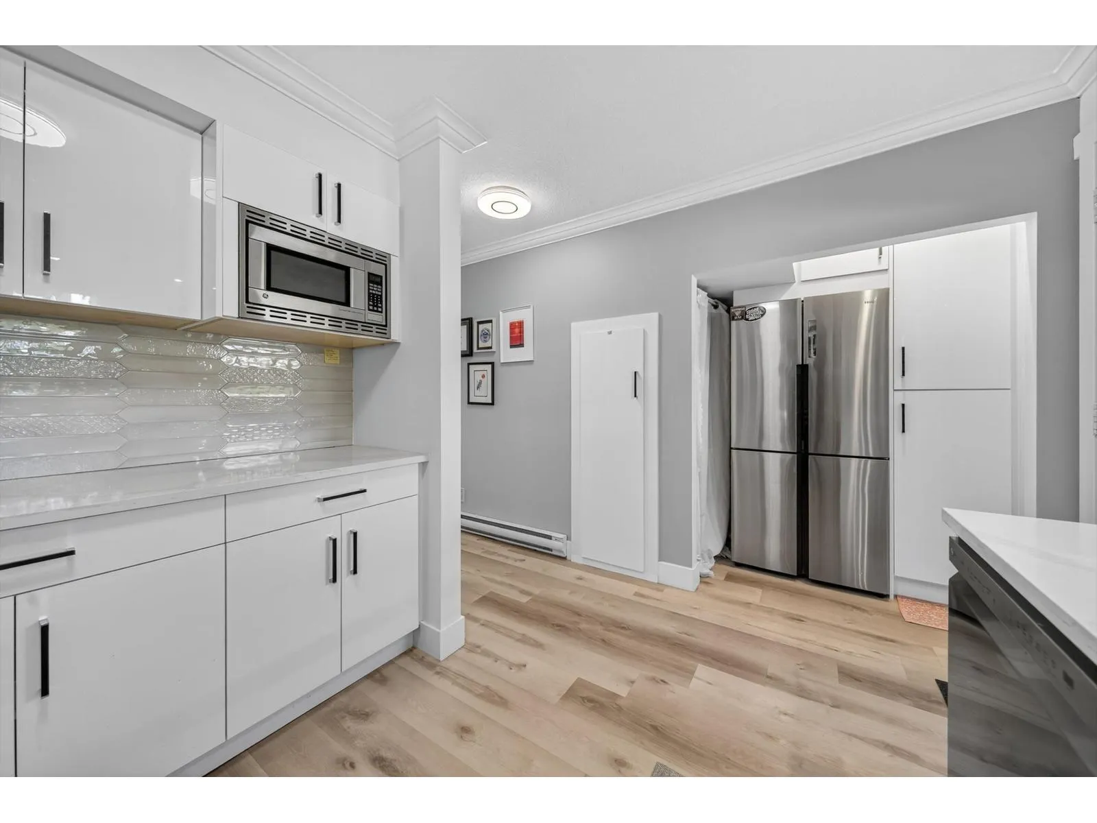 Mariner Estates-where artistic charm meets coastal living. This fully renovated 2-bed, 2-bath corner townhome offers soaring 20-ft ceilings, skylights, and a multi-level layout that keeps you fit and defines the rooms that exudes serenity & privacy. The 2022 renovation includes quartz counters, stainless steel appliances, induction cooktop, and spa-inspired bathrooms with Italian tile and rain showers. Freshly painted. Enjoy 2 private balconies and a rooftop deck with ocean & and river-views, backing onto protected greenspace alive with birdsong. Includes walk-in closet, two storage lockers, and covered carport. Pet friendly (2, any size). A 5-minute walk to East Beach, the Promenade, cafés, and shops. Truly a special home with soul. OPEN HOUSE CANCELLED (id:27476)