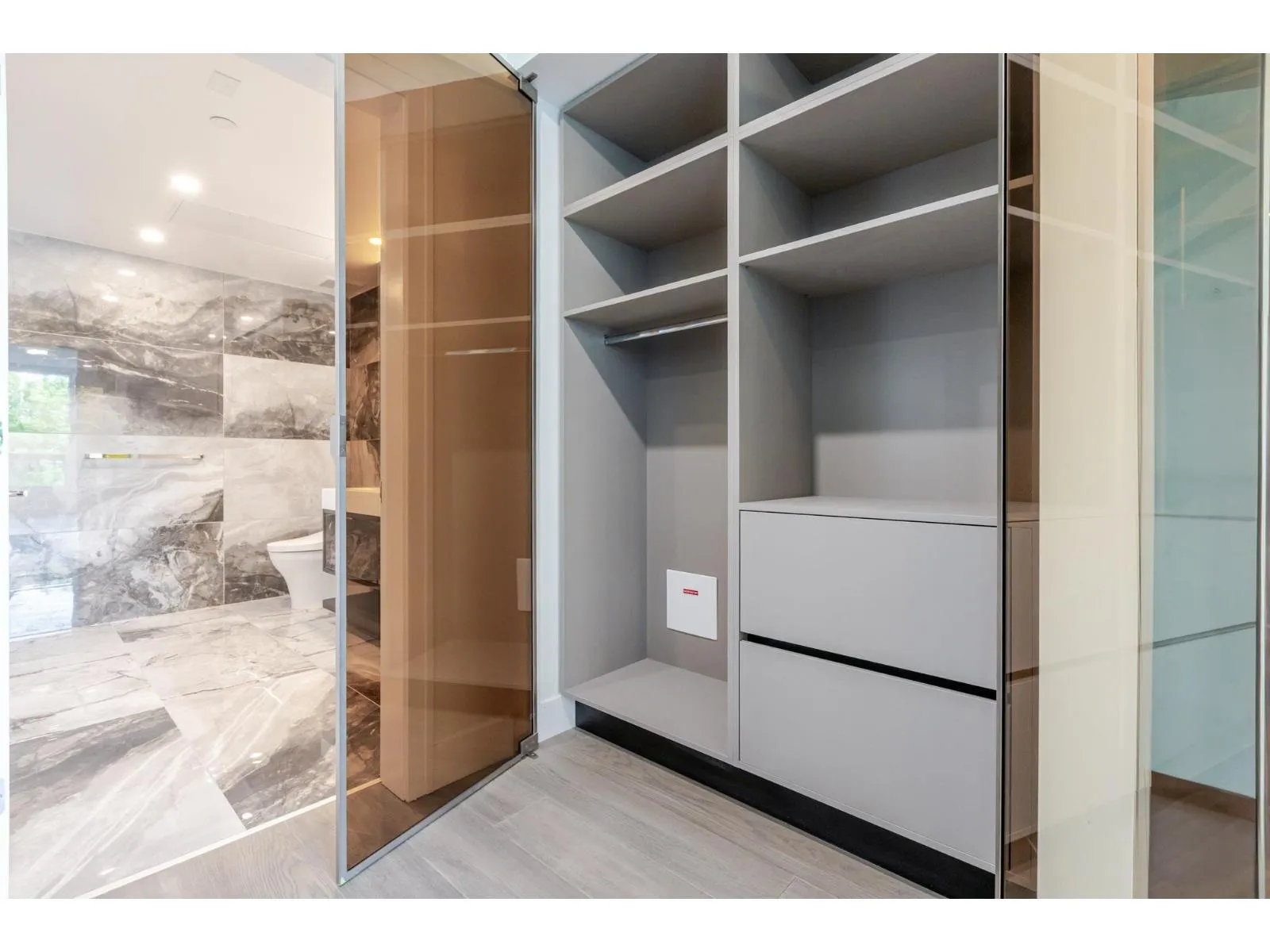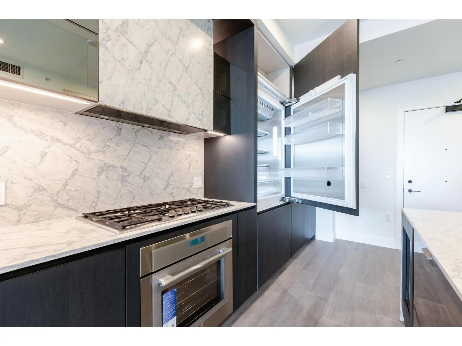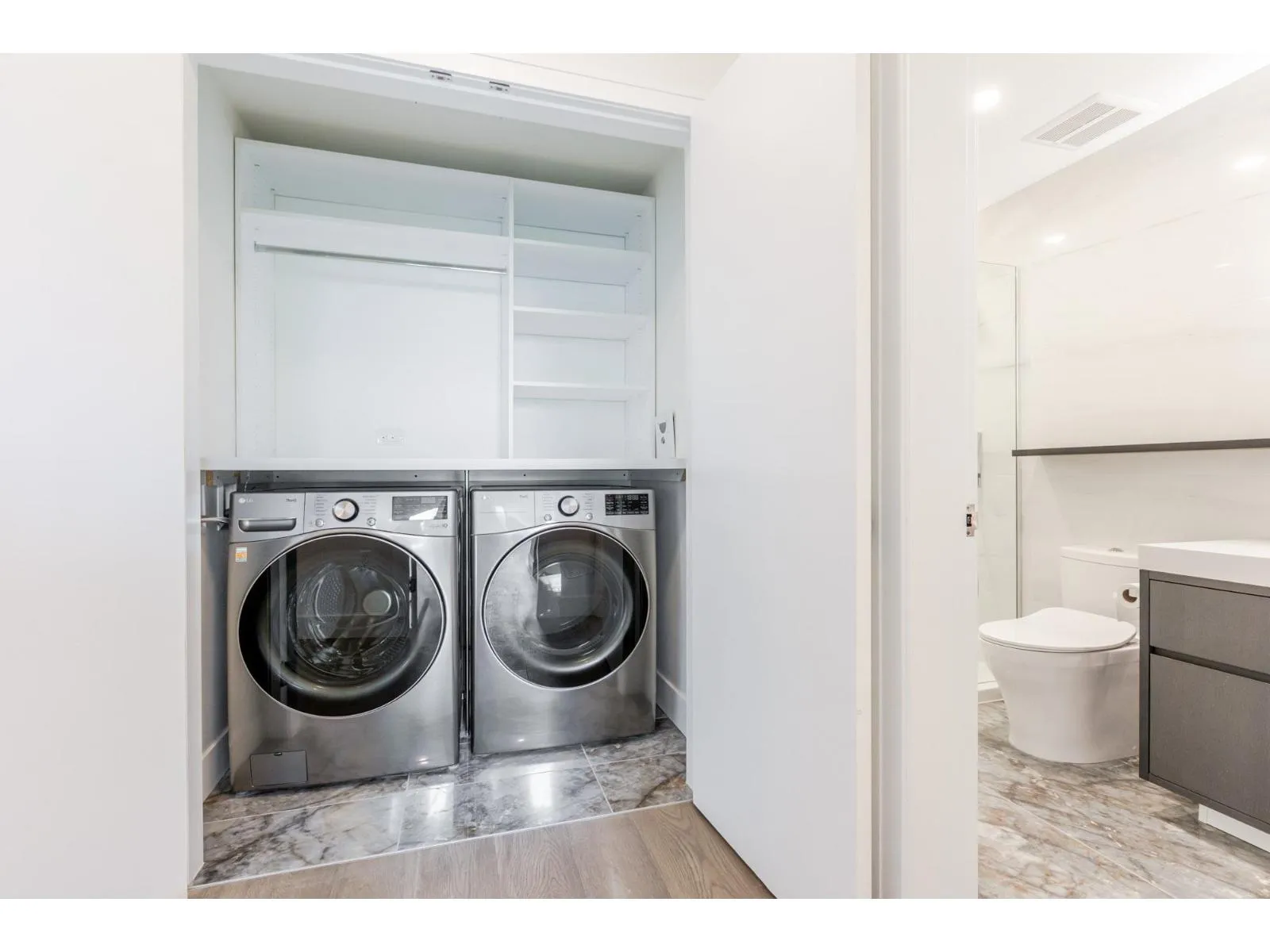 Monaco, White Rock's newest and most prestigious high rise. Ocean View home has it all from 18' gourmet kitchen featuring Thermador. Built in appliances from the fridge, cooktop, wine fridge, microwave, and oven. Cabinets feature pull outs everywhere. Master suite is large with massive closet space and more built ins. Ensuite is tiled to the ceiling, recessed mirrors, shelving, bidet, and heated floors. Flex space could be set up as a dining room or 3rd bedroom. Secondary bedroom is bright large and has loads of closet space. 2 Parking spaces (one with EV roughed in) storage locker. Air conditioned and ready to move in. There are 2 common social areas for entertaining a complete lounge area with kitchen and a 5th floor outdoor oasis including BBQ and Panoramic Views. Awesome gym as well. (id:27476)