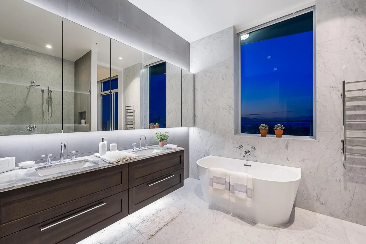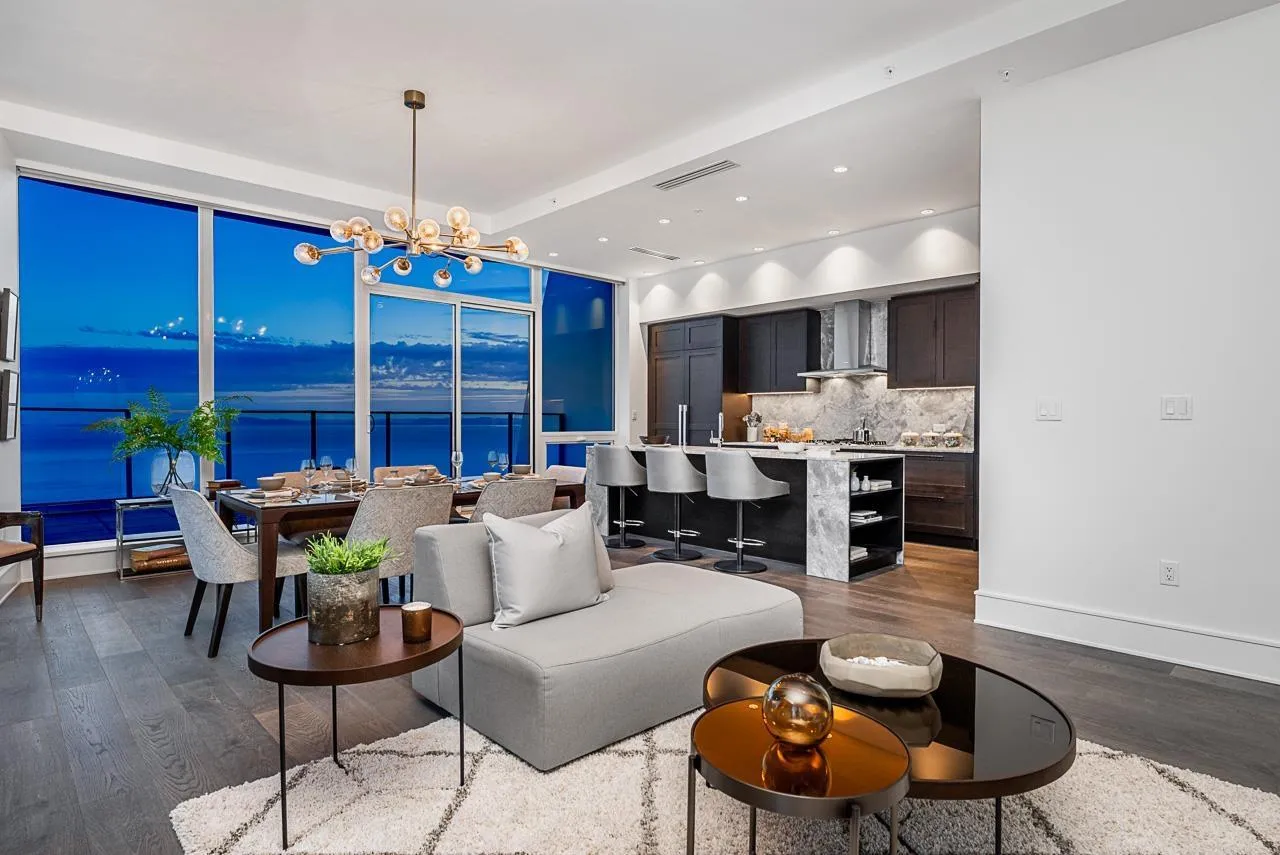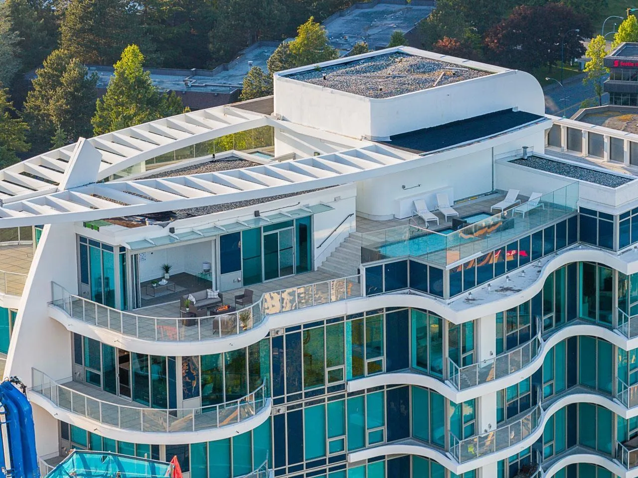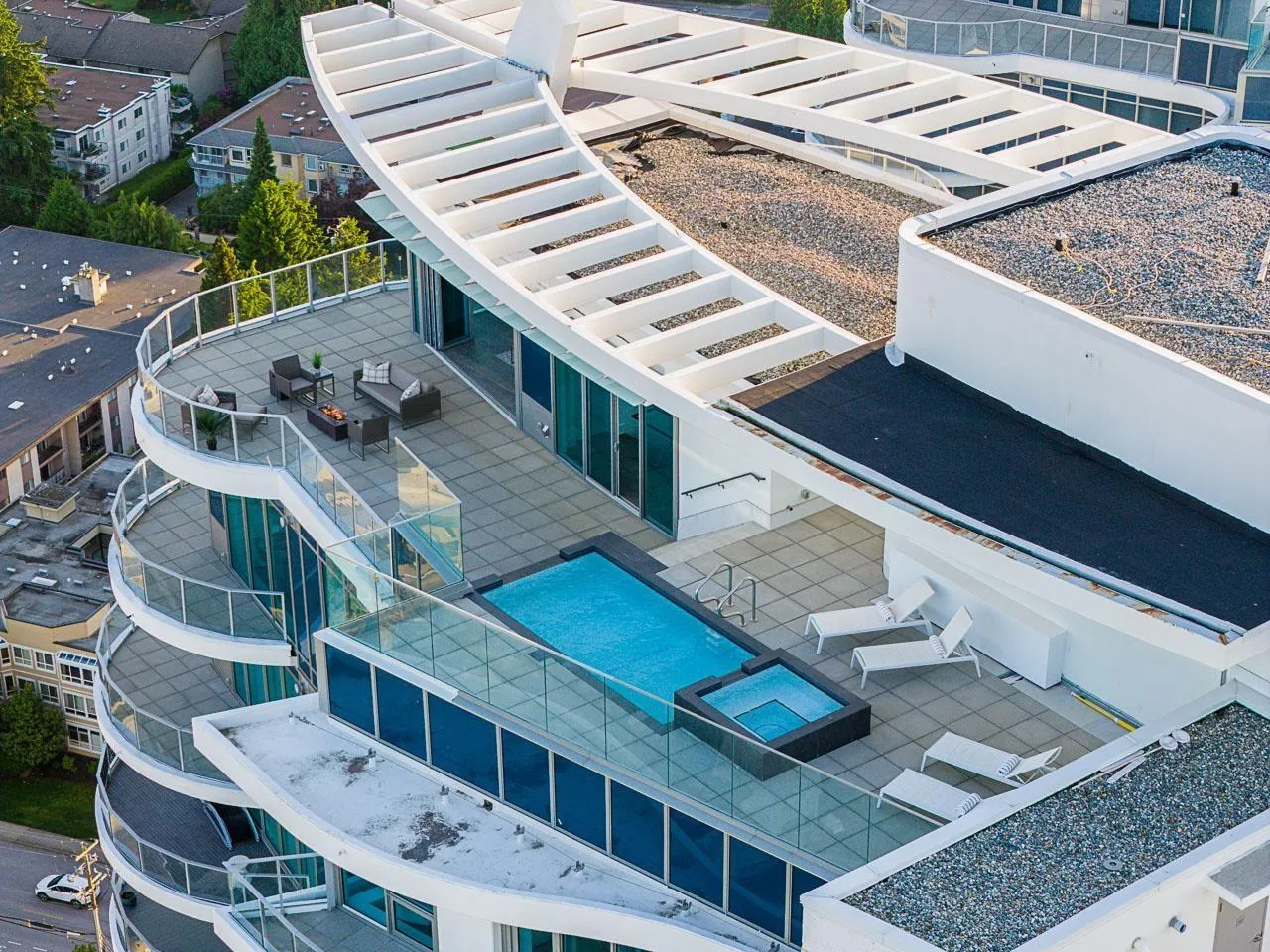 Experience the pinnacle of seaside-urban living in this 2-story Penthouse at White Rock's Foster Martin. Stunning 3,800 sqft residence features 4 spacious bedrooms, 5.5 baths, a den, flex area and an upper loft suite. Revel in the panoramic ocean and mountain views, soaring 11' ceilings, floor-to-ceiling windows, a chef's kitchen with Miele appliances, spa-like baths, and luxurious finishings throughout. Enjoy 2,400 sqft of outdoor living with 4 main floor balconies and a spectacular rooftop deck with cascading waterfall hot tub and pool, fire table area, and outdoor kitchen rough-in. Includes a private triple garage with storage and resort-style amenities: indoor/outdoor pool, sauna/steam room, gym, lounge, games room and concierge. The perfect harmony of luxury, location, and lifestyle! (id:27476)