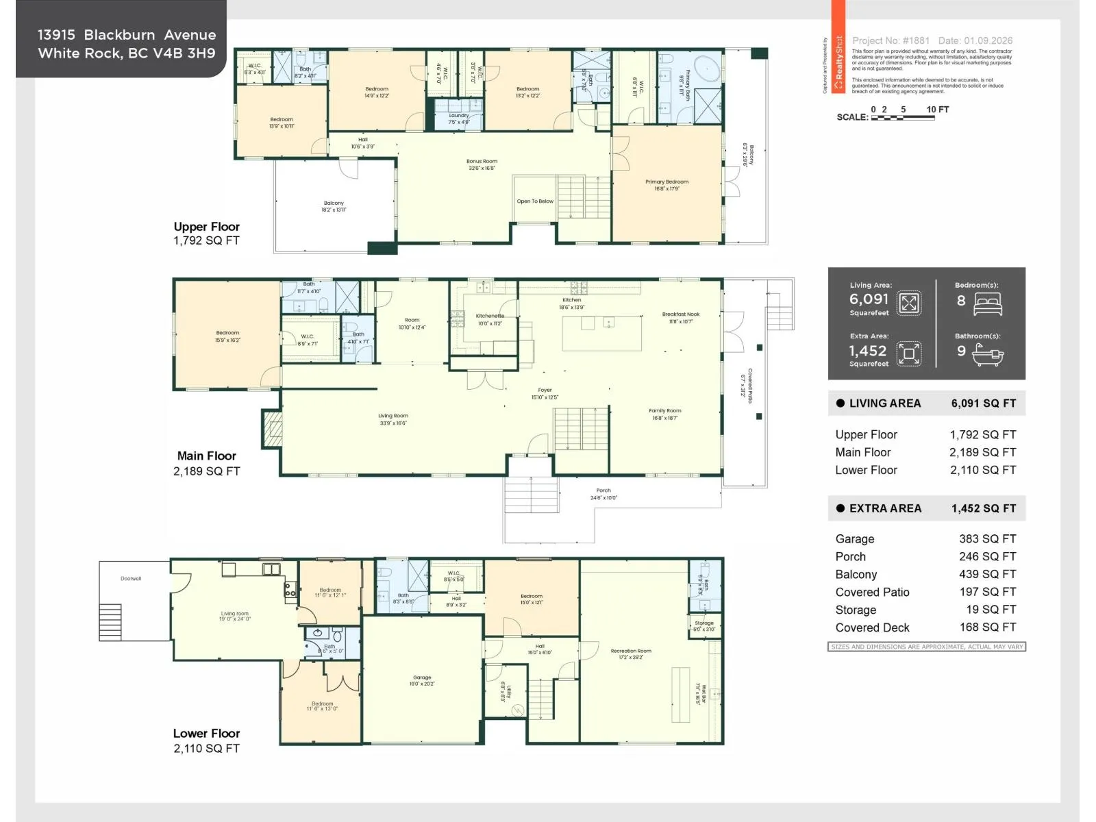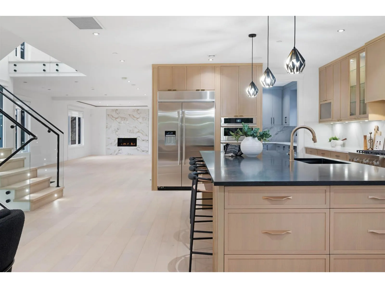 A striking brand-new luxury modern home on a quiet corner lot in one of White Rock's most prestigious neighbourhoods. Situated on an expansive 8,188 sqft lot, this residence offers approximately 6,100 sqft of thoughtfully designed living space, ideal for multi-generational living. Featuring 8 bedrooms + Office and 8 bathrooms, a legal 2-bedroom basement suite with private access perfect for extended family or a mortgage helper. The chef's kitchen is equipped with premium JennAir appliances, real wood cabinetry, quartz stone countertops, and a fully equipped spice kitchen. Open-concept living areas showcase engineered hardwood flooring, oversized windows, and custom millwork throughout. Complete with Control4 automation, security system, air conditioning, and hide-a-hose vacuum & much more! (id:27476)