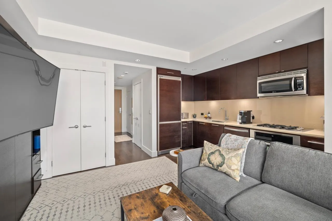 Welcome to Miramar Village by Bosa, one of White Rock's most sought after concrete developments. This centrally located studio features a quiet, well designed 522 sq ft floor plan with north facing mountain views. Enjoy year round comfort with built in air conditioning and a modern, upscale kitchen complete with premium appliances and a gas range. Residents have access to resort style amenities, including a pool and hot tub with sweeping ocean views, all just minutes from White Rock Beach, popular restaurants, and everyday conveniences. A great opportunity to own in one of White Rock's premier buildings. (id:27476)