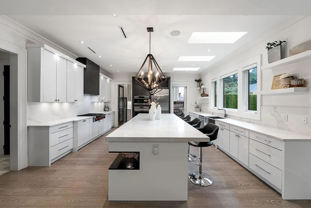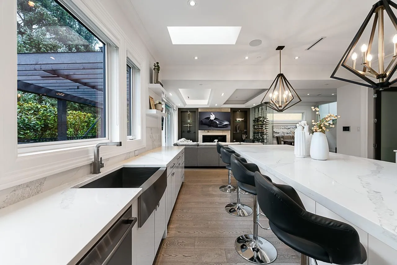 Modern luxury in West White Rock! This beautiful 5000sqft Smart-Home offers grandeur and functionality. Open concept main floor with soaring ceilings, rich millwork and designer influences. Gourmet Kitchen complete with Wolf & Subzero appliances, plus bonus Wok Kitchen. Temperature controlled wine cellar in the dining room for entertaining. 4 spacious bedrooms above including the luxurious primary suite with a walk-in closet & spa bath. Lower level boasts a media room, bar, guest bedroom plus a LEGAL 1-bedroom suite. Walk to Bayridge Elementary, Semiahmoo Secondary School, close to Semiahmoo Mall and White Rock Beach. (id:27476)